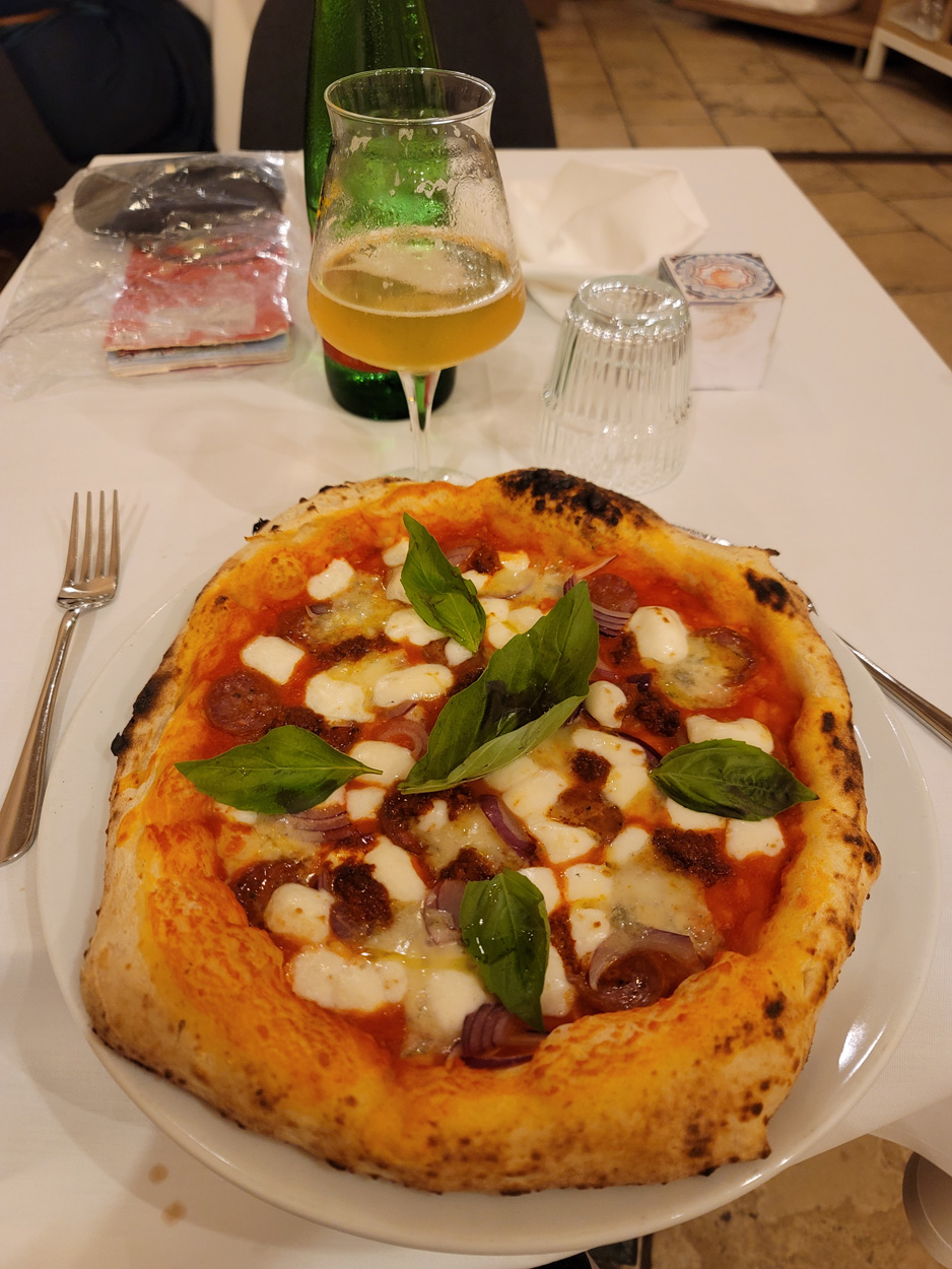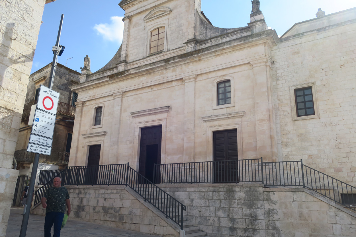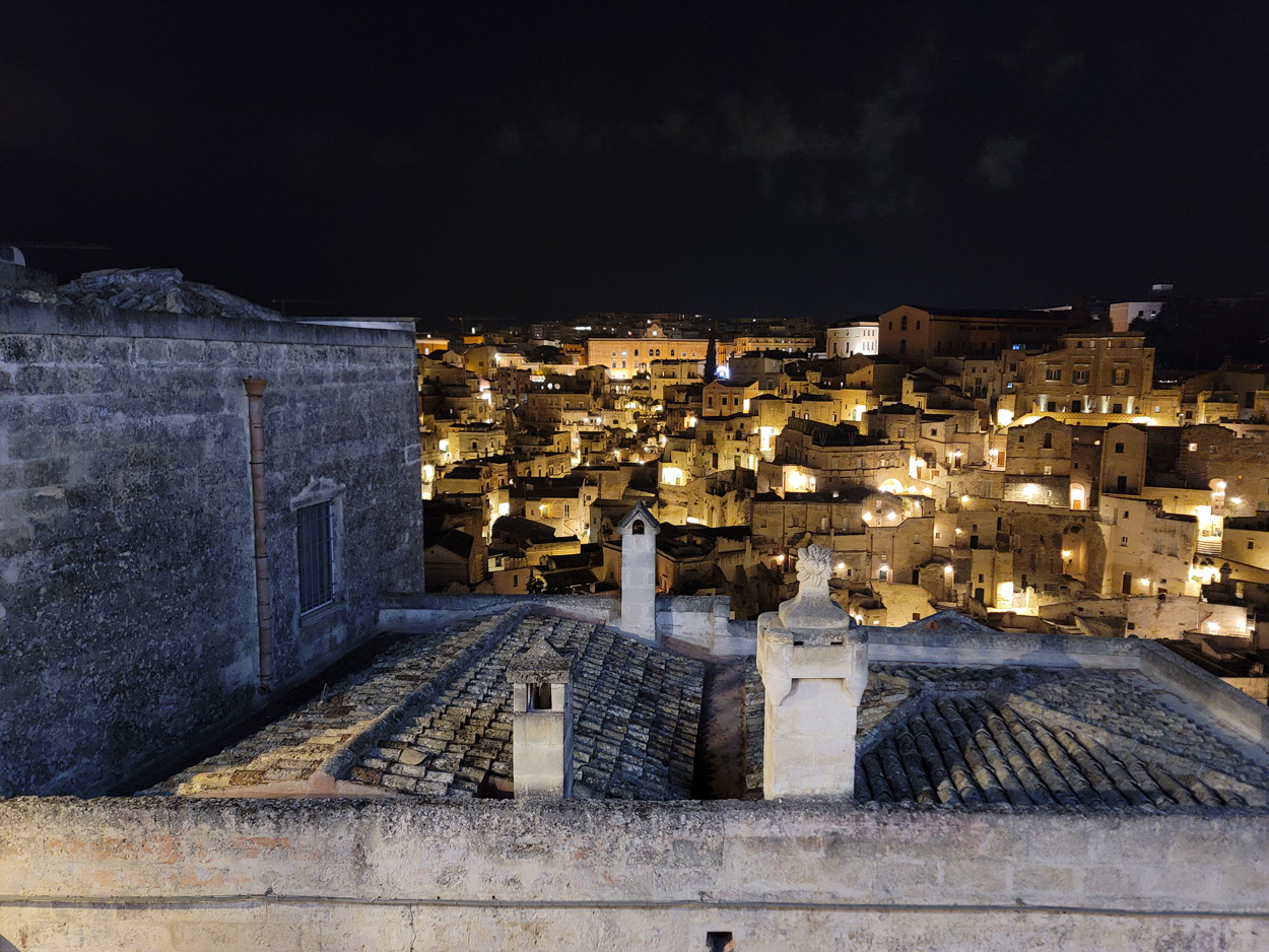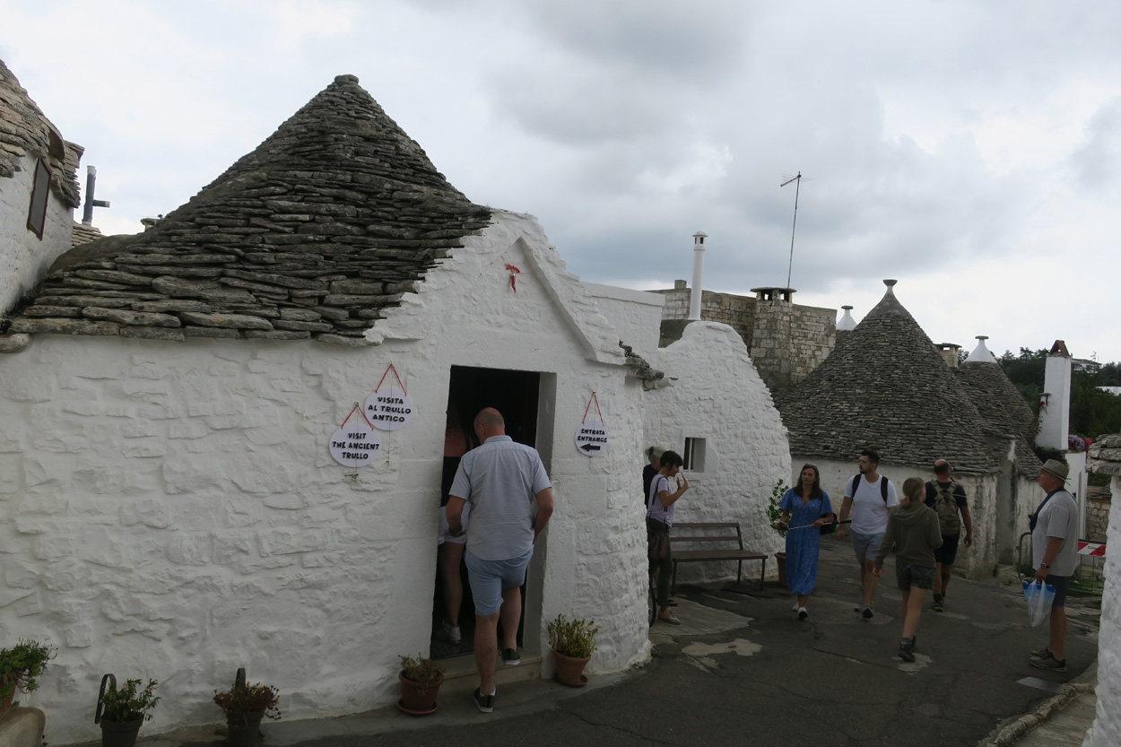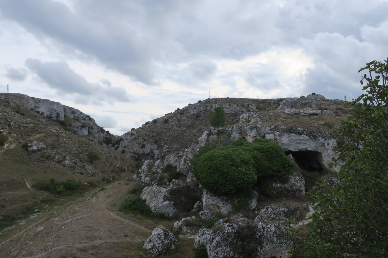 Nachdem ich am Samstag und Sonntag Vormittag zuhause noch Gartenarbeiten zu erledigen hatte, begann ich dann Gestern Mittag mal mein Zeugs zu packen. Ich Überlegte immer noch Intensiv welche Region für eine 2 Wöchige Biketour in Bezug auf das Wetter am besten sein könnte. In Mitteleuropa war es mehrheitlich wechselhaft bis regnerisch. Ich entschied mich dann für Süditalien und buchte dann kurz vor 15Uhr mal einen Liegeplatz im Nachtzug von Milano nach Lecce. Minuten später machte ich mich dann schon auf den Weg zum Bahnhof Frauenfeld wo um 15.18Uhr mein Zug fuhr. Den etwas längeren, gut einstündigen Zwischenhalt in Milano Centrale, nutzte ich dann um mir schon mal etwas fürs Morgenessen zu kaufen. Ich konnte mir dann mit der "To Good to Go App" etwas von einer edel Bäckerei im Hauptbahnhof Mailand zu einem günstigen Preis erwerben. Um 20.30Uhr fuhr dann in Milano mein Nachtzug nach Lecce. Das 4er Liegewagenabteil musste ich dabei mit 2 sympathischen Deutschen teilen. Das Bike ließ sich mit ausgebautem Hinter- und Vorderrad unter der unteren Pritsche verstauen. Während der Bahnfahrt entschied ich mich dann den Nachtzug vorzeitig um 7Uhr in Bari zu Verlassen. Hier stieg ich dann auf einen Regionalzug um der mich ins 80km weiter südlich gelegene Ostuni brachte. Während der Fahrt im Regionalzug baute ich mein Bike schon wieder fertig zusammen. Um 8.40 startete ich dann meine Tour am Bahnhof von Ostuni. Zuerst ging es dann mal gut 100Höhenmeter hinauf ins wunderschöne Stadtzentrum von Ostuni, wo ich mir dann ausreichend Zeit für die Besichtigung nahm. Danach fuhr ich auf Nebenstrassen und Radwegen über Cisternino und Locorotondo nach Alberobello. Hier in Alberobello, der für seine Trulli Häuser bekannten Kleinstadt in Apulien, kam ich dann nach etwa 40km Fahrt um 11.30Uhr an. Da die Ortschaft zum UNESCO-Welterbe zählt und wirklich sehr sehenswert war, tummelten sich auch zahlreiche Touristengruppen aus aller Welt durch die Gassen. Auch ich ließ es mir nicht nehmen so ein Trullihaus von innen anzusehen. Danach führte meine Route über die Ortschaft Noci weiter nach Gioa del Colle. Hier suchte ich mir dann um 14.30 eine Lokalität fürs Mittagessen. An der Via Roma fand ich dann ein offenes Bistro wo ich mich für 45min hinsetzte und Hamburger mit Pommes verspeiste. Danach waren noch knapp 40km bis zu meinem Tagesziel Matera zurückzulegen. Leider hatte ich dann auf den letzten Kilometern noch etwas mit Gegenwind zu Kämpfen. Etwa um 17.15Uhr erreichte ich dann den Hügel gegenüber der Stadt wo sich die ersten Felsenhöhlen befanden. Von hieraus musste ich dann etwa 100hm zu Fuss bis zum Bach Gravina di Matera hinunter und dann fast gleich viele Meter wieder hinauf ins Stadtzentrum von Matera laufen. Die Historische Altstadt über der Felsenklippe erreichte ich dann 17.50Uhr. Etwa eine Stunde Später konnte ich dann ein B&B Zimmer beziehen. Zum Abendessen fand ich dann etwas unterhalb der Unterkunft eine gute Pizzeria welche sich in einer Art von Felsenhöhle befand.