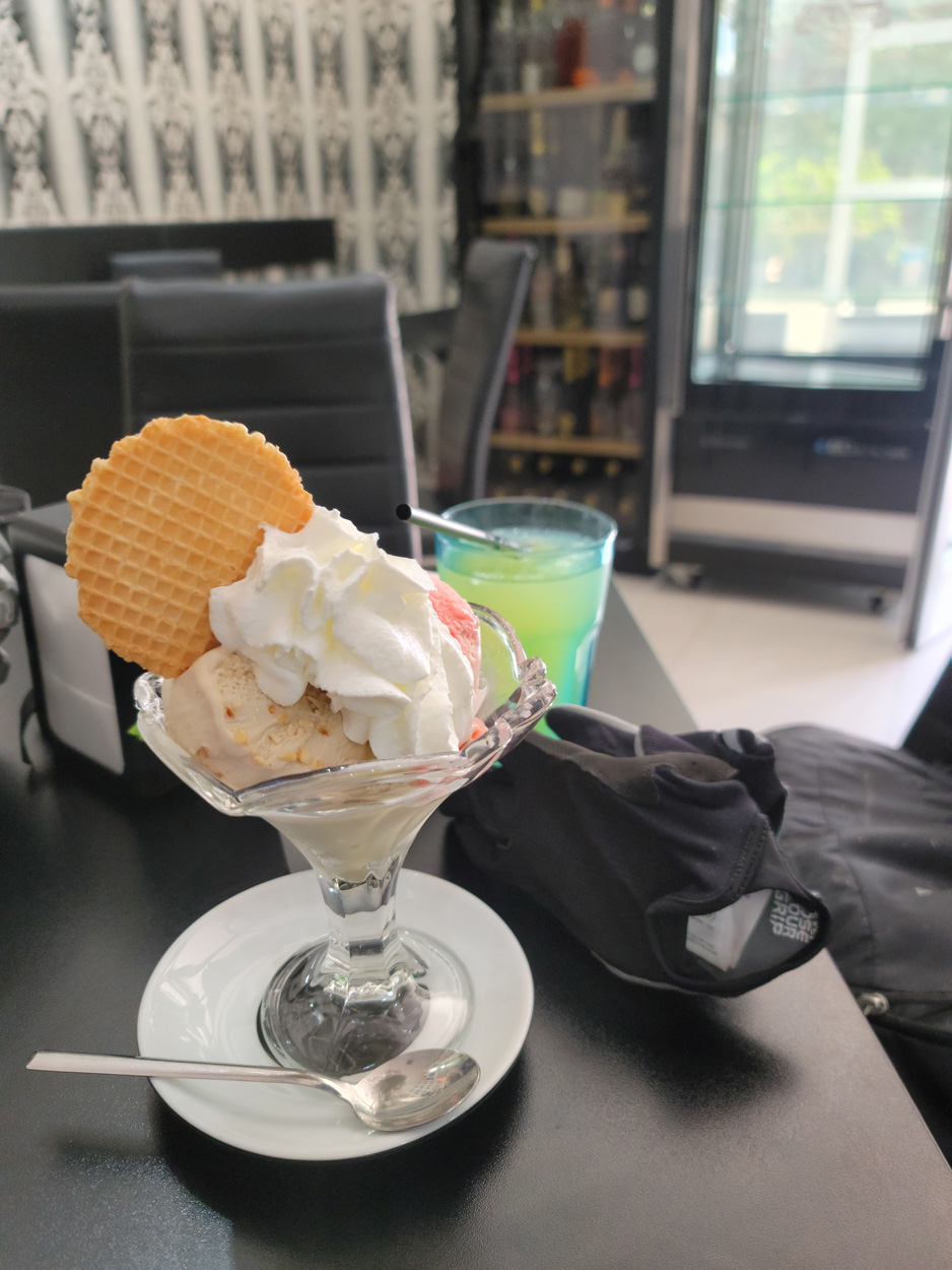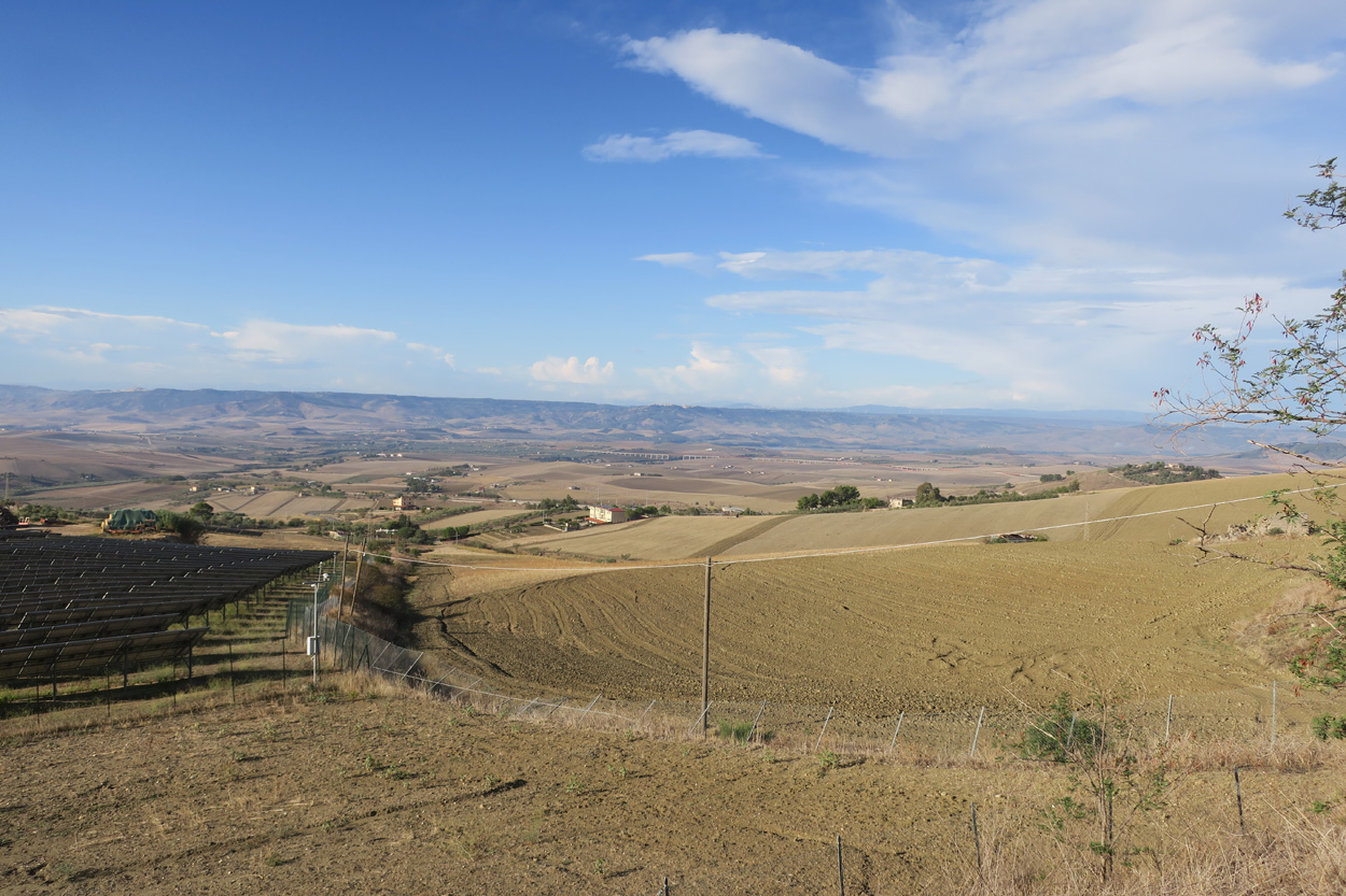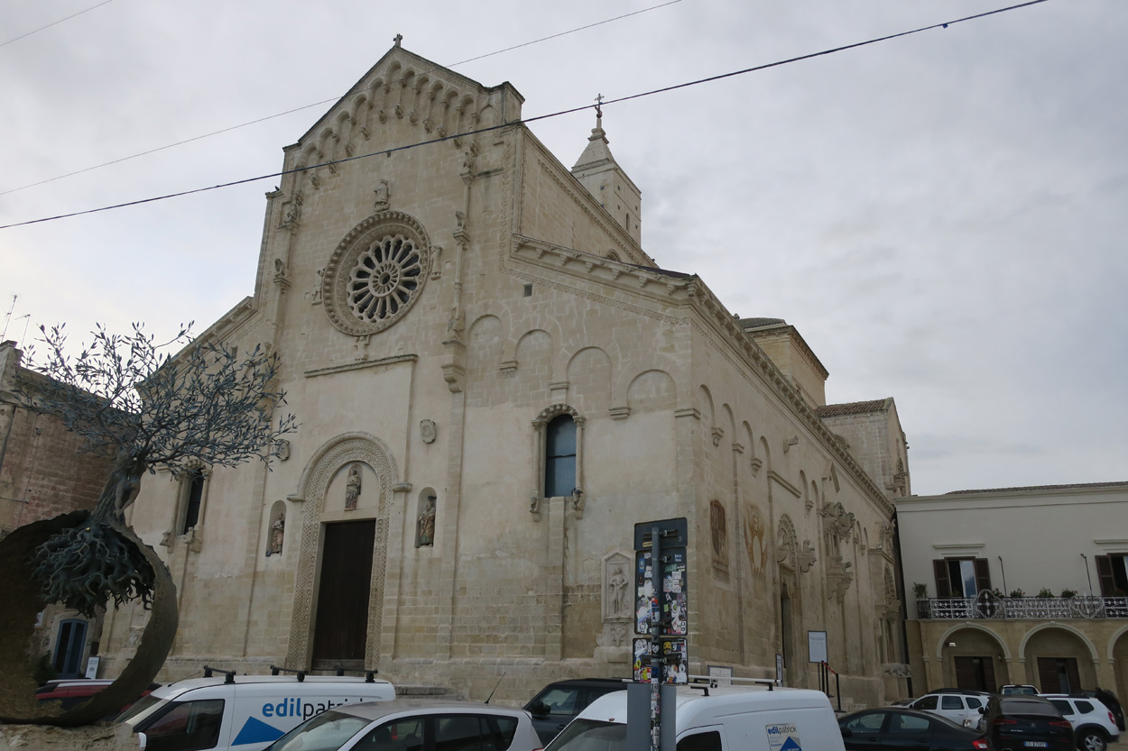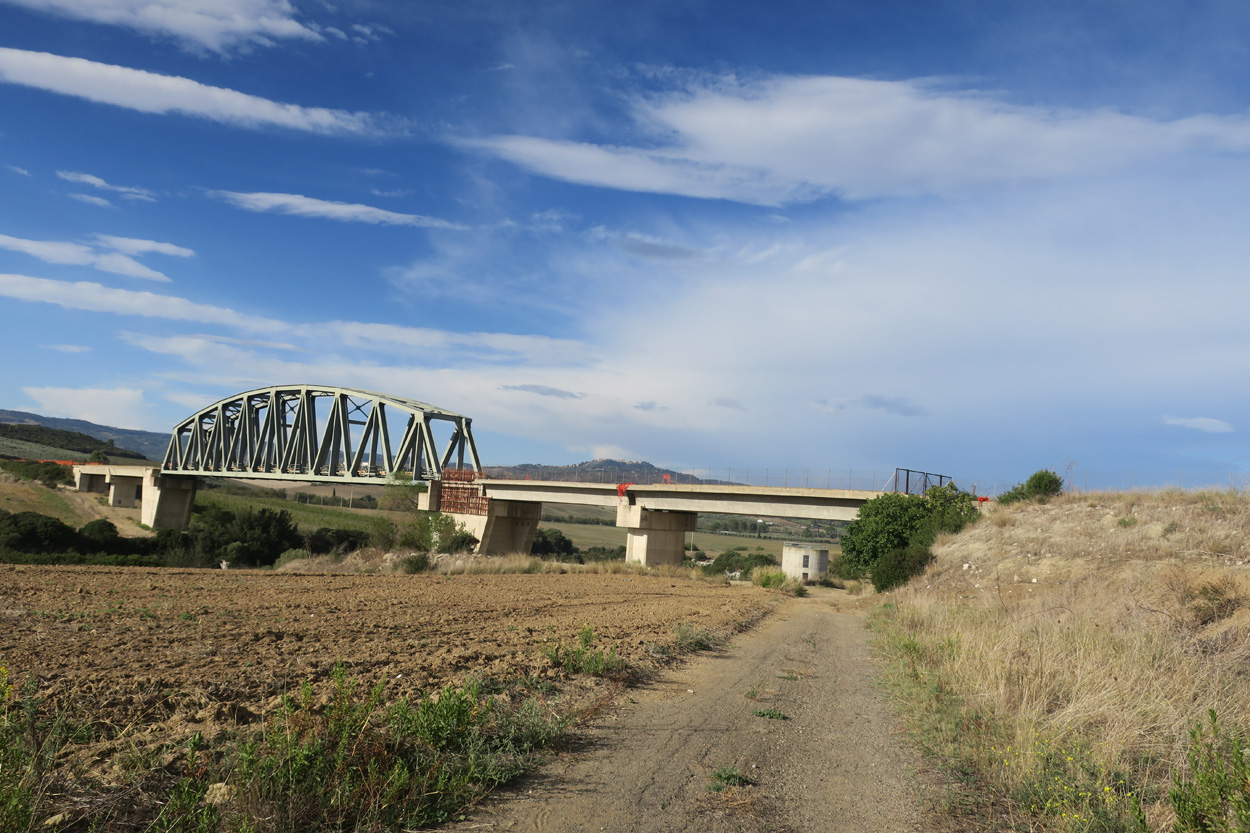 Heute morgen verliess ich um etwa 7.30Uhr meine Unterkunft im historischen Zentrum von Matera. Zuerst suchte ich dann die Bar neben dem Dom auf, wo ich im Auftrag des B&B mein Frühstück erhalten sollte. Es war dann aber sehr sehr bescheiden. Ein Heissgetränk und ein gefüllter Nutella Gipfel. Danach besichtigte ich noch kurz den Dom und komplettierte dann mein Morgenessen bei einem Supermarkt. Danach führte mein Weg etwa 5 Stunden durch fast unbewohntes Gebiet bis zur Ortschaft Oppido Lucano. Verkehr gab es auf meiner Route praktisch keiner. Da ich kurz vor der Ortschaft Oppido Lucano noch eine Platte hatte, schaffte ich es gerade noch knapp zum Supermarkt, bevor der um 13.30Uhr Siesta machte. Ich war froh konnte ich hier noch Getränke kaufen, denn es war recht warm und trocken. Nach dem Besuch des Supermarktes setzte ich mich dann noch in eine Bar-Gelateria. Danach radelte ich dann hinunter zum Acerenza Stausee. Hier gab es dann auf dem Weg nach Rionero di Vultra doch noch ein paar Offroadpisten und ein gut 900m hohes Pässli zu bezwingen. Etwa um 18Uhr erreichte ich dann die Stadt Rionero di Vultra. Zuerst machte ich mich dann auf die Suche nach einem Fahrradgeschäft um einen neuen Schlauch zu kaufen. Danach suchte ich noch einen Supermarkt auf bevor ich dann bei Sonnenuntergang (18.53Uhr) im Hotel eincheckte. Das Zimmer bekam ich hier in diesem 3***Schuppen für 50€ und das feine Abendessen mit Trüffel Pizza bekam ich für 22€. Somit hatte ich hier kaum mehr als die Hälfte bezahlt wie gestern im extrem touristischen Matera.