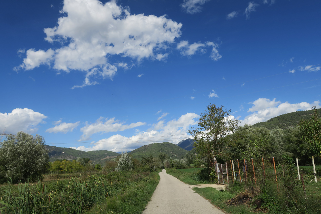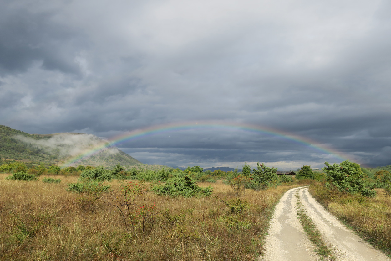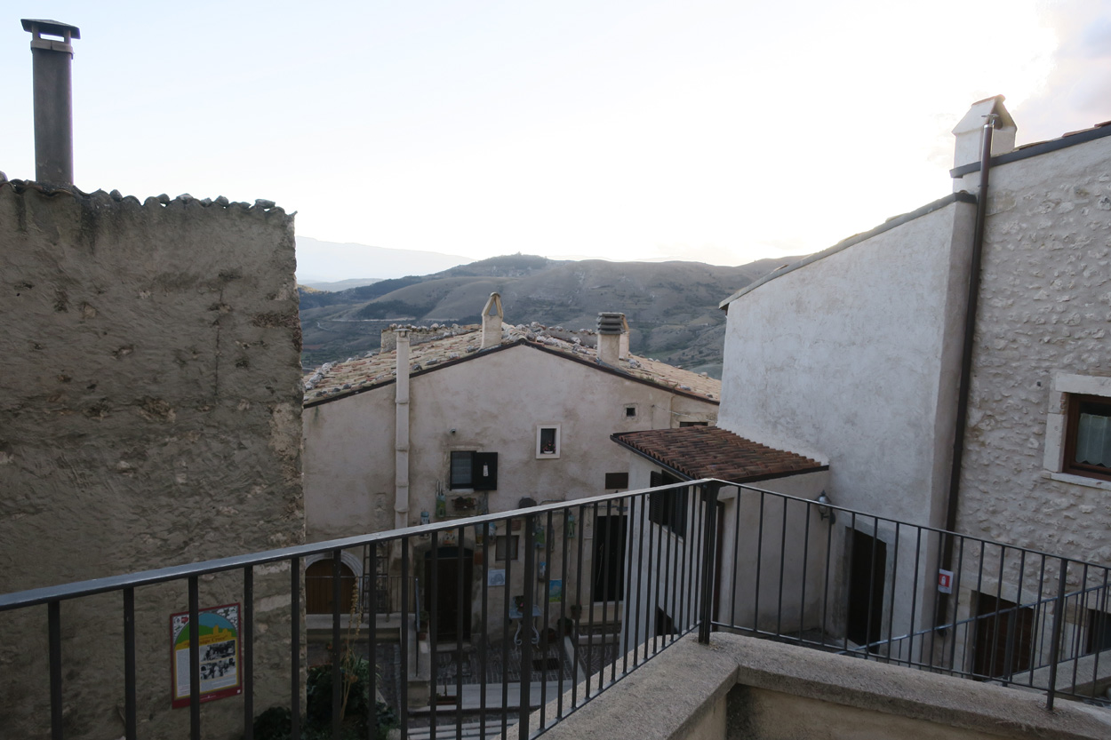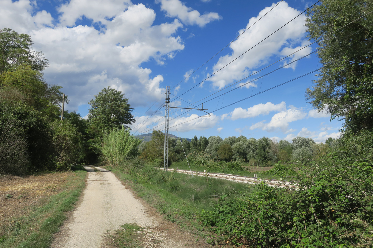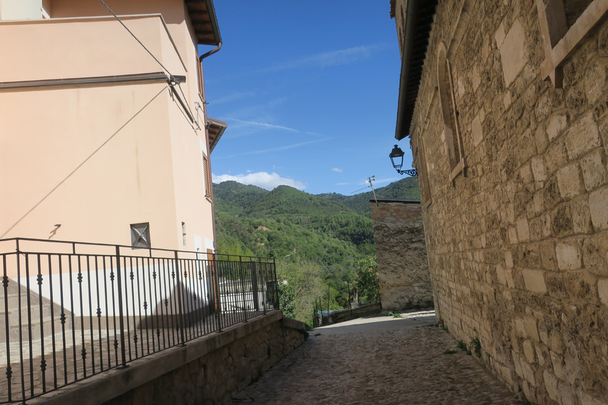 Heute Morgen gab es um 7.45Uhr das Frühstück. Es war Typisch Italienisch und bestand daher hauptsächlich aus diversen Kuchen. Etwa um 8.45Uhr startete ich dann. Leider kam ich nicht weit bis es zu regnen begann. Trotz des Regens entschied ich mich dann blöderweise für die Offroad Variante um nach Sulmona hinunter zu fahren. Der Weg war dann leider noch schlechter als ich vermutet hatte, besonders bei Nässe. Es gab teilweise lehmigen Untergrund der bei Nässe zur sofortigen Verstopfung des Hinterrades führte. Etwa um 11.15Uhr erreichte ich dann dss schöne Stadtzentrum von Sulmona. Hier putzte ich dann am erst besten Brunnen mein Velo. Da das Vorderrad leicht Luft verlor suchte ich dann den Veloladen im Industriegebiet auf. Ich wollte auf Nummer sicher gehen und kaufte einen neuen Reifen und ein Schlauch mit Dichtflüssigkeit (Slime). Ebenfalls konnte ich meine Schaltung wieder richten lassen, nach dem schweren Zwischenfall von Gestern. Gestern war mir in einem Aufstieg die Kette angerissen, hängte dadurch am Schaltwerk ein und riss es ins Rad. Die Folge war ein Verbogenes Schaltwerk und eine gebrochene Schraube im Schaltauge. Der Velomech nahm sich gerade Zeit für mich und offerierte mir noch ein Stück Pizza. Nach etwa 30min war dann mein Bike wieder fit. Auf Rad- und Wanderwegen fuhr ich dann nach Popoli Terme. Dabei gab es noch eine überflutete und daher unpassierbare Bahnunterführung. Ich überquerte dann ausnahmsweise die Geleise. Etwa um 13.45Uhr erreichte ich dann Popoli Terme und kaufte noch Saft. Über ein kleines Pässli führte dann eine Naturstrasse nach Bussi sul Trino. Hier entschied ich mich dann für die direkte Variante im Aufstieg nach Castel del Monte, wo ich vor kurzen ein Hotelzimmer gebucht hatte. Um 18Uhr erreichte ich dann die Ortschaft im Gran Sasso National Park. Nach der Besichtigung des historischen Zentrums und dem Kauf von Proviant, checkte ich dann im Hotel Miramonti ein. Hier bekam ich ein modernes Zimmer und konnte danach um 20Uhr noch ein gutes Abendessen genießen.
