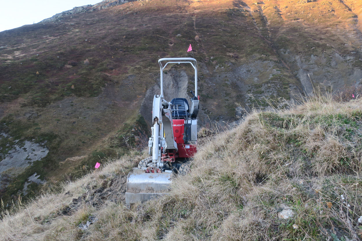 ein Trailbagger für dem Ausbau der Bikeroute