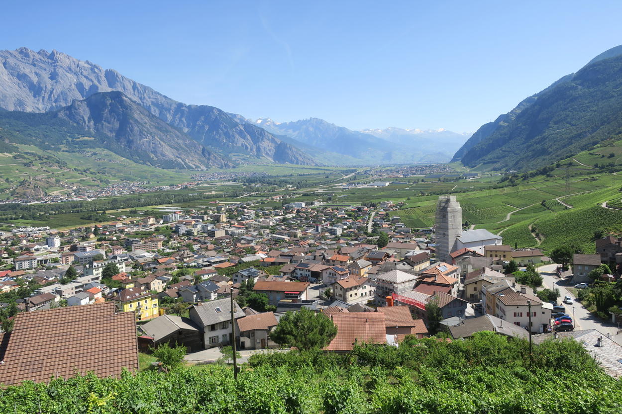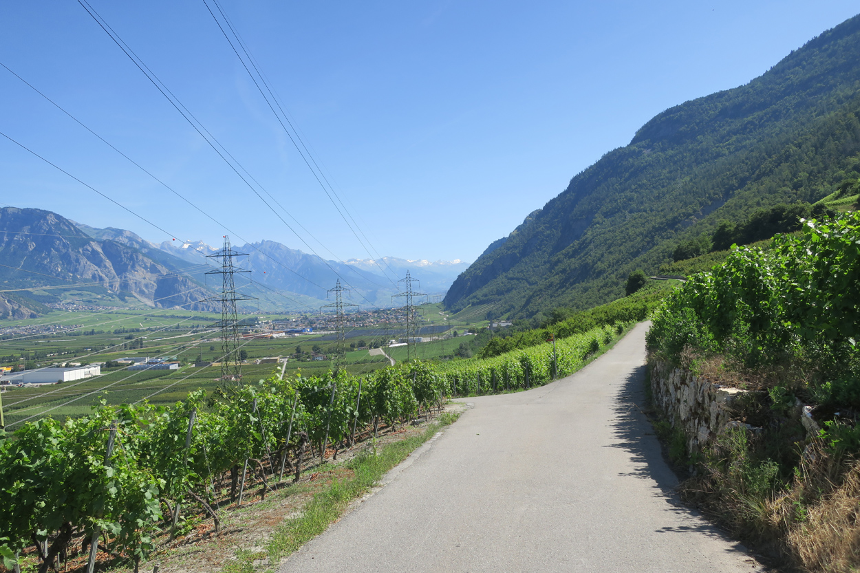 Abfahrt vom Col du Lein, Blick ins Rhonetal