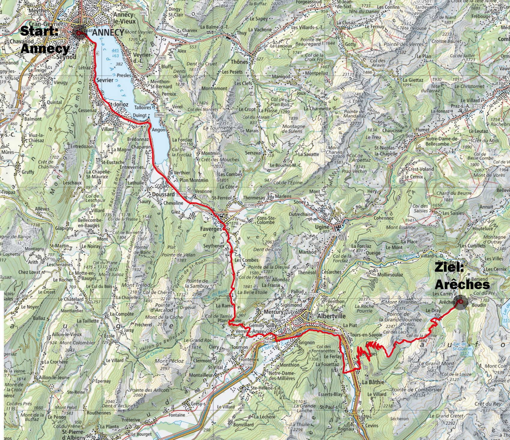 nächsten Zug nach Frankreich. Dieser fuhr nach Annecy und kam dann dort