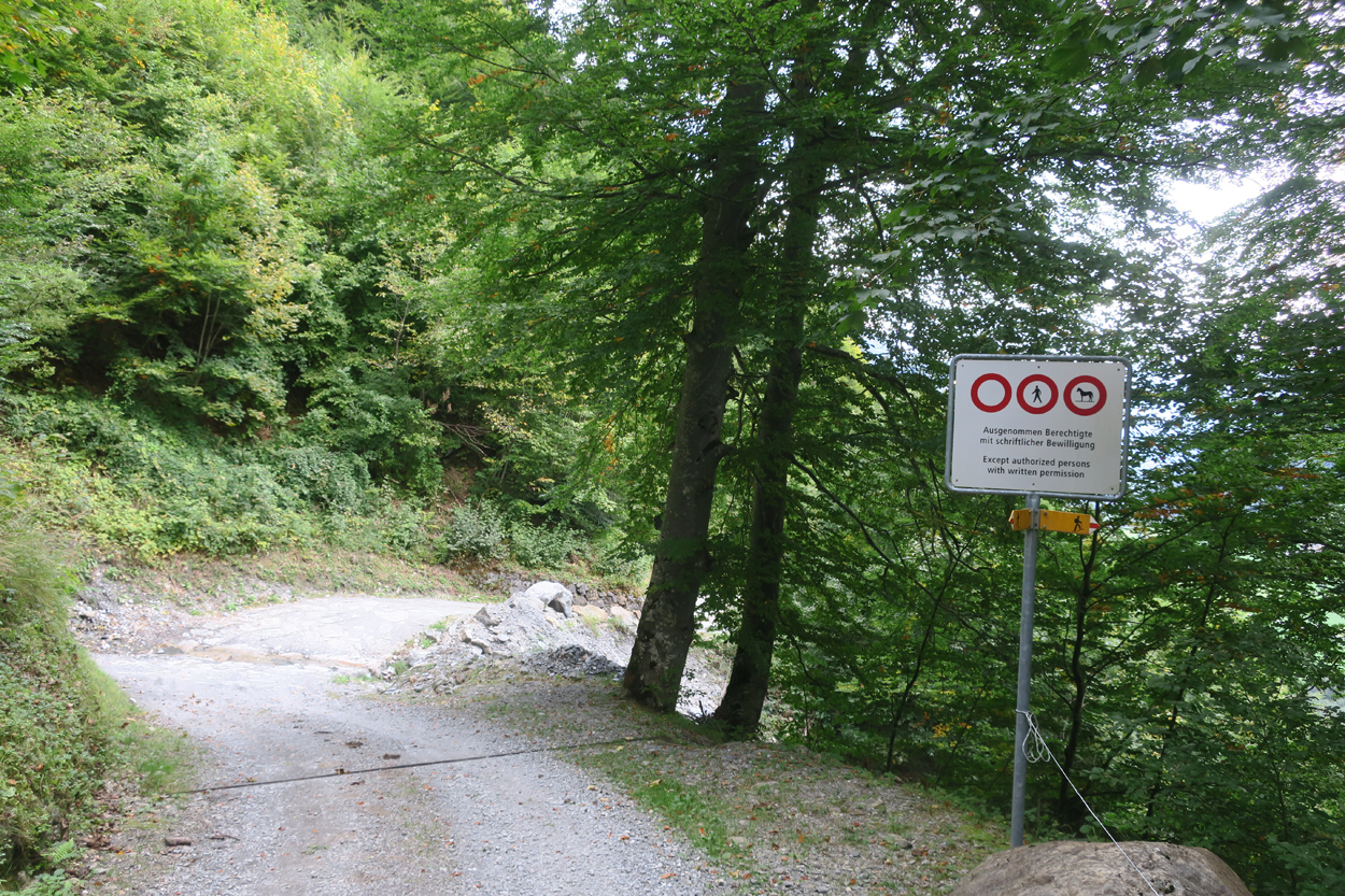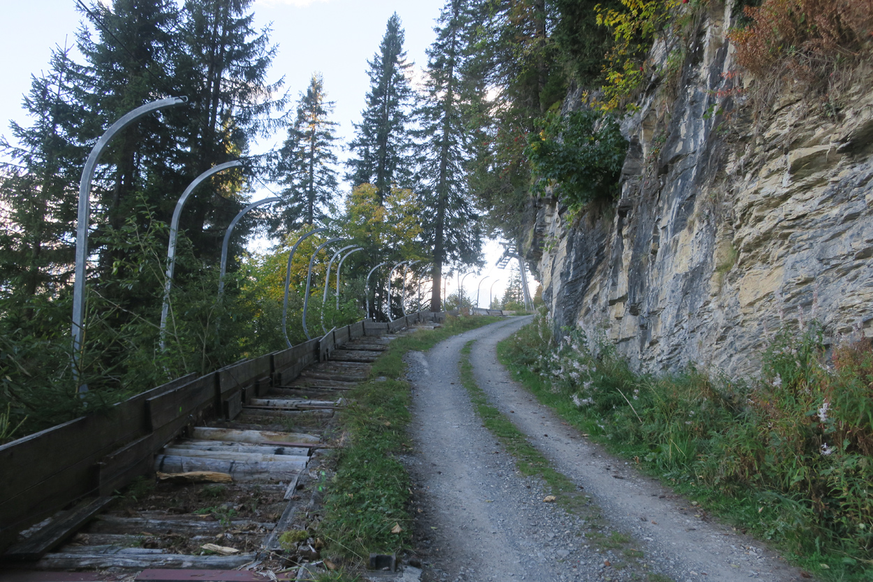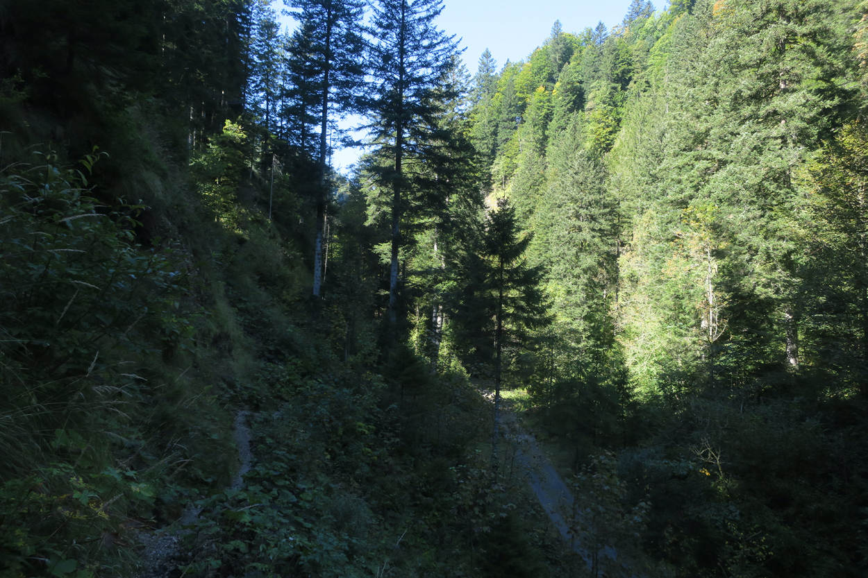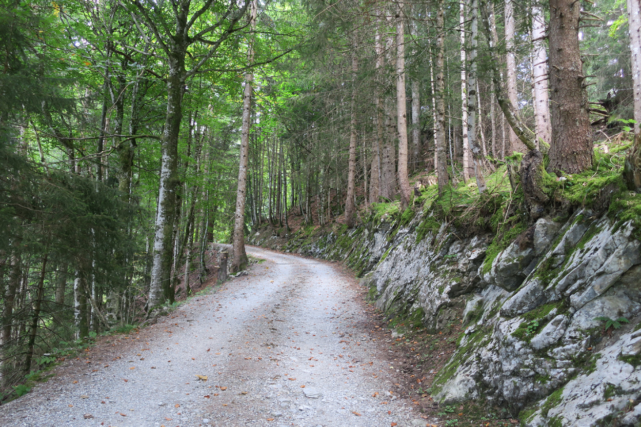 eine anfänglich sehr steile Naturstrasse hinunter nach Hintergoldingen von wo es