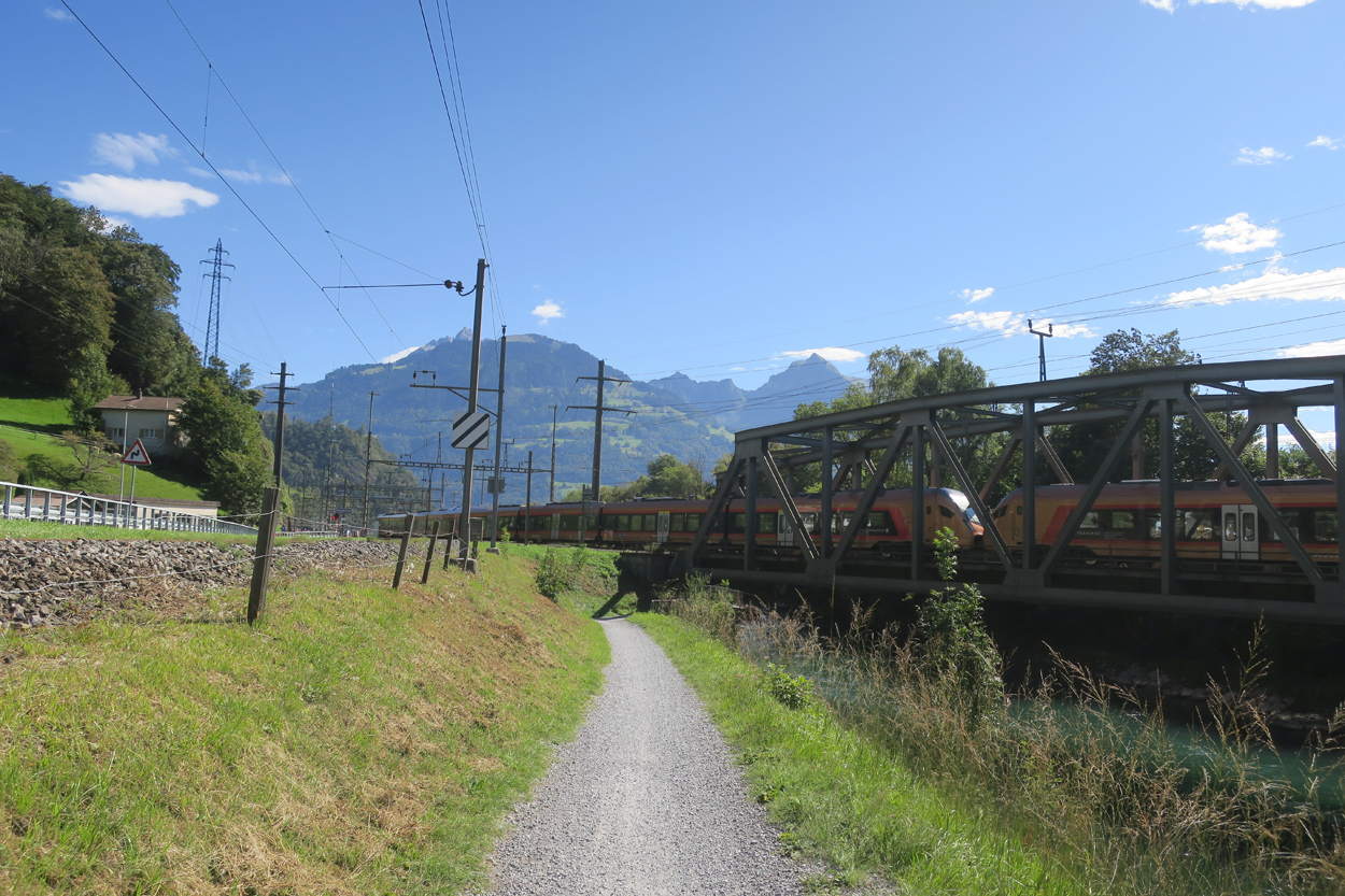 entlang fuhr ich dann nach Ziegelbrücke. Von hieraus folgte ich dann meist dem offiziellen Veloweg nach Glarus. In Glarus suchte ich dann um 14.40Uhr kurz eine