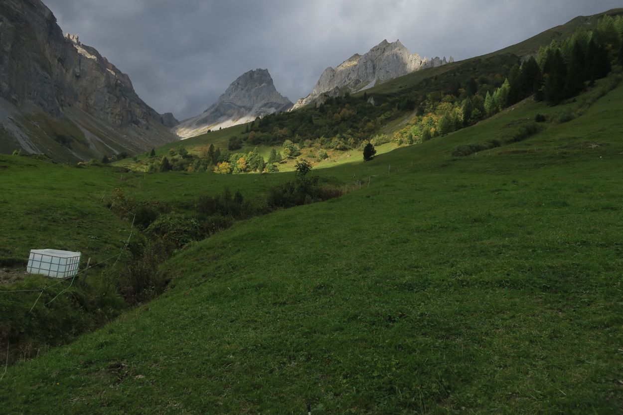 Hinter Fritteren und dem Fisetenpass, Blick auf die Alp Fiseten