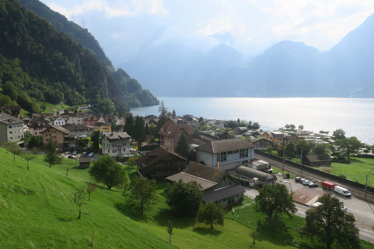 Axenstrasse zwischen Flüelen und der Tellsplatte, Blick zurück auf Flüelen