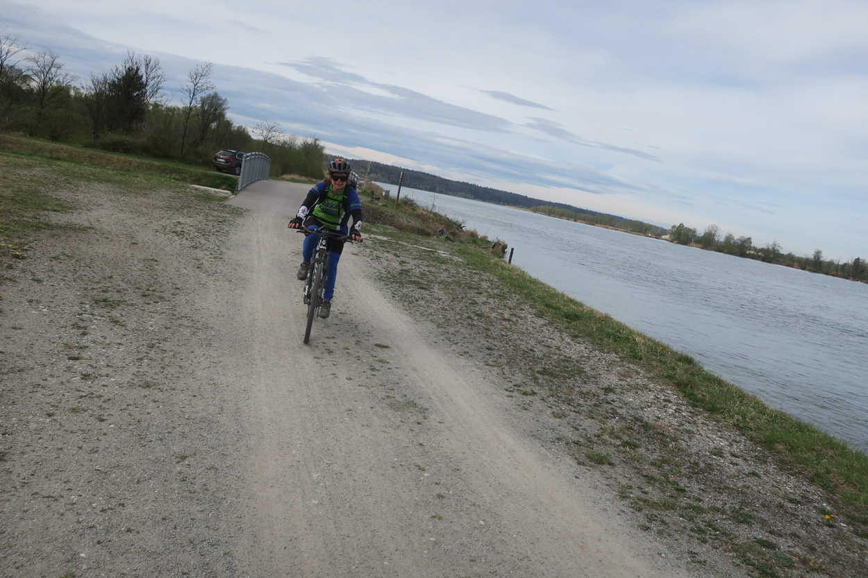 Meist auf dem Damm des Inns fuhren wir dann auf feingekiesten Naturstrassen