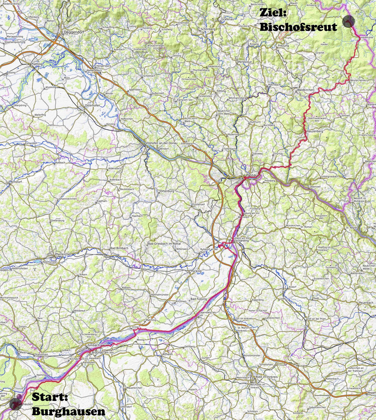 unsere Strecke über die Salzach nach Österreich hinüber. Hier fuhren wir