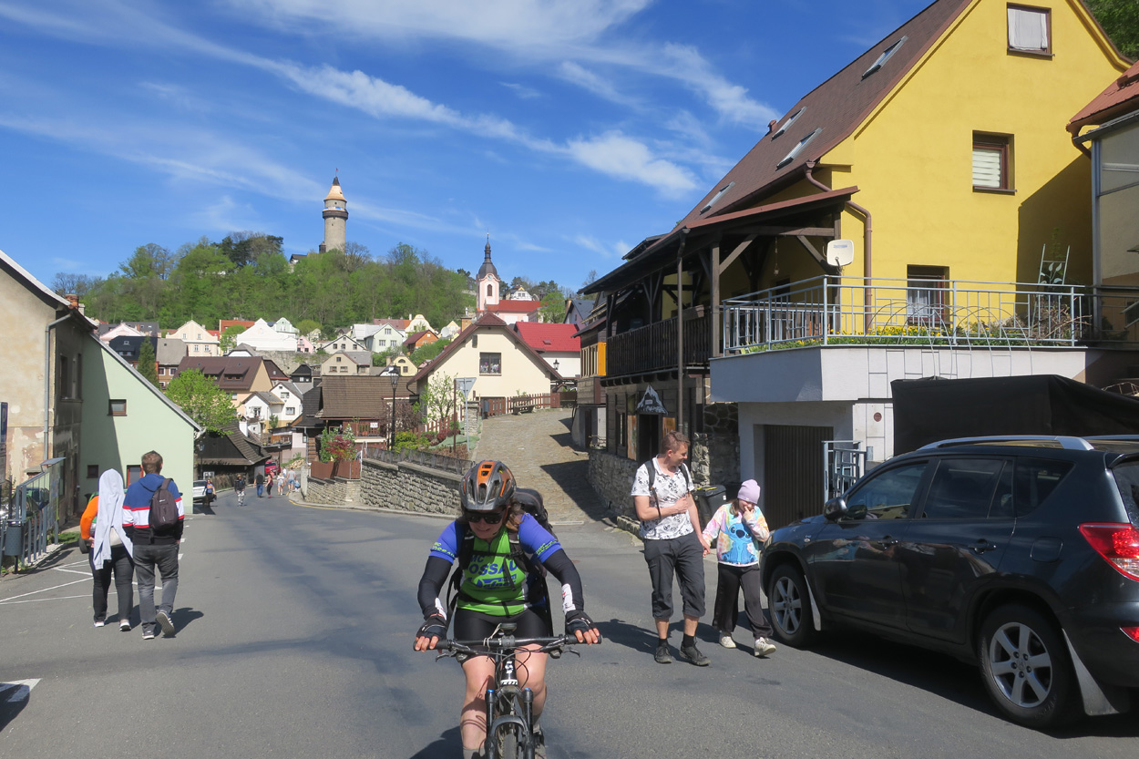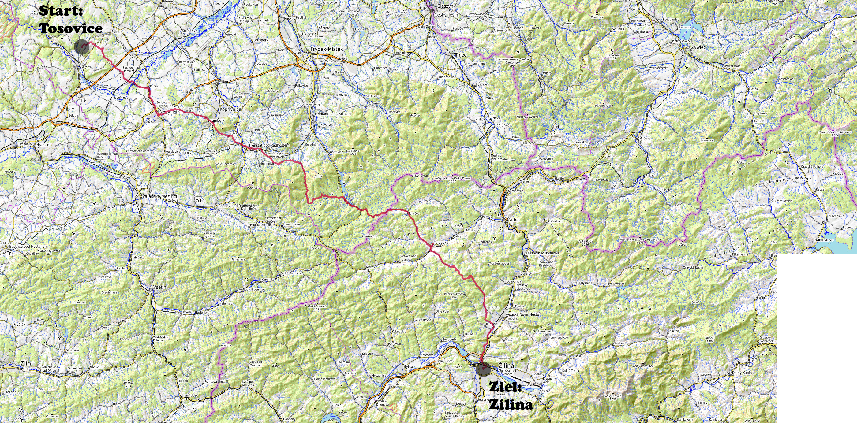Heute Morgen gab es das Frühstück leieder erst um 8 Uhr aber es war zumindest sehr gut. Etwa um 8.45Uhr konnten wir dann starten. Zuerst ging es über Feldwege und dann auf Nebenstrassen in die Stadt Novy Jicin. Im Zentrum von Novy Jicin bot sich dann ein Laden zum Kauf von Proviant an. Danach ging es meist auf Velorouten nach Stramberk. Hier schauten wir uns dann noch das Schöne historische Zentrum unterhalb der Burg an. Danach ging es weiter zur Stadt Frenstat pod Radhostem. Etwa 6km später fuhren wir dann in ein Tal hinein mit bewaldeten Hügeln. Hier ging es dann auf einer Forststrasse über ein 750m hohes Pässli in Richtung des Vodni nadrz Sance Stausee. Von dort radelten wir dann auf der Hauptstrasse über ein gut 700m hohes Pässli hinüber in die Slowakei. Etwa um 14.45Uhr erreichten wir dann die grössere Ortschaft Turzovka. Hier besuchten wir dann eine einfache Kneipe wo es Pommes und Wurst gab. Leider waren wir durch ungünstigen Gegenwind und wegen dem eher späten Start hinter meiner erdachten Marschtabelle. Somit war mein Ursprüngluches Ziel in der Nähe der Polnischen Grenze nicht mehr zeitig erreichbar. Als Alternative fuhren wir dann um 15.30Uhr über ein Pässli mit einer Naturpiste direkt zur mittelgrossen Stadt Zillina. Hier kamen wir dann etwa um 18Uhr an. Bevor wir hier ins Zentrum fuhren suchten wir noch das Schloss Budatinski Hrad auf. In Zilina nahmen wir dann ein Zimmer an der besten Adresse, einem 4 Sterne Hotel am Rande des historischen Zentrums für 145€. Fürs Abendessen suchten wir dann an diesem Ostersonntag um 19.30Uhr eine Pizzeria auf. Die Pizza war so mässig gut und es machte den Anschein, als ob das Personal schnellst möglich Feierabend wollte.