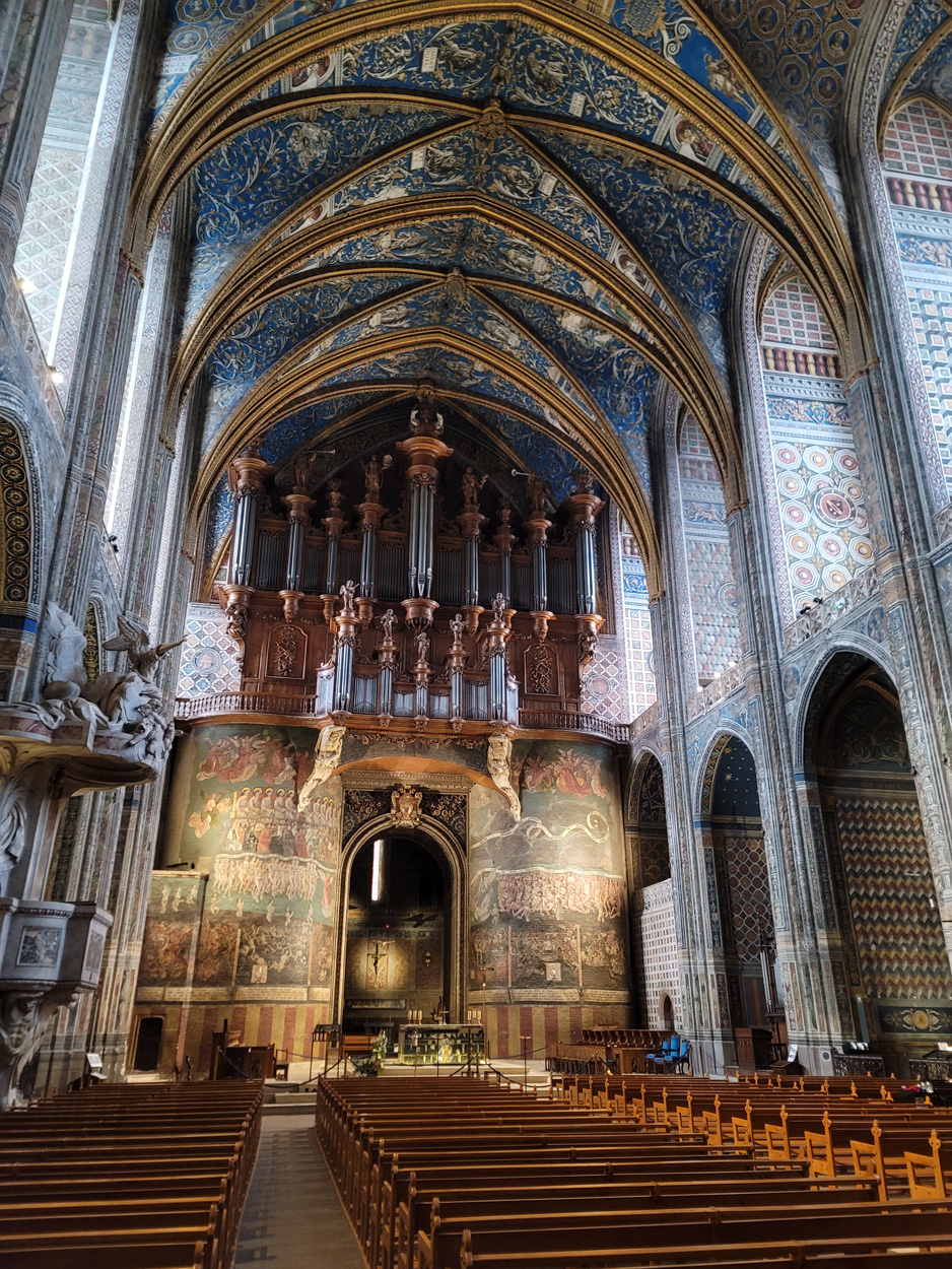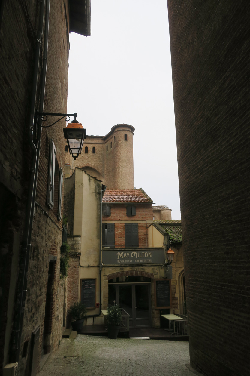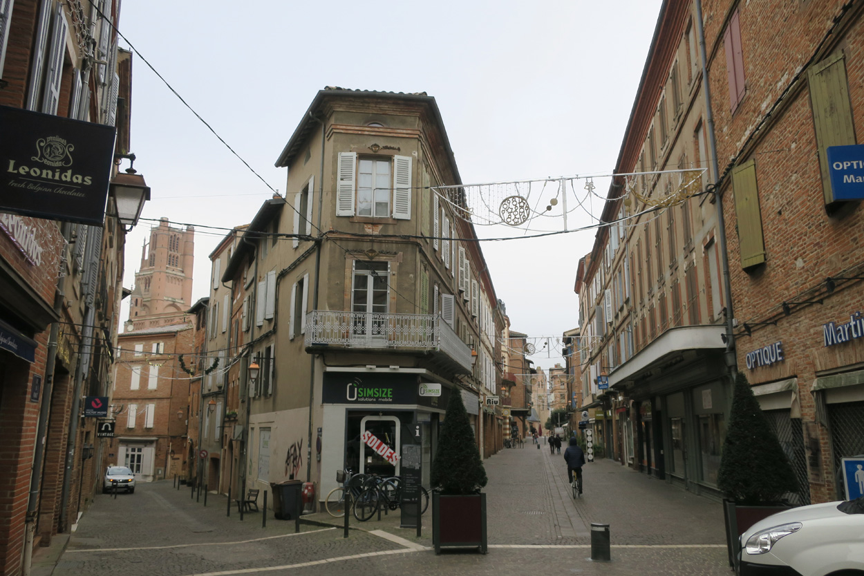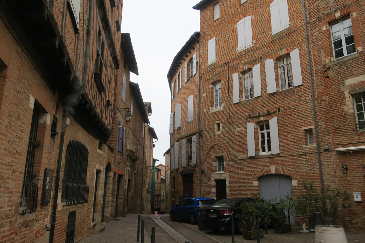 Heute morgen gab es in meinem 4****ab 7Uhr ein gutes Frühstücksbüffet. Da der Sonnenaufgang erst um 8.20Uhr war, ging ich aber erst um 7.30Uhr zum Morgenessen. Um 8.45Uhr radelte ich dann los bis zum ersten Supermarkt, wo ich mich noch mit Getränken eindeckte. Etwa um 9Uhr war ich dann auf dem Voie Verte Bahntrasseradweg. Auf dieser 40km langen, mit Feinkiesbelag versehenen Trasse, fuhr ich dann in zügigem Tempo nach Albi wo ich dann um etwa 11.15Uhr in der Altstadt ankam. Die Altstadt von Albi mit der riesigen Kathedrahle gehört im übrigen zum UNESCO- Weltkulturgut. Daher ließ ich es mir auch nicht nehmen, zumindest den frei zugänglichen Teil der Kathedrale anzusehen. Leider war es heute bis Albi bedeckt mit Temperaturen unter dem Gefrierpunkt, so dass ich praktisch alle Kleider am Leibe trug. Selbst so hatte ich nicht sonderlich warm. Nach Albi folgte dann ein weiterer, aber nur relativ kurzer Bahntrasseradweg von etwa 5km Länge welcher zu einem Bergwerksgelände bei Cagnac les Mines führte. Die Minen sind aber nicht mehr in betrieb und das Abbaugebiet ist mit einem großen Solarpark überbaut. Immerhin hatte ich jetzt dass Glück, dass für den Rest des Tages die Sonne zum Vorschein kam, welche doch sofort für ein angenehmeres Klima sorgte. Über hügeliges Gelände erreichte ich dann um 13.20Uhr die Ortschaft Cordes sur Ciel welche sich teilweise auf einem Gipfels eines Hügels befand. Hier bot sich mir die Gelgenheit, mich in einem Supermarkt nochmals mit Treibstoff einzudecken. 10min später radelte ich dann schon wieder weiter. Meine Marschtabelle ließ es leider nicht zu, noch das Zentrum der Ortschaft auf dem Hügel zu besichtigen. Über einen weiteren Hügelzug kam ich dann zum Fluss L' Aveyron. Dem Fluss entlang durch ein Landschaftlich sehr reizvolles Tal, erreichte ich dann um 15Uhr die historische Kleinstadt Saint Antonin Noble. Obwohl mein Zeitplan eher knapp war und noch 50km bis zu meinem Tagesziel fehlten, ließ ich es mir nicht nehmen das schöne Städtchen noch kurz zu besichtigen, inklusive dessen Kirche. Danach ging es im hügeligen Gelände weiter bis nach Cahors meinem Tagesziel, welches ich kurz vor Einbruch der Dunkelheit um 17.50Uhr erreichte. Leider führte meine Route etwa 25km vor meinem Tagesziel noch über eine gut 5km lange Naturpiste. Diese war teilweise noch tiefgefroren, teilweise aber auch lehmig-feucht, so dass mein Velo doch einiges an Dreck abbekam. Um 18Uhr checkte ich dann im erst besten Hotel am Fluss Lot gegenüber von Chahors ein. Bis ich aber mit mein Velo ins Zimmer ging, war ich sicherlich noch 15Minuten damit beschäftig, es vom gröbsten Dreck zu befreien. Im diesem doch eher teuren 3***Hotel (104€ inkl. Frühstück) konnte ich dann auch noch eine warme Badewanne und ein Gutes Abendessen genießen.
