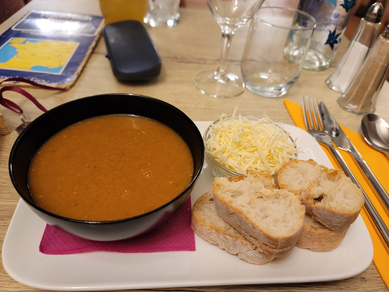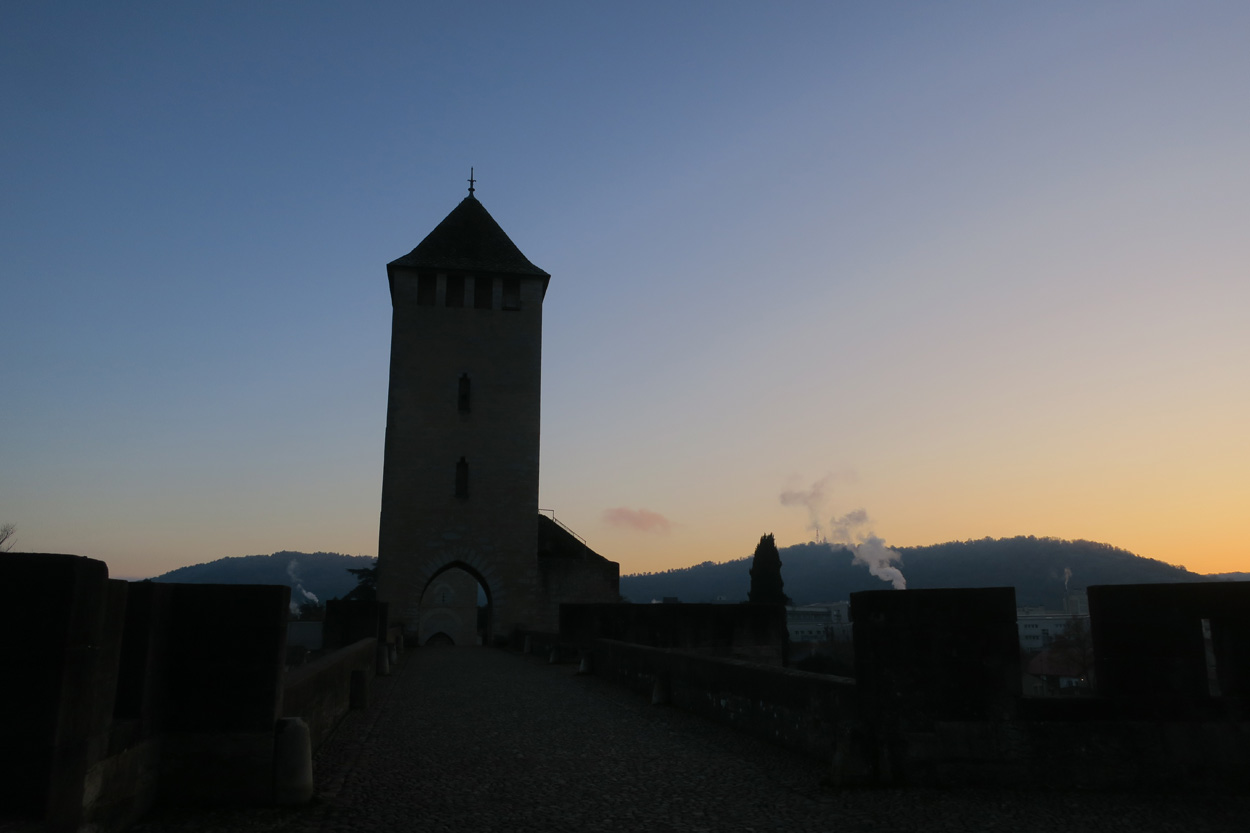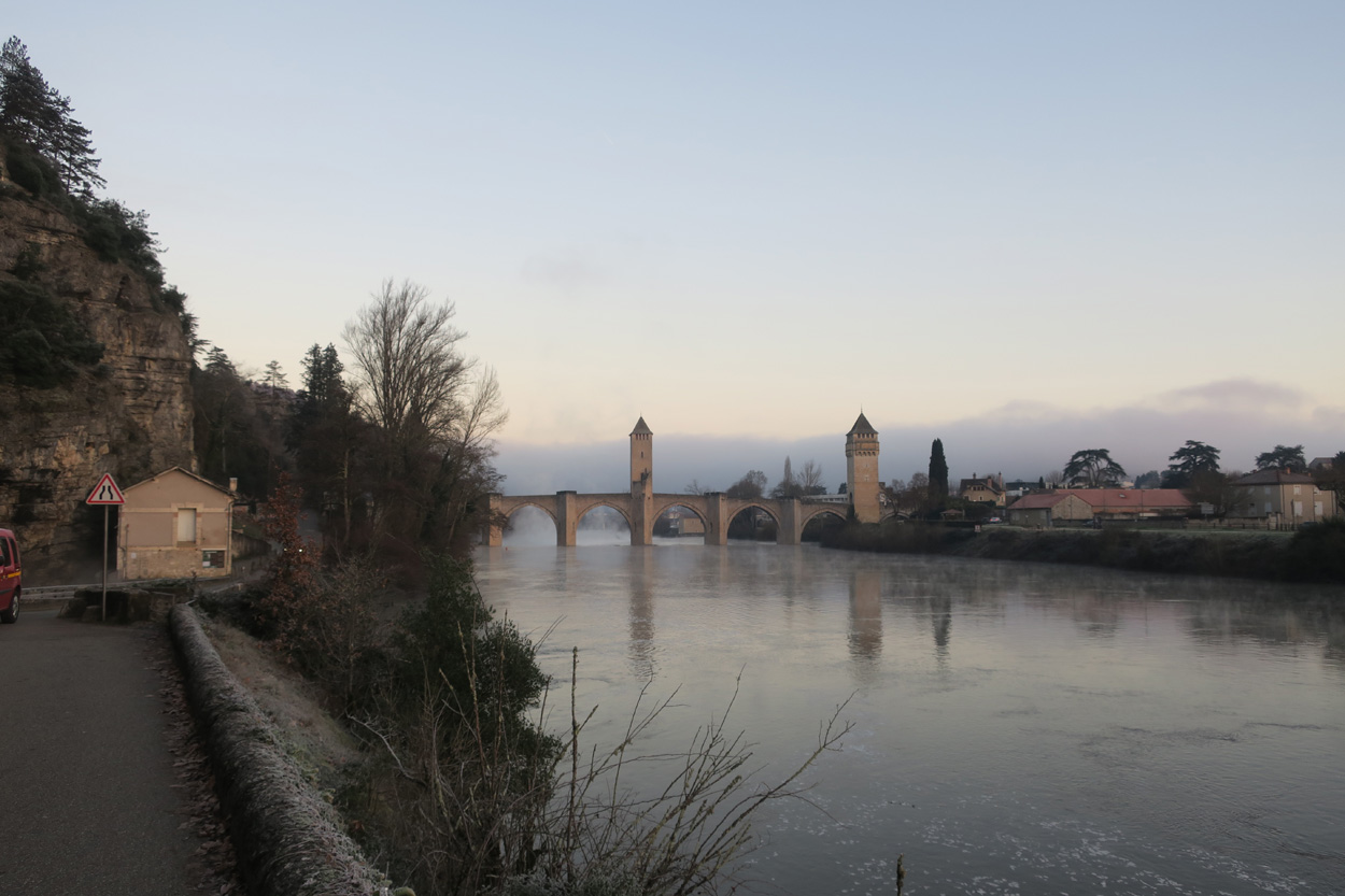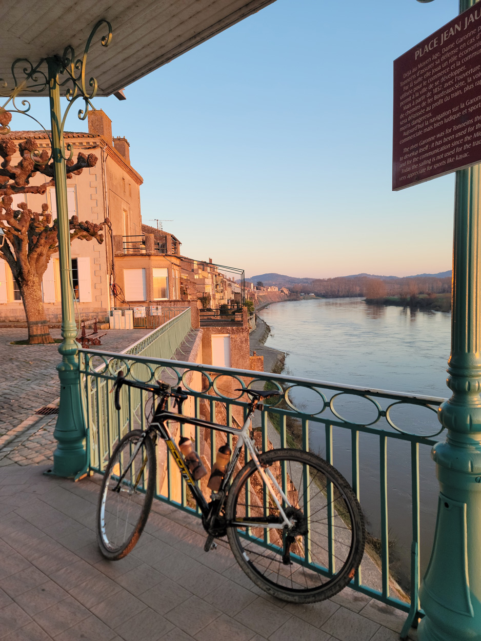 Heute Morgen Heute morgen startete ich bei etwa -5°C um 8.30Uhr. Zuerst ging es über die historische Pont Valentre ins Zentrum von Chahors. Danach fuhr ich dann auf dem Radweg mehr oder weniger dem Fluss Lot entlang bis Villeneuve sur Lot. Dort machte ich dann um 14Uhr bei einer Kebabbude Mittagspause. Auf dieser Radroute gab es auch einige Bahntrassenabschnitte, Total etwa 40km. Nach der Mittagspause in der schönen Altstadt von Villeneuve folgten noch die restlichen 50km auf der Radroute bis Tonneins. Dort kam ich dann kurz vor Sonnenjntergang um 17.30Uhr an. Hier bezog ich dann ein Zimmer im Hotel Côte Garonne und konnte danach auch noch ein gutes Abendessen geniessen.