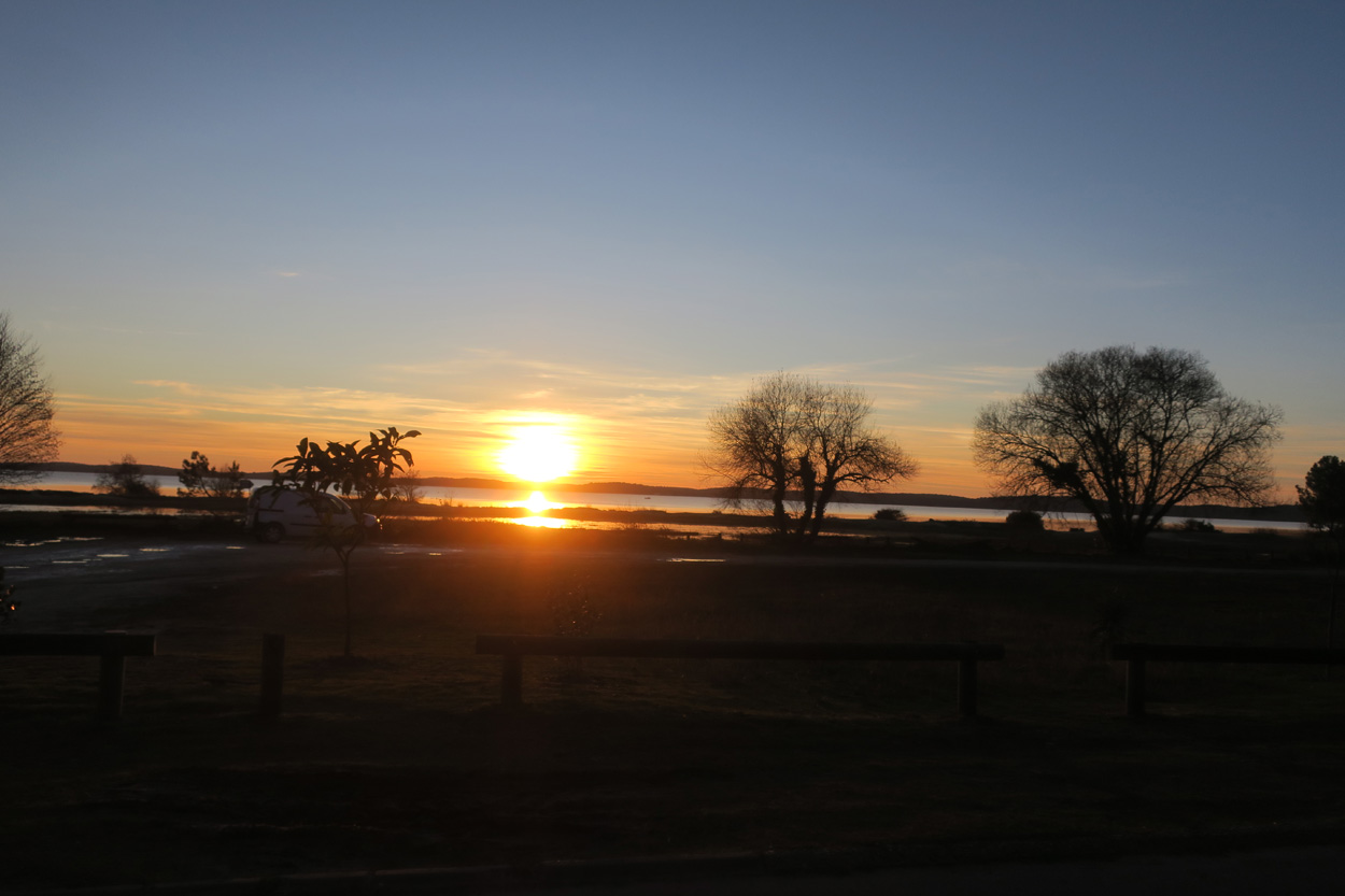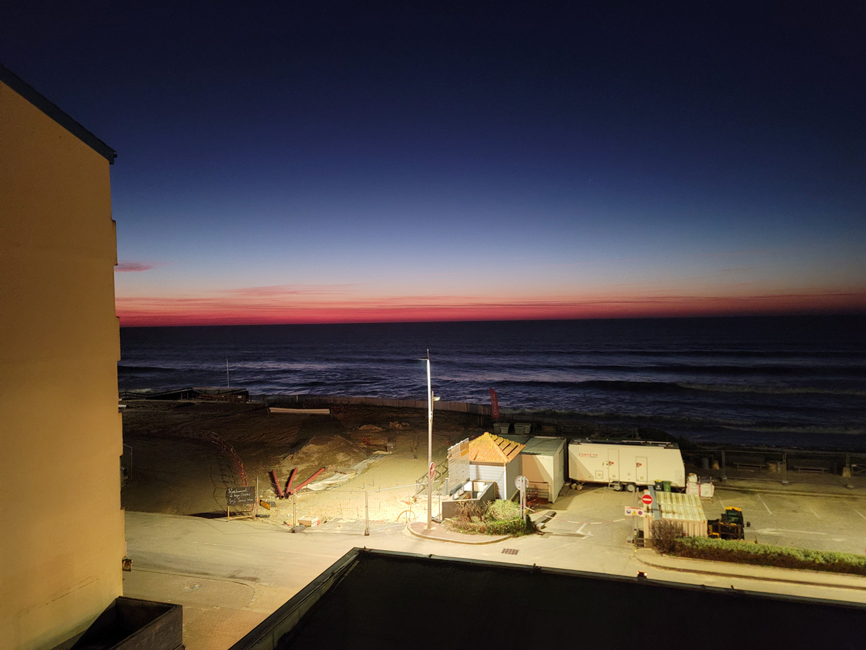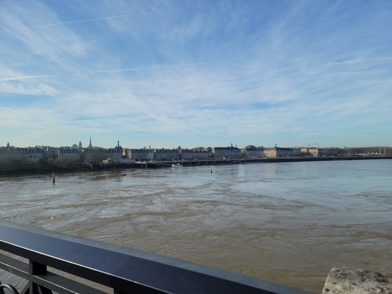 Heute morgen gab es um 7.30Uhr ein wirklich sehr gutes Frühstück. Bei Sonnenaufgang um 8.30Uhr war ich dann startklar. Zuerst ging es über die große Brücke auf die andere Seite der Garonne. Nach etwa 5km in der Ebenen kam ich dann zum Schiffahrtskanal der mehr oder weniger paralel zur Garonne verläuft. Auf dem Radweg neben dem Kanal fuhr ich dann etwa 35km bis kurz vor la Réole. Dort wäre dann wieder eine Überquerung des Flusses Garonne nötig gewesen. Doch leider war die Brücke, vermutlich wegen Statikproblemen gesperrt und verbarrikadiert. Es blieb mir dann nichts anderes übrig als 5km Umweg über die Transithauptstrasse zu machen. Insgesamt kostete das sicherlich 20min Zeit. Vom schönen Städtchen La Réole führte dann meine Route nach Sauveterre de Guyenne. Dort machte ich dann um 12.15Uhr kurz einen Verpflegungsstopp in einer Bäckerei. Danach radelte ich auf einem knapp 50km langen Bahntrasse bis an den Ortsrand von Bordeaux. Das wunderschöne Zentrum von Bordeaux erreichte ich dann um 14.40Uhr. Hier kaufte ich mit dann noch einen Imbiss bei einem Bäckereistand. Danach führte meine Route aus der Großstadt hinaus, wo ich dann sicherlich nochmals etwa 50km einem Bahntrasseradweg folgte, bis nach Lacenau-Oceam am Atlanik. Ich kam hier sehr gut vorwärts so dass ich das Hotel noch vor der totalen Dunkelheit erreichte. Im Hotel bekam ich ein Zimmer mit Blick aufs Meer und konnte danach noch ein gutes Abendessen genießen
