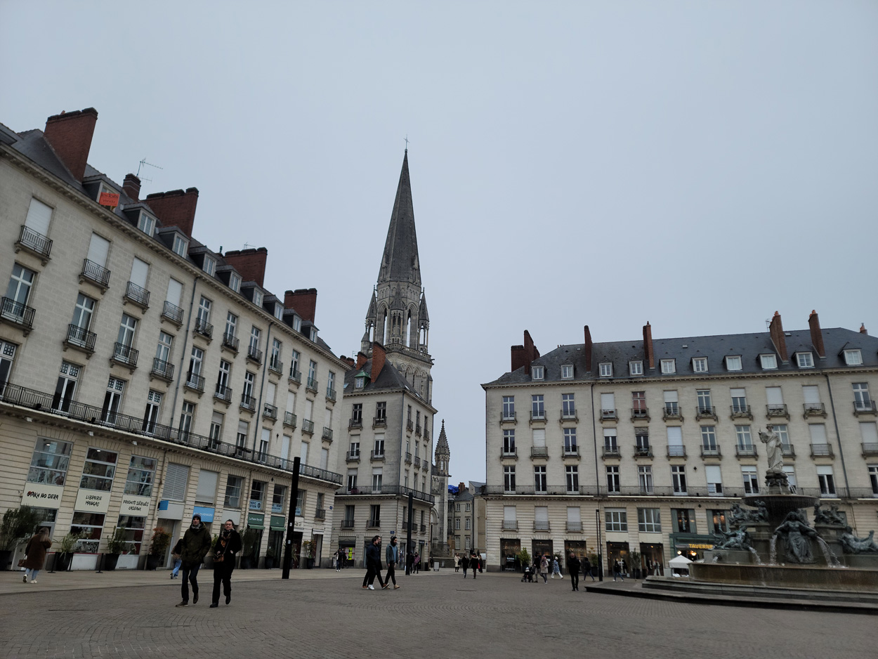 Heute morgen gab es von der netten Gastgeberin um 9Uhr ein einfaches aber gutes Frühstück. Um 9Uhr war ich dann startbereit. Meist auf Nebenstrassen radelte ich dann in Richtung Nantes. Leider kam die Sonne nie zum Vorschein und die Temperatur war so knapp unter 0°C. Da ich aber alle meine Kleider angezogen hatte, war es erträglich. Etwa um 12Uhr hatte ich dann das Stadtzentrum von Nantes erreicht. Hier hatte ich noch ausführlich Zeit für eine Stadtbesichtigung. Das Highlight dieser sechst grössten französischen Stadt war dabei das Chateau des ducs de Bretangne, ein Schloss aus dem 15. Jahrhundert. Etwa 45min bevor der Zug fuhr beendete ich dann diesen Velotrip am Bahnhof von Nantes. Am Bahnhof kaufte ich dann noch etwas Proviant und Verpackte dann noch mein Velo. Pünktlich um 14.08Uhr fuhr dann mein TGV-Zug in Richtung Strasbourg los....Wenn alles klappt, sollte ich dann 9 Stunden später wieder in Frauenfeld sein