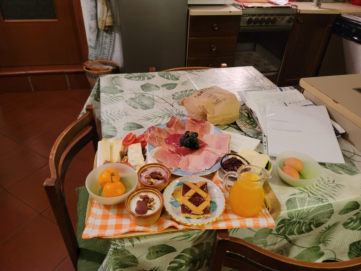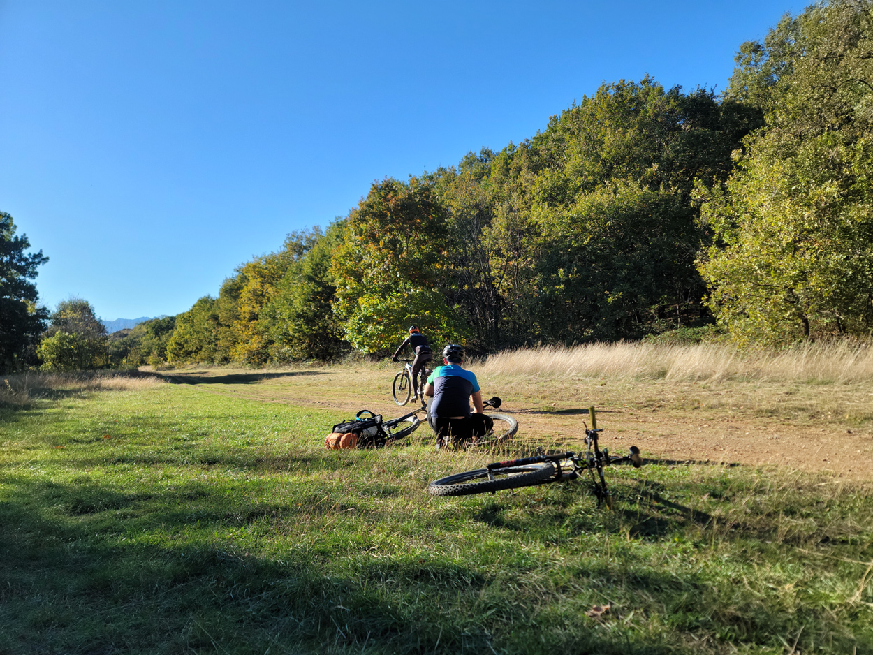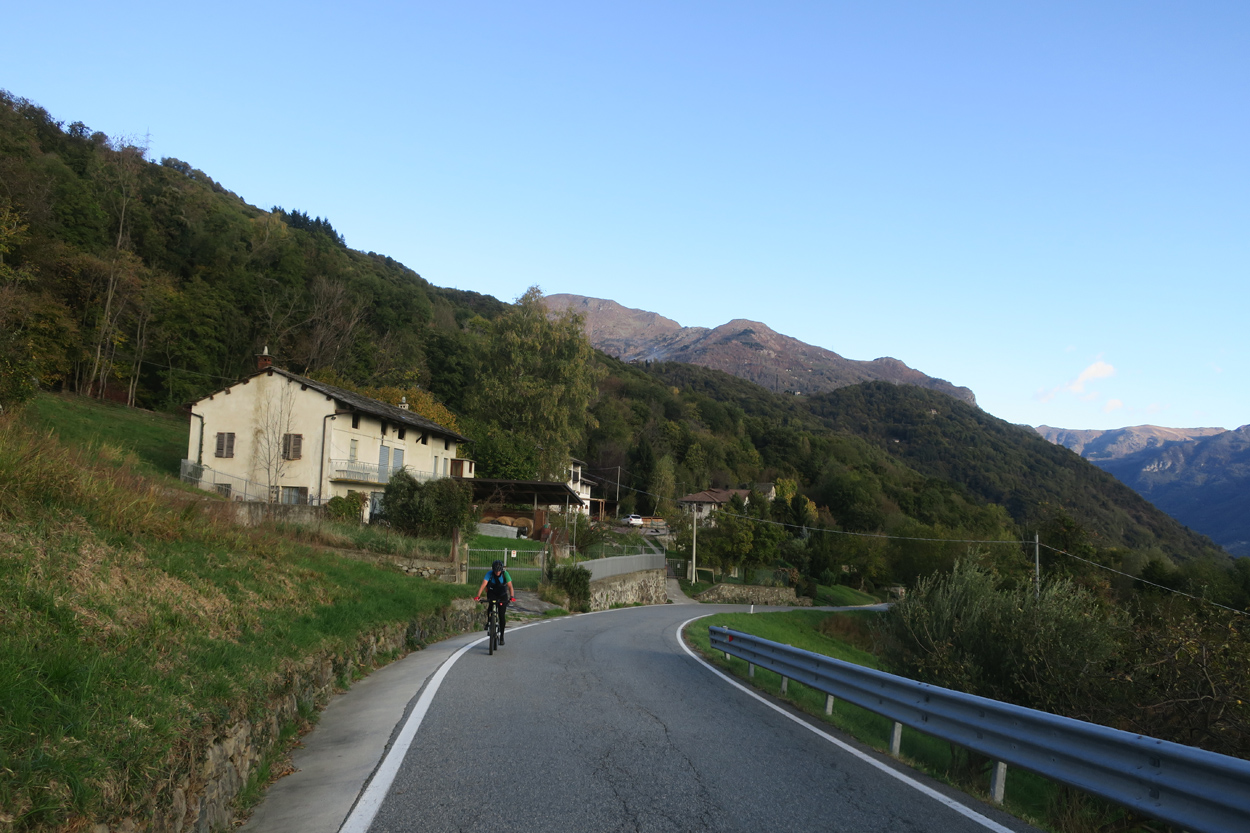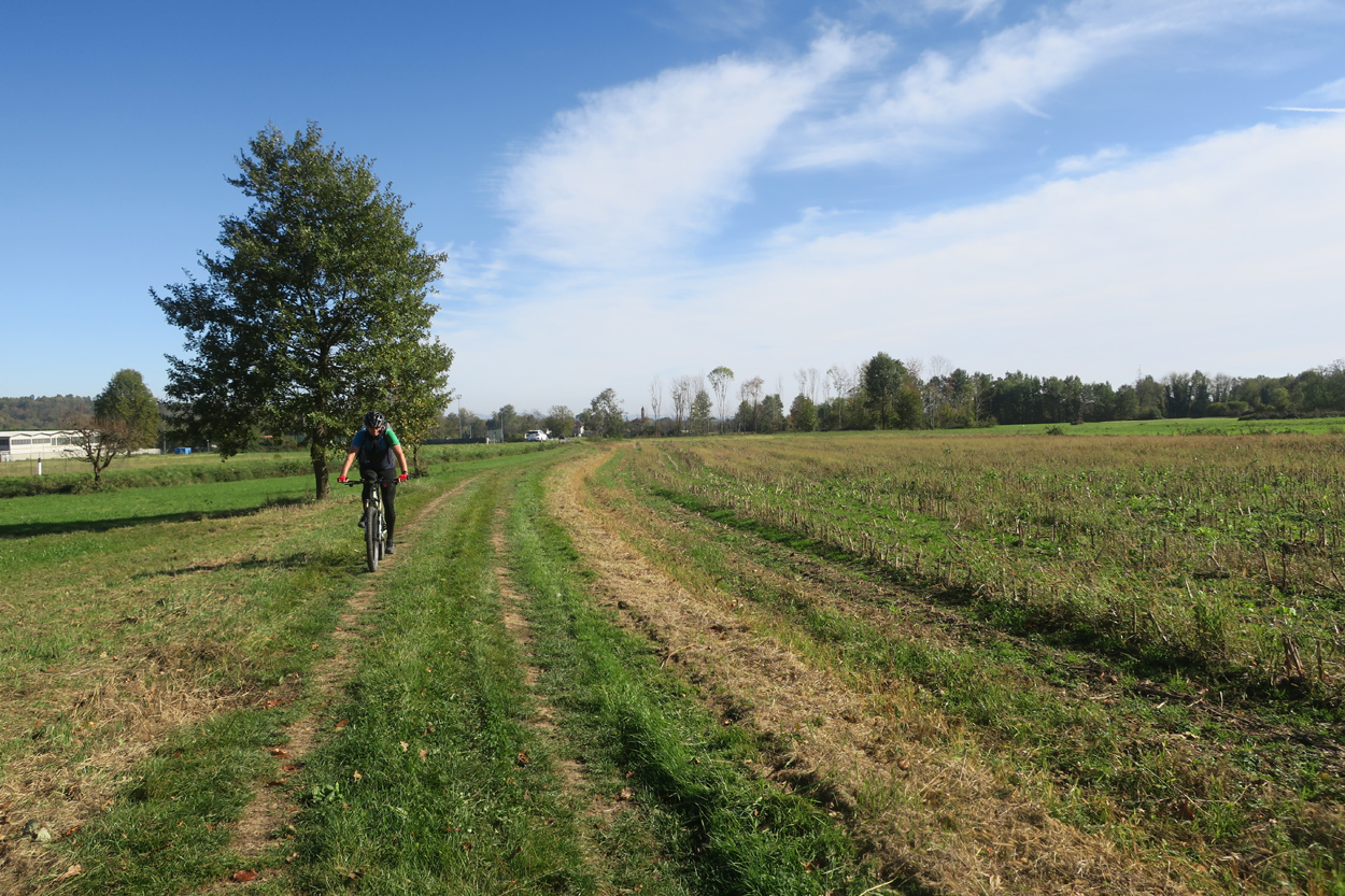Für heute morgen konnten wir uns im B&B aushandeln, dass wir das Frühstück schon um 6:30 bekamen. Etwa um 7:15 Uhr waren wir dann startbereit. Im ersten Teil des heutigen Tages ging es meist über Pisten, Trails und Nebenstraßen nach Courgne. Hier kamen wir dann etwa um 11 Uhr an und schauten noch das schöne Stadtzentrum an. Danach ging es flach weiter im Hinterland von Turin. Kurz vor 13 Uhr musste ich dann noch eine Platte beklagen. Während ich die Platte flickte, konnte sich mein Kollege etwas mit Proviant verpflegen. Etwa um 15Uhr waren wir dann am Rande des Valle di Susa. Hier wurde dann das Gelände wieder gebirgiger und wir konnten dem Berghang entlang in Richtung Almese fahren. Etwa um 16Uhr waren wir dann in Sant Abrogio di Torino. Hier wollten wir uns dann ein Hotel in der Ortschaft Giaveno buchen. Doch leider war dort nichts verfügbar. Somit machten wir dann etwas früher als vorgesehen, am Lago Grande di Avigliana Feierabend. Im Hotel Chalet del Lago Avigliana bekam wir dann ein Zimmer mit Seeblick. Der Preis für 100 EUR miteinander war dafür völlig OK. Dafür war das Restaurant eher teuer. Aber mit einer Zusatzportion Pommes-Frites, konnten wir unseren Kalorienbedarf dann trotzdem decken