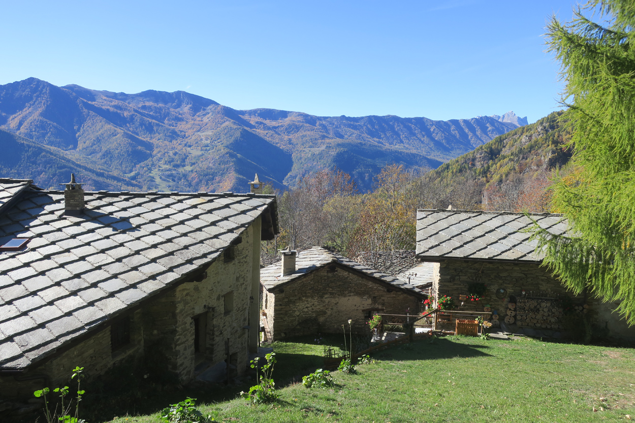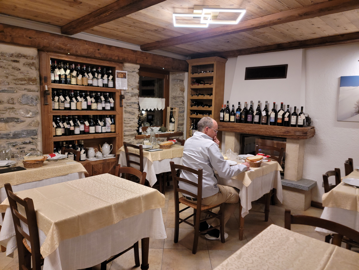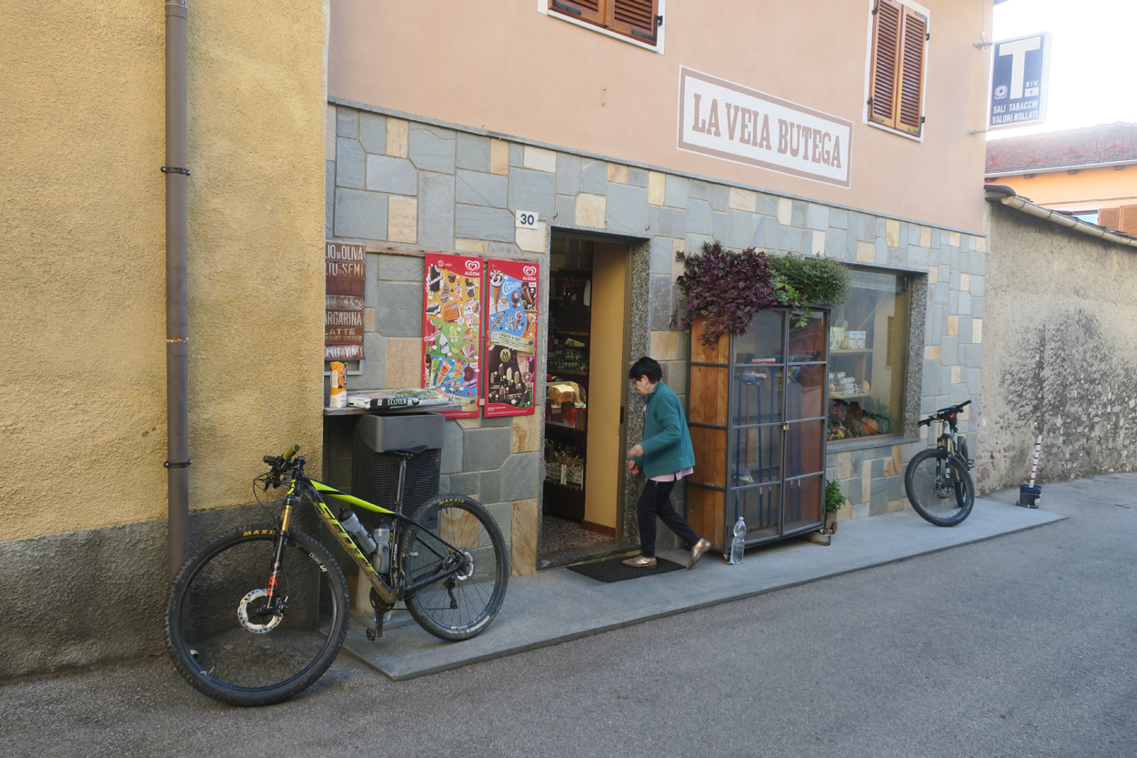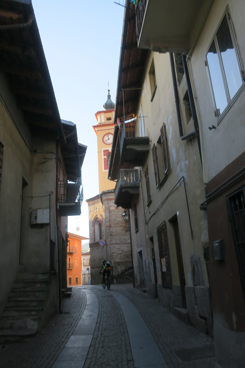 Heute Morgen durften wir schon um 6.30Uhr ans sehr gute Frühstücksbüffet. Etwa um 7:15Uhr starteten wir dann. Zuerst ging es mehr oder weniger flach über Paesana nach Sanfort. In der Ortschaft Robella konnten wir dann noch in einem Dorfladen Saft kaufen. Etwa um 8 Uhr begannen wir dann in Sanfort mit dem Aufstieg über San Bernardo und den Colle di Gilba zum Colle delle Prete. Den Colle del Prete auf 1716m ü M, erreichten wir dann kurz vor 11Uhr auf einer schönen Naturstrasse. Ab hier folgte dann die Piste dem Hang entlang zum Weiler Rua hinunter. Den letzten Teil der Abfahrt nach Sampeyre machten wir dann auf einem Trail. Etwa um 11.40 hatten wir dann Sampeyre erreicht. Hier kaufte ich dann noch etwas Saft in einem Laden. Fürs Mittagessen fanden wir dann in der Nähe des Hauptplatzes sogar noch ein offenes Restaurant wo wir ein gutes Mittagsmenü für 15€ genießen konnten. Etwa um 13Uhr begannen wir dann mit dem gut 1300hm umfassenden Aufstieg zum Colle Sampeyre. Etwa um 15.30Uhr hatten wir dann diesen Übergang ins Valle Maira auf 2284m erreicht. Nach einen Fotoshooting mit der grandiosen Landschaft, begann dann eine ebenso grandiose Trailabfahrt nach Stroppo im Talgrund des Valle Mairas. Zum Abschluss des Tages standen dann nochmals 200hm Aufstieg nach Marmora an. Kurz vor Einbruch der Dunkelheit, erreichten wir dann um 17.40Uhr, die wunderschöne Pensione Ceaglio. Hier bekamen wir ein gutes Zimmer und konnten danach ein 8-gängiges Abendessen genießen. Bei fast jedem Gang wurde noch nachgeschöpft. Schlussendlich aß ich mich mit den guten Sachen so voll, das ich kaum mehr gehen konnte