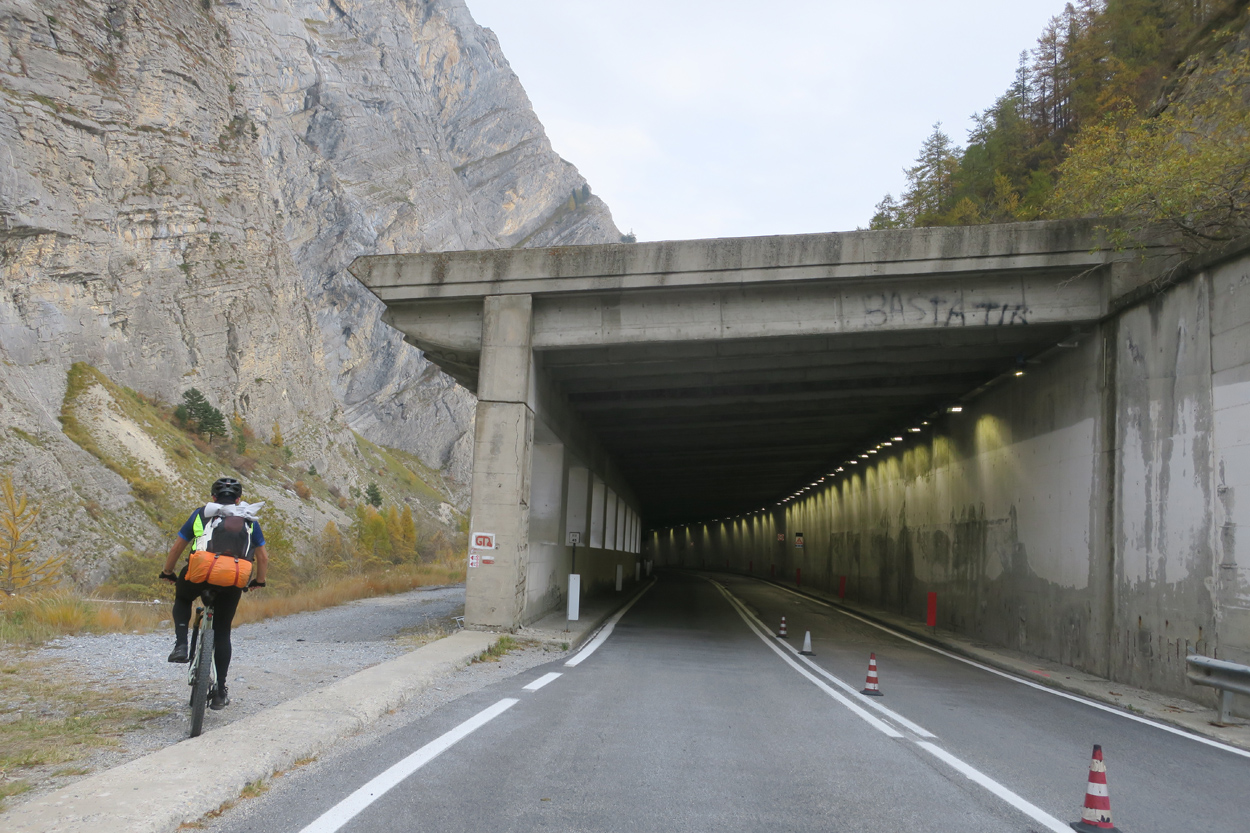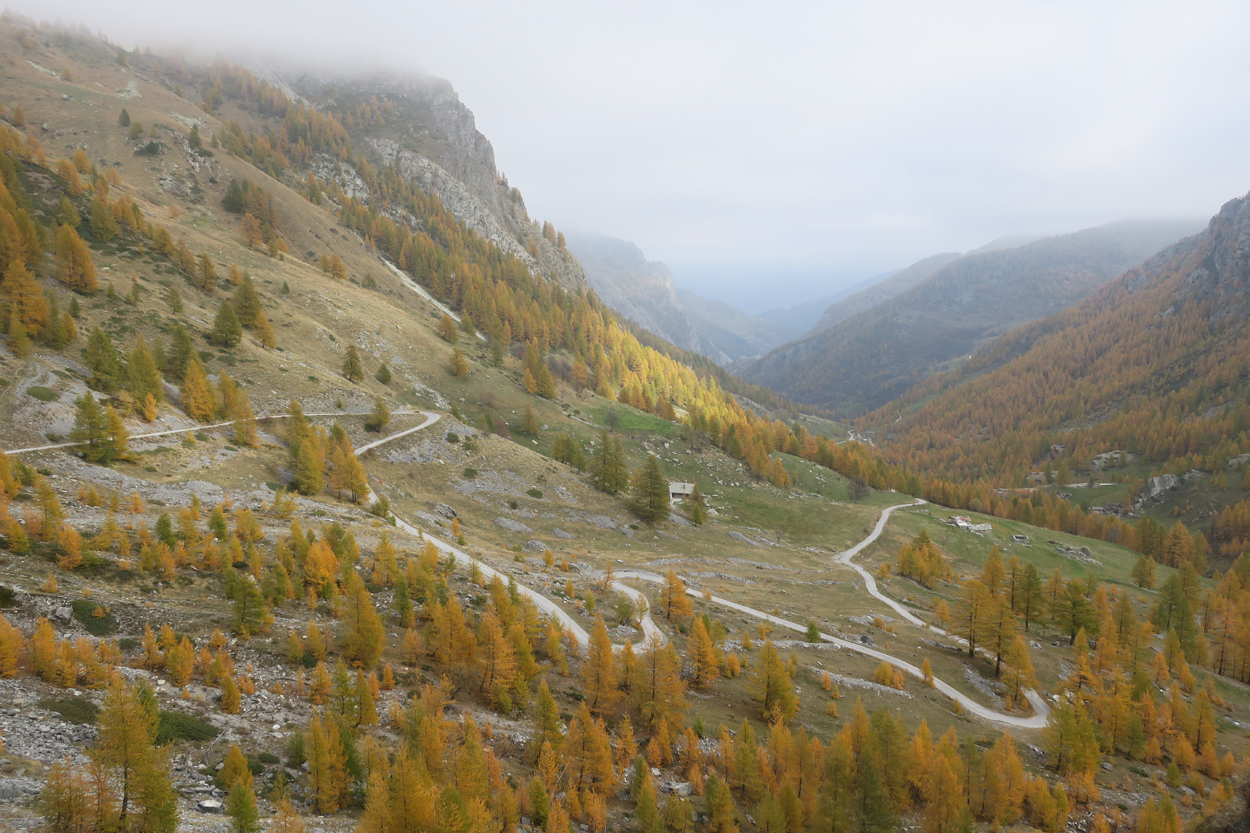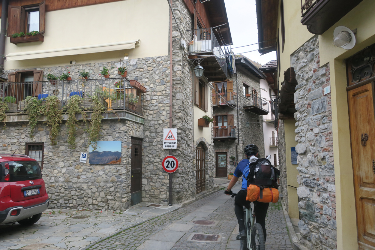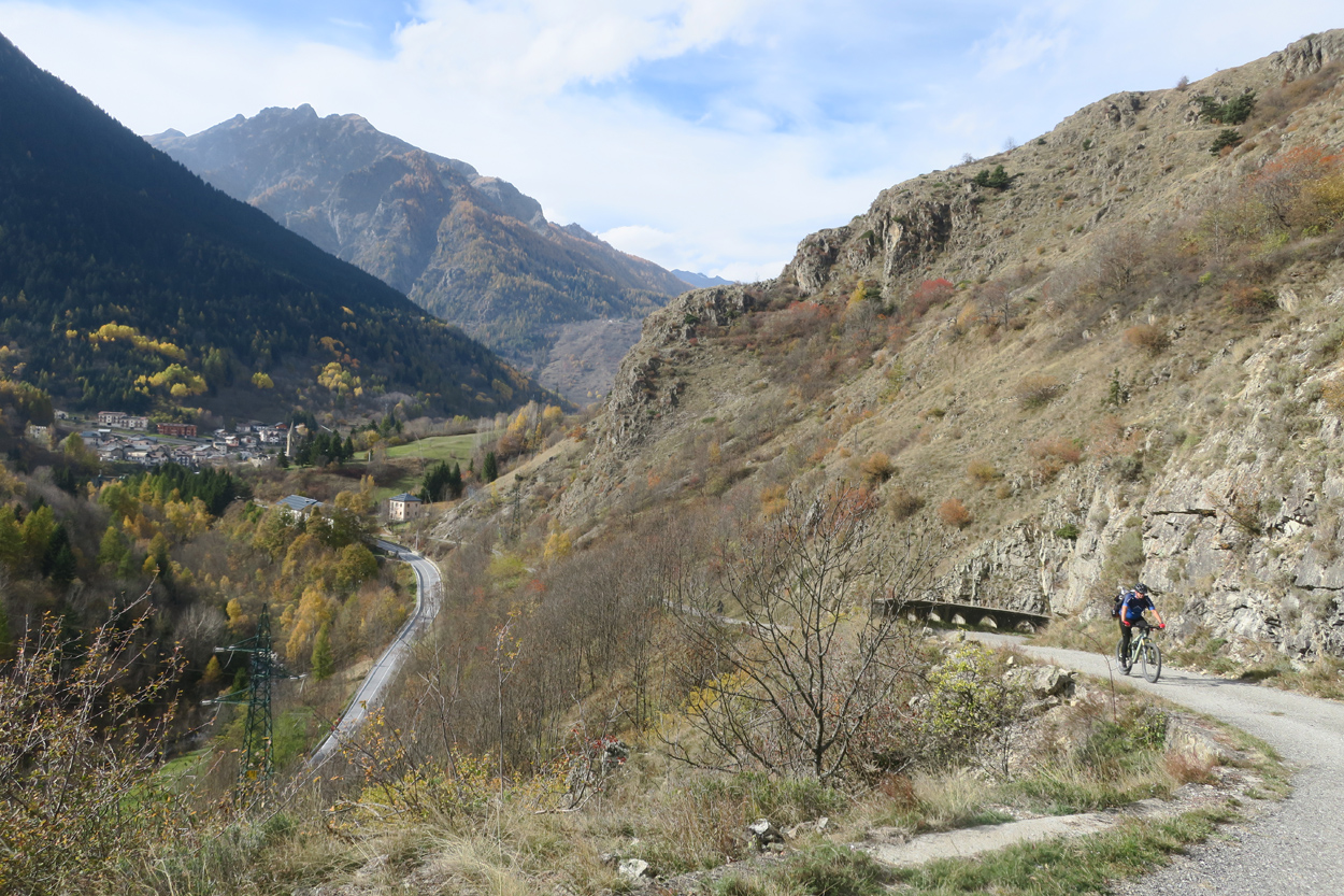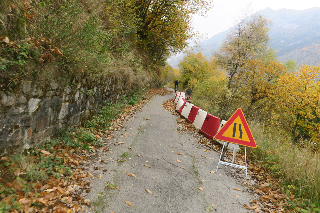 Heute Morgen gab es um 7.30Uhr ein kleines aber sehr gutes Frühstücksbüffet. Etwa um 8.30Uhr waren wir dann startbereit. im Gegensatz zu den letzten Tagen war der Himmel heute wolkenverhangen. Nach einer kurzen Besichtigung des Dörfchens Marmora und einer ganz kurzen Abfahrt begann dann der etwa 1400hm umfassende Aufstieg zur Gardetta Hichebene und zum Passo di Roccia Branca. Etwa auf 2000m ü M lichteten sich dann die Wolken und die Sonne kam zum Vorschein. Der Wegabschnitt vom Passo della Gardetta bis zum Passo di Rocca Brancia war im Gegensatz zu früher in sehr gutem Zustand so dass wir alles fahren konnten. Ziemlich genau zur Mittagszeit (12Uhr) hatten wir dann die Passhöhe erreicht. Da hier auf 2620m ein kalter Wind wehte, zogen wir noch mehr Kleider an. Wenig später machten wir dann an einem sonnigen und windgeschützen Plätzchen unsere Mittagspause und vesperten die Brötchen welche wir von unserer Unterkunft, der Pensione Ceaglio bekommen hatten. Etwa um 13.15Uhr war dann die lange und tolle Trailabfahrt unterhalb von Bersezio zu Ende. Aber auch ab hier ging es dann auf einer Bikeroute abseits der Hauptstrasse nach Sambucco weiter. Sambucco erreichten wir dann um 14Uhr. Leider war hier das Bikehotel Osteria del Pace schon in der Winterpause. So setzten wir dann die Fahrt auf dem Radweg ins knapp 50km entfernte Cuneo fort. Leider verschlechterte sich dann das Wetter relativ schnell. Aber wir hatten das Glück dass wir nur ein paar Tropfen abbekamen und somit gegen 16.30Uhr noch trocken die 50'000Einwohner Metropole Cuneo erreichten. Hier deckten wir uns dann noch mit Proviant für die Heimreise ein. Pünktlich um 17.24Uhr fuhr dann unser Regio-Express Zug in Richtung Torino ab.