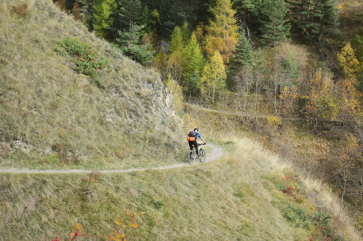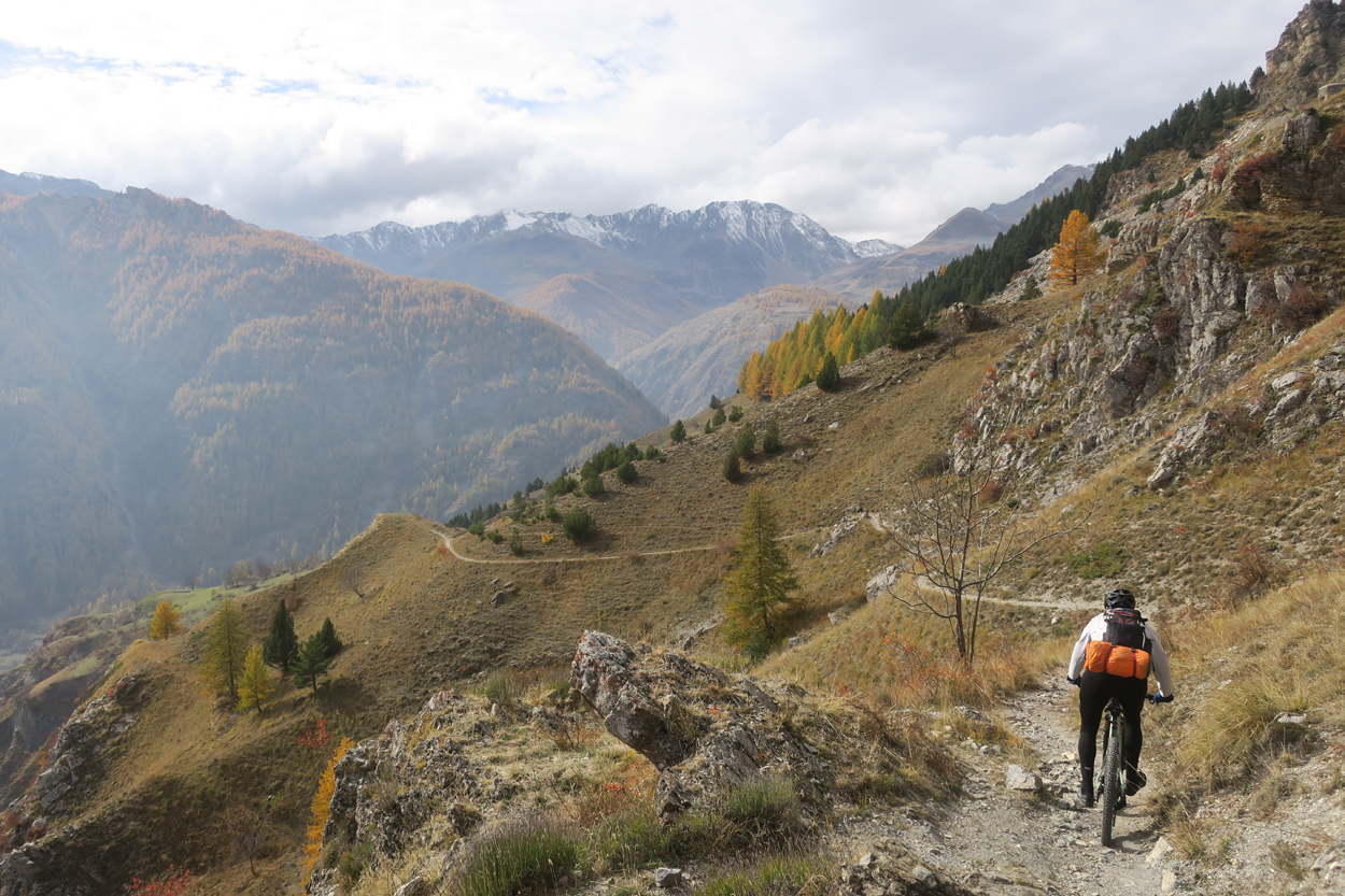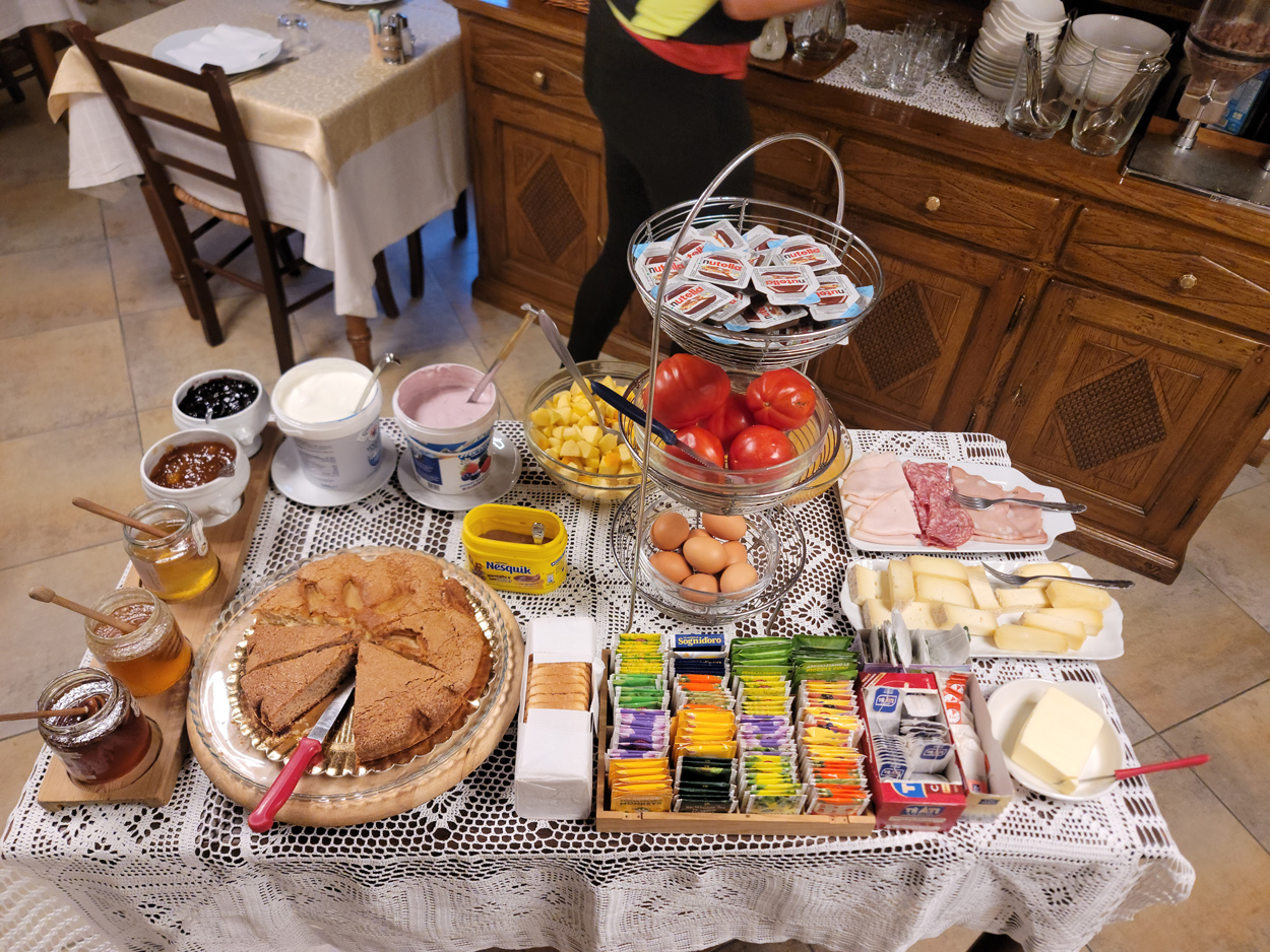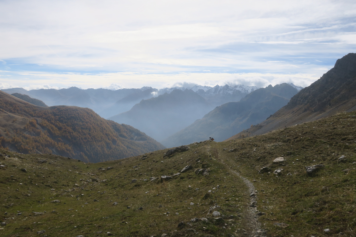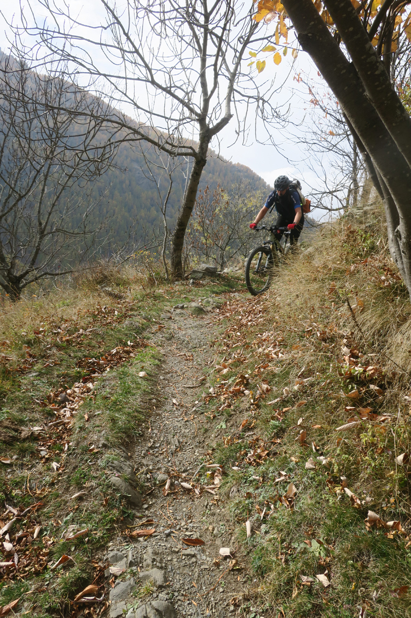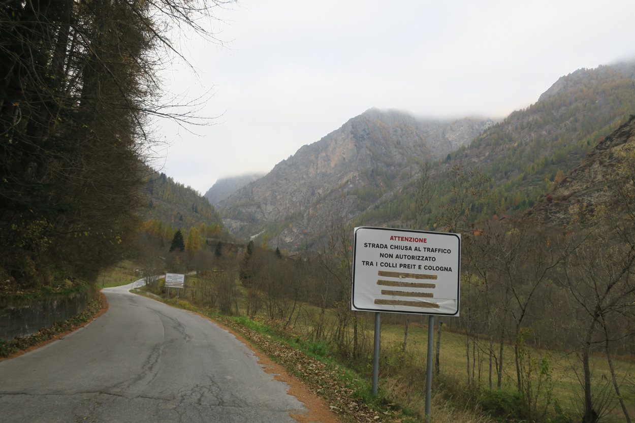 Heute Morgen gab es um 7.30Uhr ein kleines aber sehr gutes Frühstücksbüffet. Etwa um 8.30Uhr waren wir dann startbereit. im Gegensatz zu den letzten Tagen war der Himmel heute wolkenverhangen. Nach einer kurzen Besichtigung des Dörfchens Marmora und einer ganz kurzen Abfahrt begann dann der etwa 1400hm umfassende Aufstieg zur Gardetta Hichebene und zum Passo di Roccia Branca. Etwa auf 2000m ü M lichteten sich dann die Wolken und die Sonne kam zum Vorschein. Der Wegabschnitt vom Passo della Gardetta bis zum Passo di Rocca Brancia war im Gegensatz zu früher in sehr gutem Zustand so dass wir alles fahren konnten. Ziemlich genau zur Mittagszeit (12Uhr) hatten wir dann die Passhöhe erreicht. Da hier auf 2620m ein kalter Wind wehte, zogen wir noch mehr Kleider an. Wenig später machten wir dann an einem sonnigen und windgeschützen Plätzchen unsere Mittagspause und vesperten die Brötchen welche wir von unserer Unterkunft, der Pensione Ceaglio bekommen hatten. Etwa um 13.15Uhr war dann die lange und tolle Trailabfahrt unterhalb von Bersezio zu Ende. Aber auch ab hier ging es dann auf einer Bikeroute abseits der Hauptstrasse nach Sambucco weiter. Sambucco erreichten wir dann um 14Uhr. Leider war hier das Bikehotel Osteria del Pace schon in der Winterpause. So setzten wir dann die Fahrt auf dem Radweg ins knapp 50km entfernte Cuneo fort. Leider verschlechterte sich dann das Wetter relativ schnell. Aber wir hatten das Glück dass wir nur ein paar Tropfen abbekamen und somit gegen 16.30Uhr noch trocken die 50'000Einwohner Metropole Cuneo erreichten. Hier deckten wir uns dann noch mit Proviant für die Heimreise ein. Pünktlich um 17.24Uhr fuhr dann unser Regio-Express Zug in Richtung Torino ab.