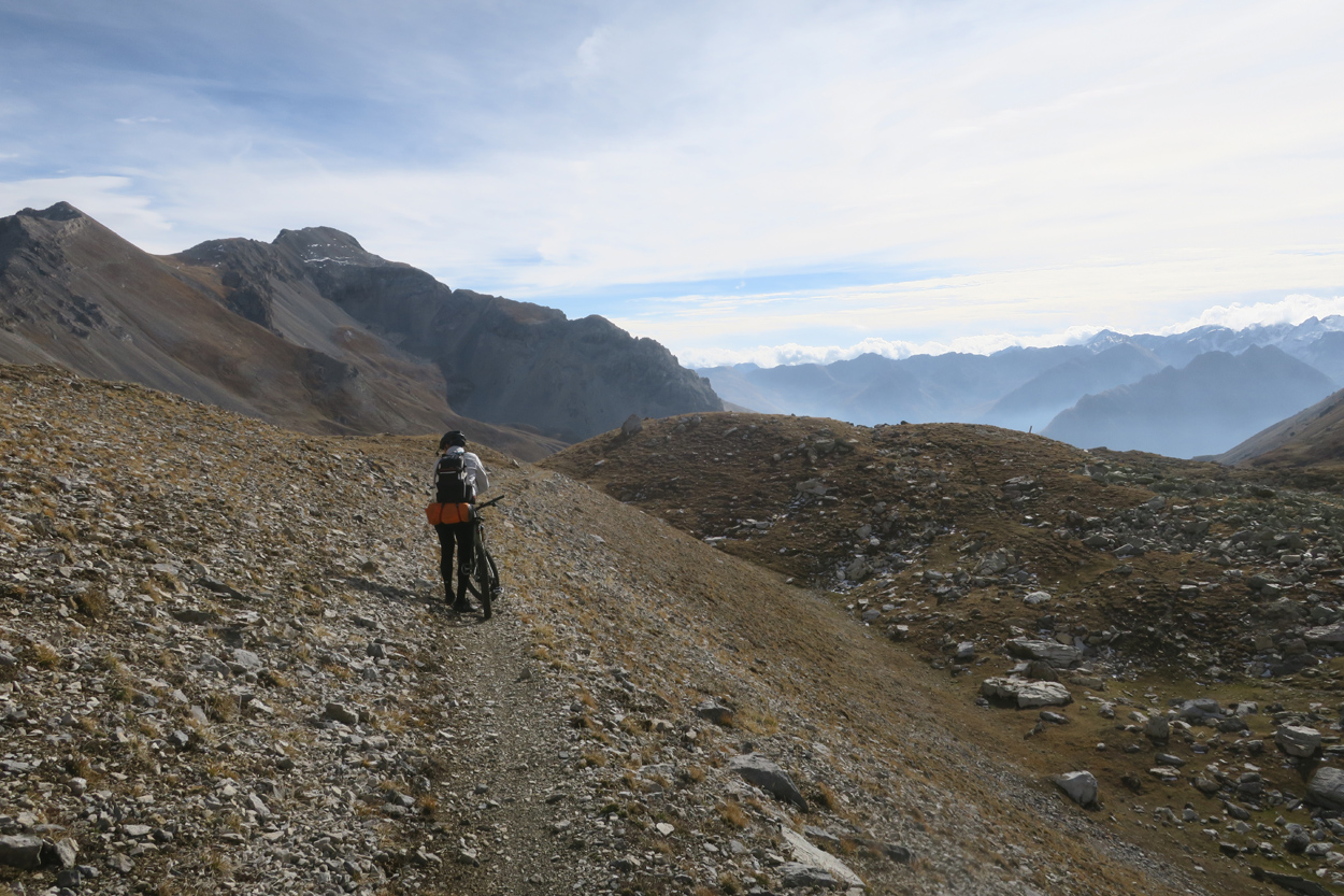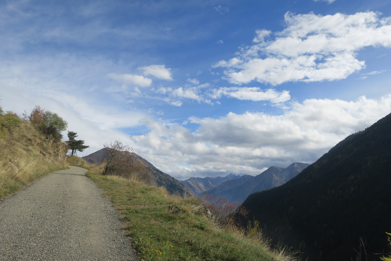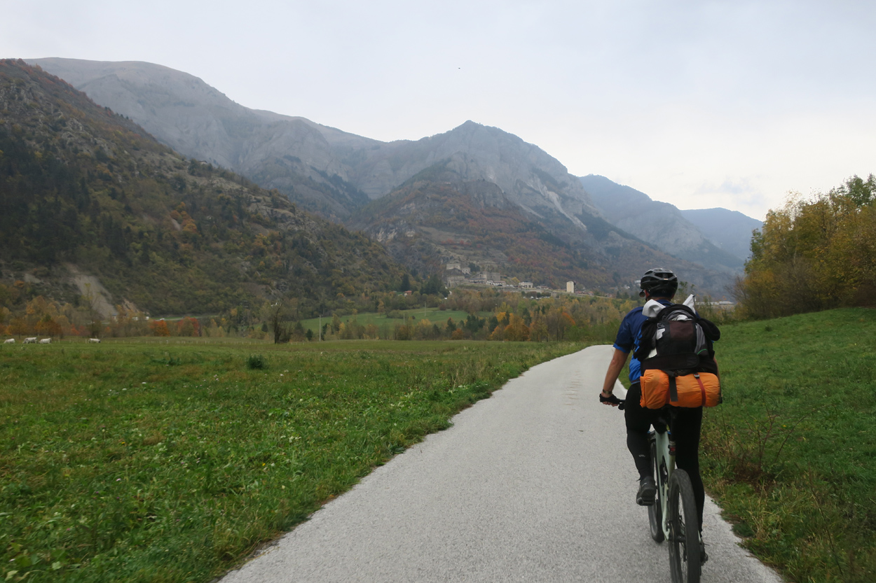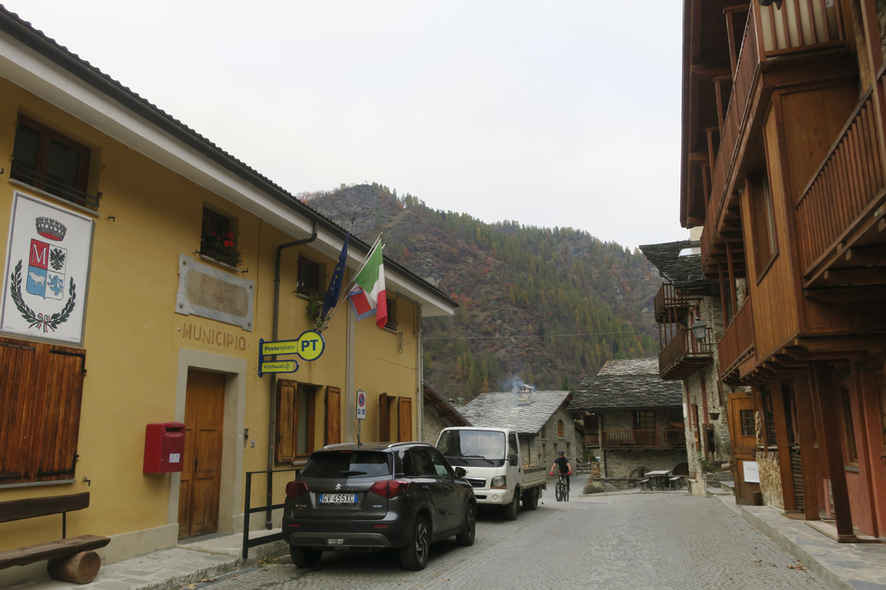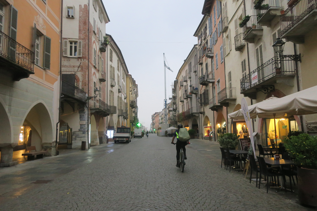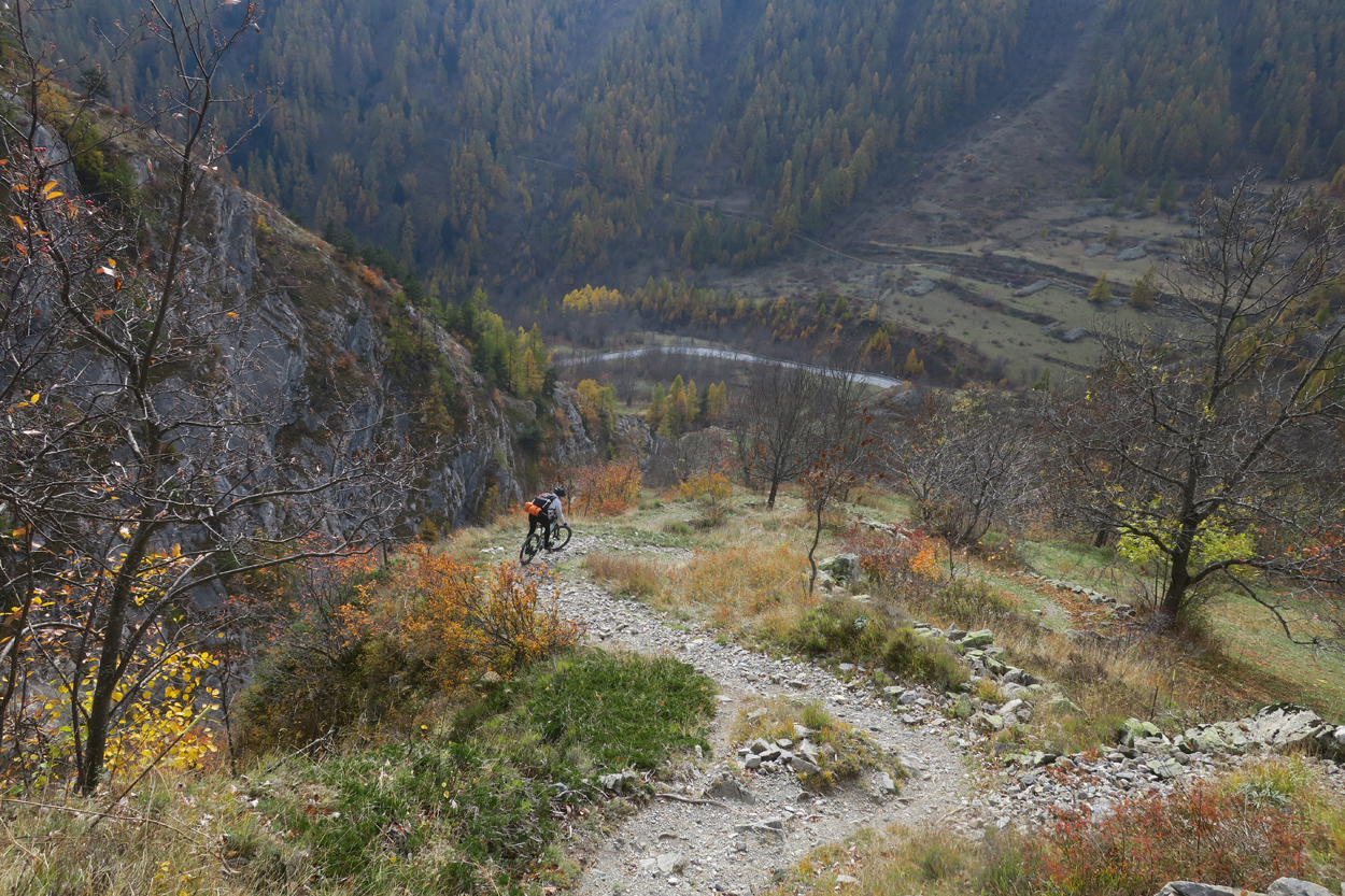Heute Morgen gab es um 7.30Uhr ein kleines aber sehr gutes Frühstücksbüffet. Etwa um 8.30Uhr waren wir dann startbereit. im Gegensatz zu den letzten Tagen war der Himmel heute wolkenverhangen. Nach einer kurzen Besichtigung des Dörfchens Marmora und einer ganz kurzen Abfahrt begann dann der etwa 1400hm umfassende Aufstieg zur Gardetta Hichebene und zum Passo di Roccia Branca. Etwa auf 2000m ü M lichteten sich dann die Wolken und die Sonne kam zum Vorschein. Der Wegabschnitt vom Passo della Gardetta bis zum Passo di Rocca Brancia war im Gegensatz zu früher in sehr gutem Zustand so dass wir alles fahren konnten. Ziemlich genau zur Mittagszeit (12Uhr) hatten wir dann die Passhöhe erreicht. Da hier auf 2620m ein kalter Wind wehte, zogen wir noch mehr Kleider an. Wenig später machten wir dann an einem sonnigen und windgeschützen Plätzchen unsere Mittagspause und vesperten die Brötchen welche wir von unserer Unterkunft, der Pensione Ceaglio bekommen hatten. Etwa um 13.15Uhr war dann die lange und tolle Trailabfahrt unterhalb von Bersezio zu Ende. Aber auch ab hier ging es dann auf einer Bikeroute abseits der Hauptstrasse nach Sambucco weiter. Sambucco erreichten wir dann um 14Uhr. Leider war hier das Bikehotel Osteria del Pace schon in der Winterpause. So setzten wir dann die Fahrt auf dem Radweg ins knapp 50km entfernte Cuneo fort. Leider verschlechterte sich dann das Wetter relativ schnell. Aber wir hatten das Glück dass wir nur ein paar Tropfen abbekamen und somit gegen 16.30Uhr noch trocken die 50'000Einwohner Metropole Cuneo erreichten. Hier deckten wir uns dann noch mit Proviant für die Heimreise ein. Pünktlich um 17.24Uhr fuhr dann unser Regio-Express Zug in Richtung Torino ab.
