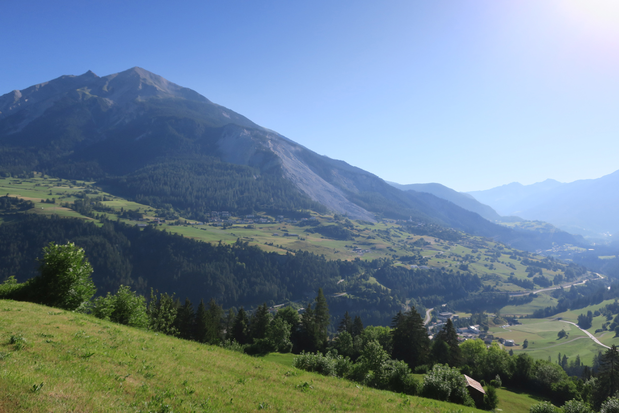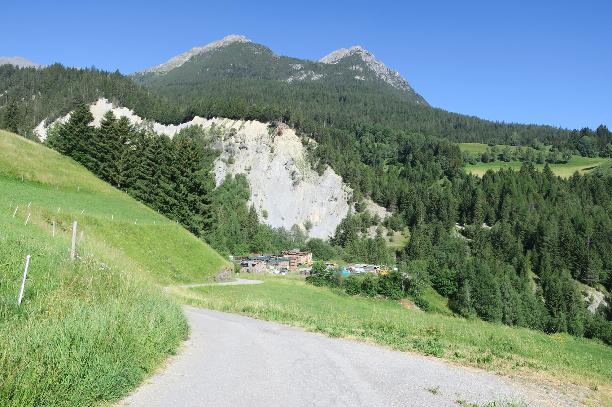 im Aufstieg von Tiefencastel nach Mon, Blick auf den Bergsturz von Brienz