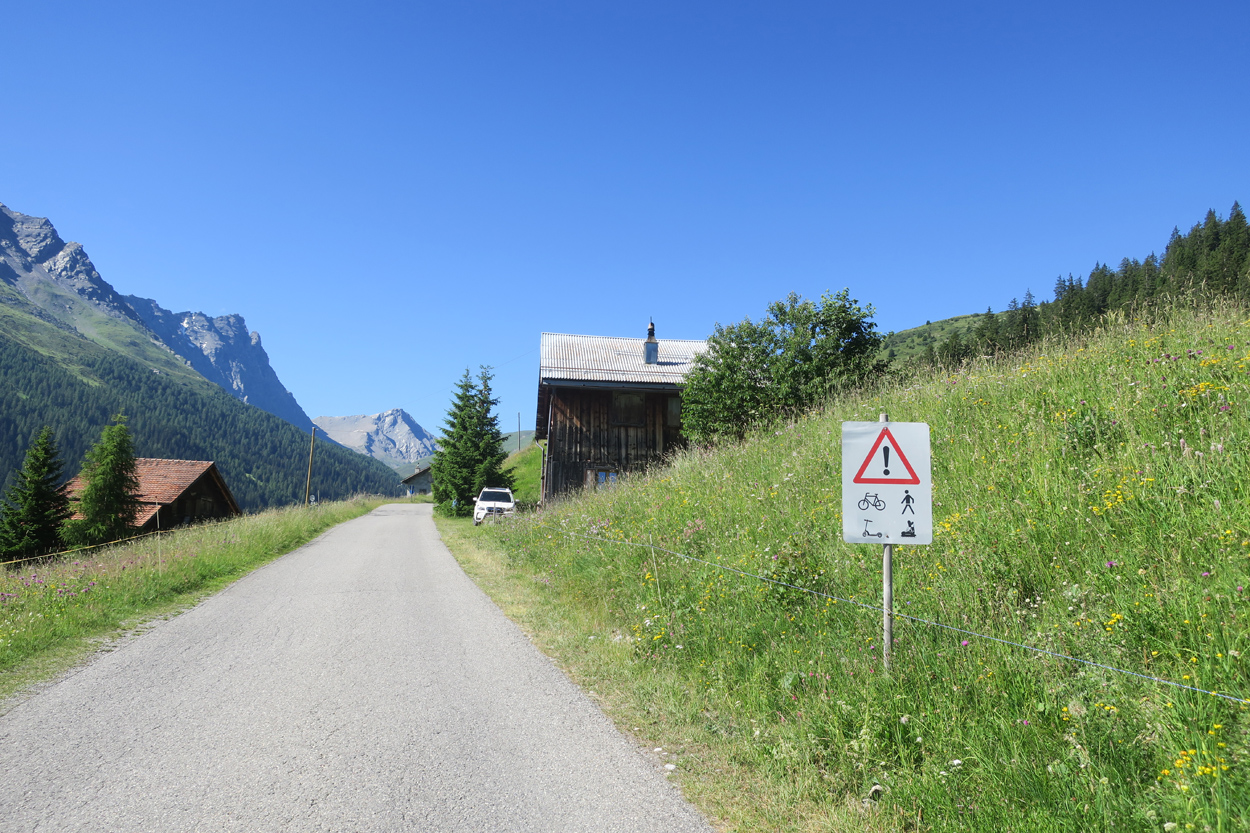 Naturstrasse nach Davos Frauenkirch hinunter. Nach etwa 2 bis 3 flachen