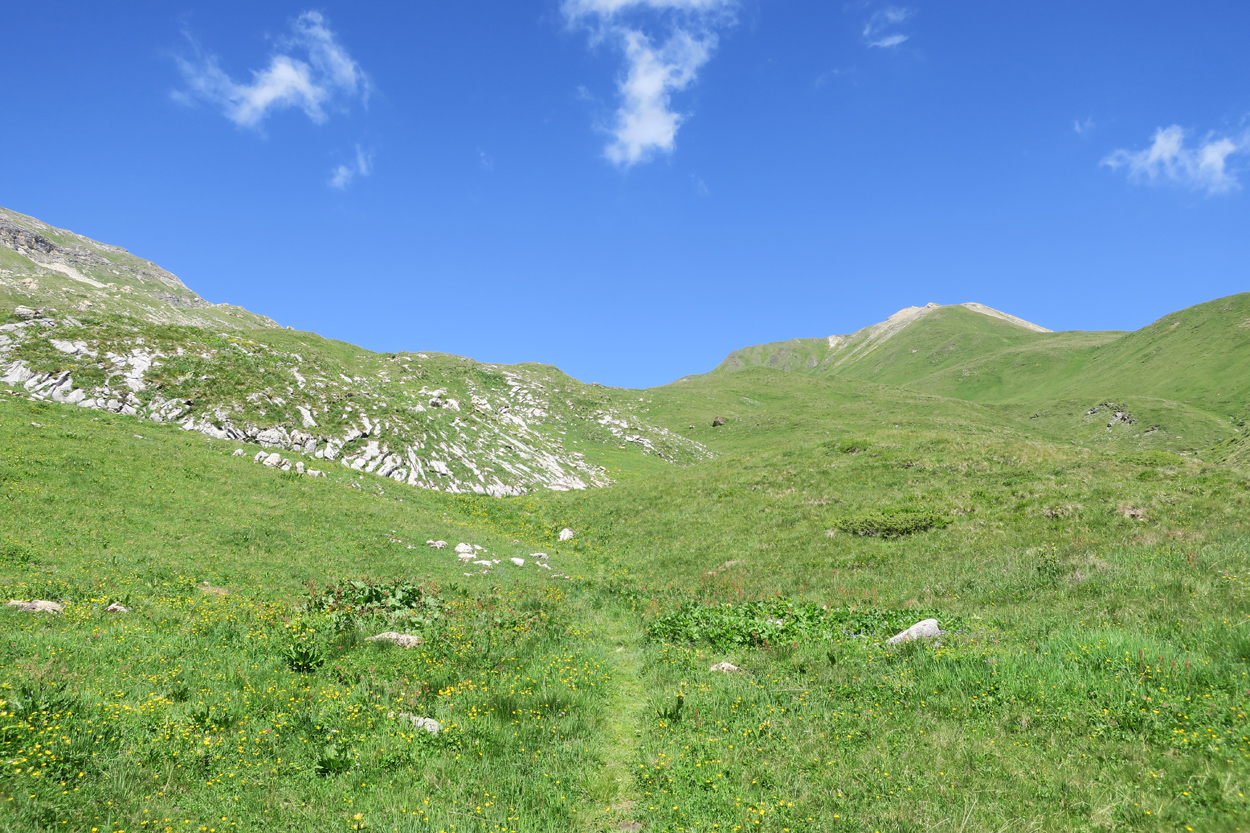 Durannapass. Der este Teil des Aufstieges von 800hm bis zur Alp Ober Rasitsch