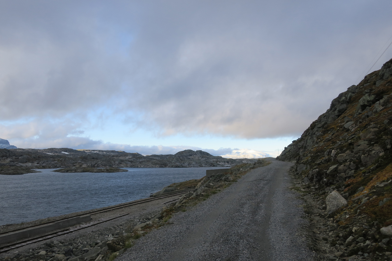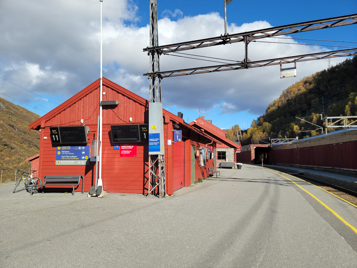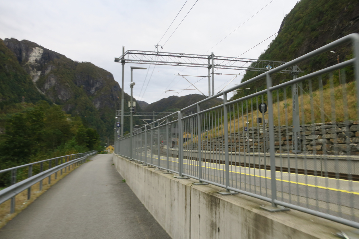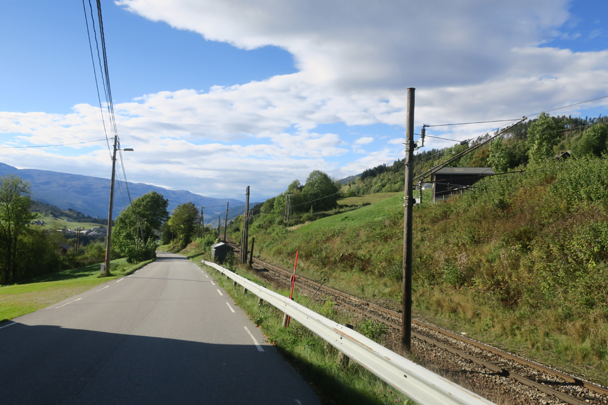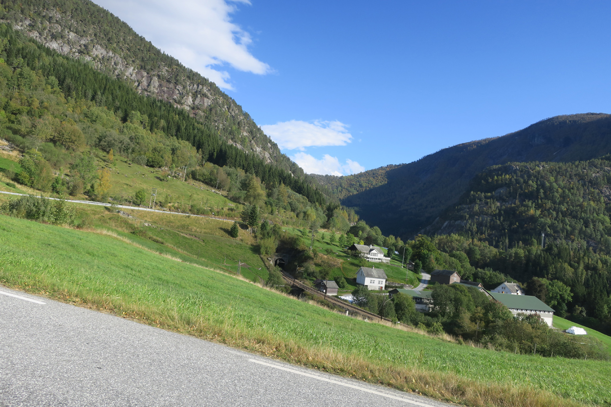 Heute Morgen gab es um 7Uhr ein wunderbares Frühstücksbüffet. Kurz noch 8Uhr Checkte ich dann im Hotel aus und durfte dabei auch noch ein Lunchsäckli in Empfang nehmen. Als ich dann startete war es etwa 5°C warm und der Himmel noch bedeckt. Es wehte aber ein zügiger Rückenwind. Nun ging es von 1222m noch bis knapp 1350m ü M hinauf. Auf dieser weltbekannten Rallervegen Radroute fuhr ich dann hinunter bis Myrdal, was etwa 37km waren. Die Radroute würde von hier noch an den Flåmfjord hinunter führen, doch von dort würde ich nicht in Richtung Bergen kommen. Also entschied ich mich hier die Bahnstation aufzusuchen. Nach etwa 40min warten, fuhr dann um 11.52 der erste Zug von heute, der nach dem Tunnel in Upsete hielt. Der Zug fuhr auch pünktlich und um 12Uhr ging es dann anfänglich von der Bahnstation Upsete auf einem Karrenweg bis Ørneberget und dann auf der als Radweg ausgeschilderten Straße nach Voss. Die Alternative wäre gewesen 3Stunden über den Pass zu Laufen In Voss kaufte ich dann noch Saft. Danach führte meine Route etwas oberhalb von einem See bis Bulken. Hier begann dann der Aufstieg zum Hamlagrøvatnet See auf gut 600m ü M. Dort kam ich dann gegen 16Uhr an. Nach einer sanften und langgezogenen Abfahrt durch ein Tal, erreichte ich dann gegen 17Uhr die Ortschaft Dale. Ab hier ganb es dann noch einen offiziellen Radweg bis Stanghelle am Fjord. Ab dort gab es dann leider nur noch die Transitstrasse E16 wo Fahrradfahren verboten war. Einheimische Passanten, die ich um Rat fragte, empfahlen mir hier für die nächsten 15km den Zug zu nehmen. Doch der war gerade abgefahren und der nächste wäre erst um 20Uhr gefolgt. Ich entschied mich daher doch die Transitstrasse zu nehmen. Zum Glück gab es dann nach 6km Alternativen. Am Schluss zwischen Vaksdal und Trangereid befuhr ich dann noch das alte Bahntrasse mit etlichen Tunnels und zum Teil noch dem original Bahnschotter So um 19.15Uhr, wenige Minuten vor Sonnenuntergang erreichte ich dann Trengereid. Hier sah ich auf Booking.com, dass es wenigstens ein Appartement hier geben soll. Ich konnte dann die Unterkunft, welche noch keinen Google Maps Eintrag hat ausfindig machen. Die Besitzer war zwar etwas überrumpelt von mir, da sie die Betten nach den Gästen der letzten Nacht noch nicht hergerichtet hatten und die Wohnung noch nicht geputzt hatten. Aber ich durfte trotzdem hier bleiben. Die nächste Unterkunft wäre nämlich erst in 25bis 30km Entfernung zu finden gewesen und zu Regnen begann es auch noch. Da ich außer Brot nichts essbares mehr hatte, brachten Sie mir noch Nudeln, Leberkonserve, Tomatensauce, Frischkäse, Milch und Brot. Ich war ihnen dafür sehr dankbar. Bezahlt hatte ich dann 100€. Ob es noch norwegisches Bargeld gibt wusste ich nicht. Denn es wird hier sonst nur mit Karte bezahlt