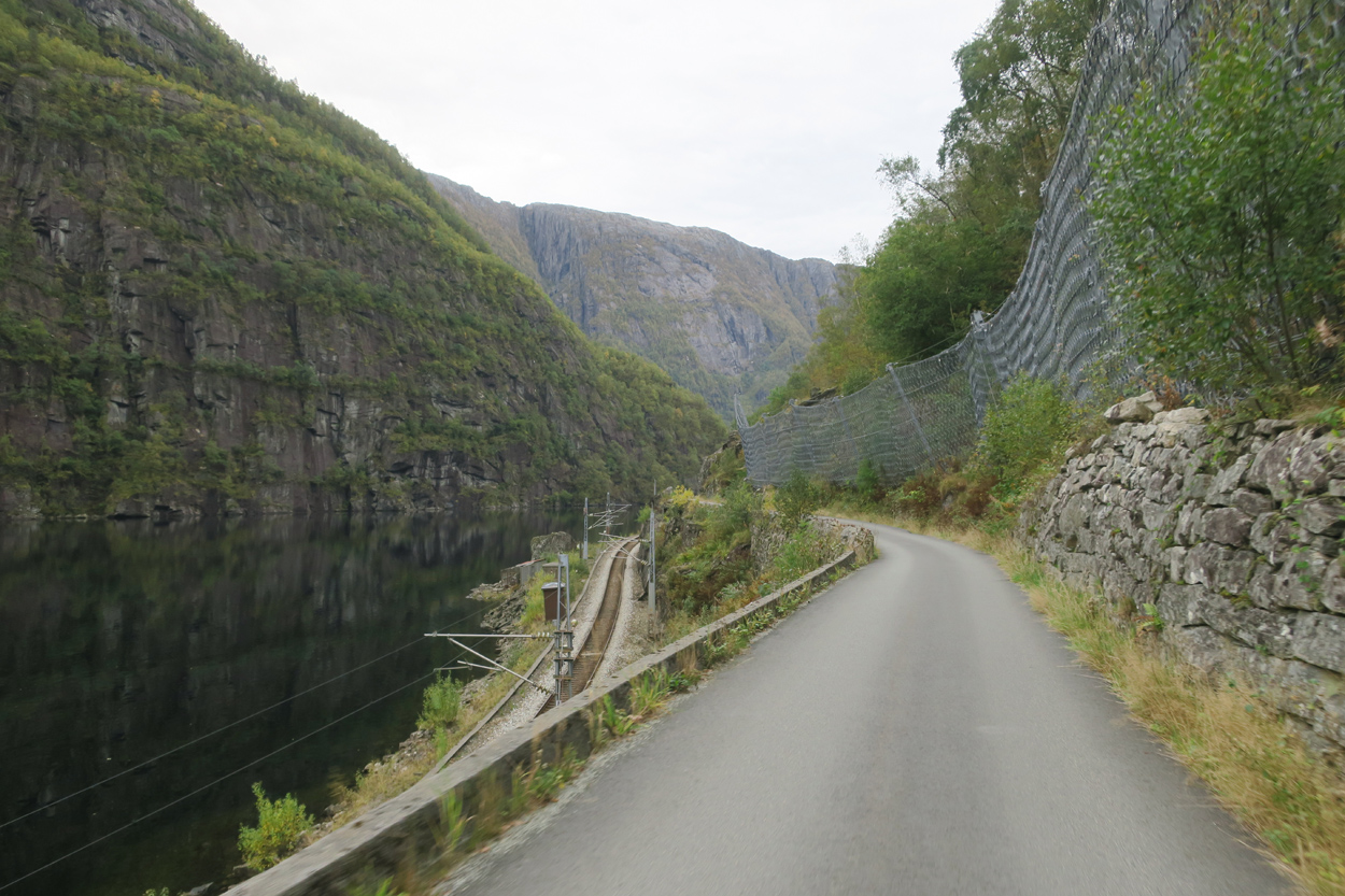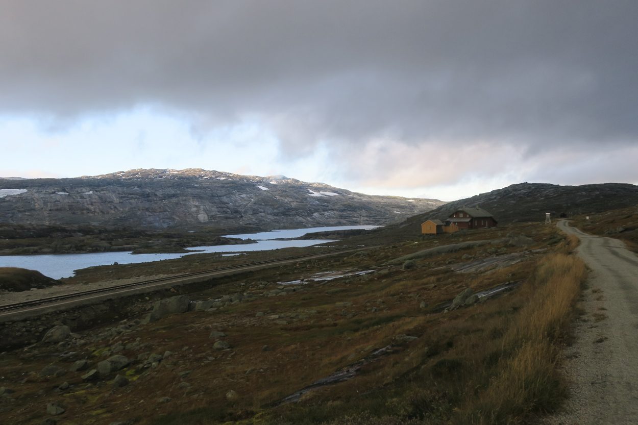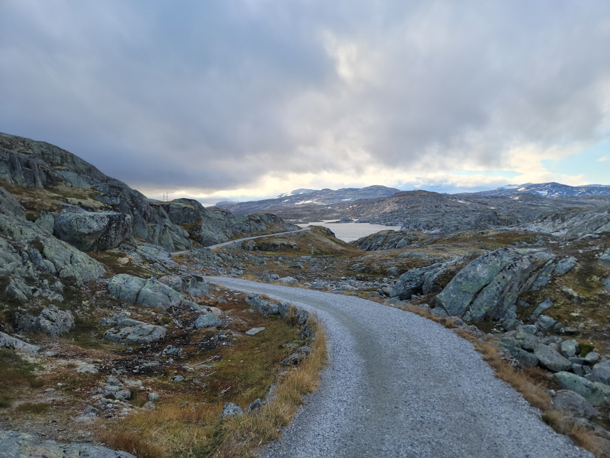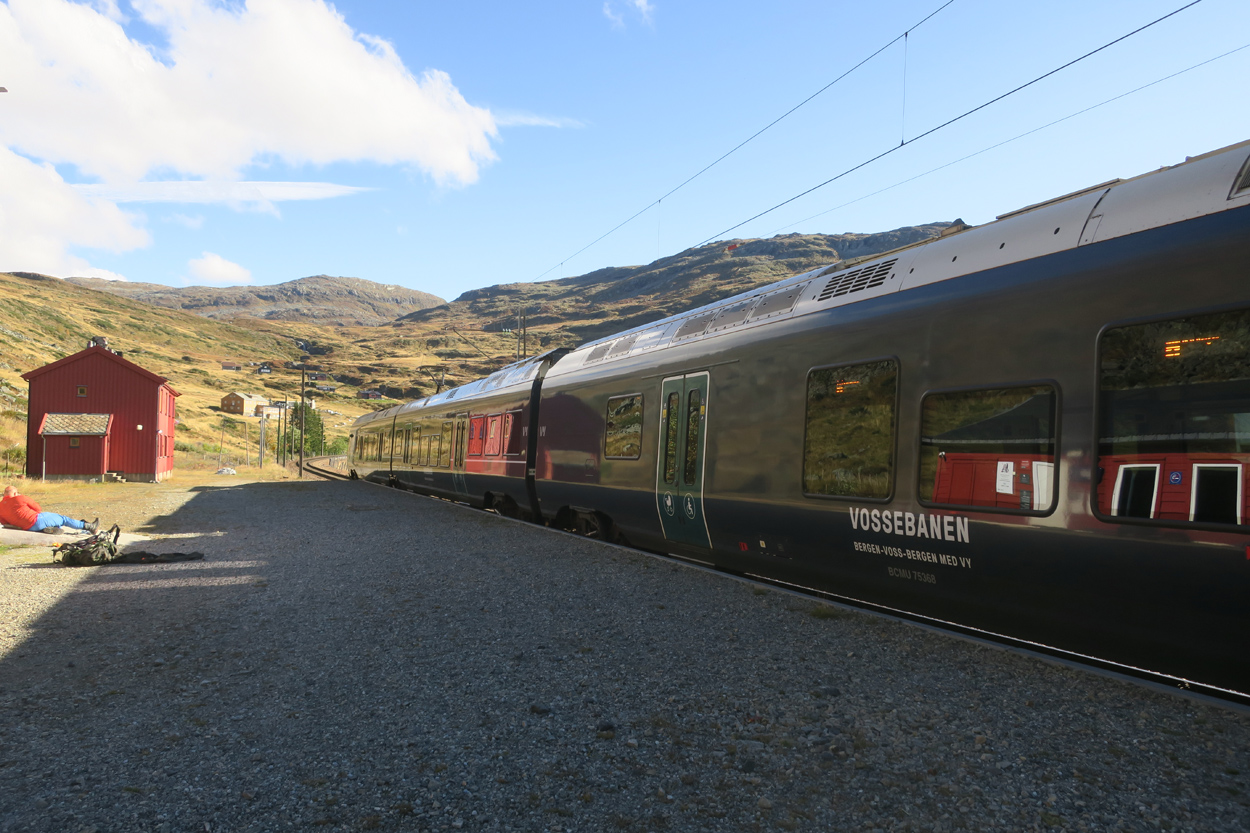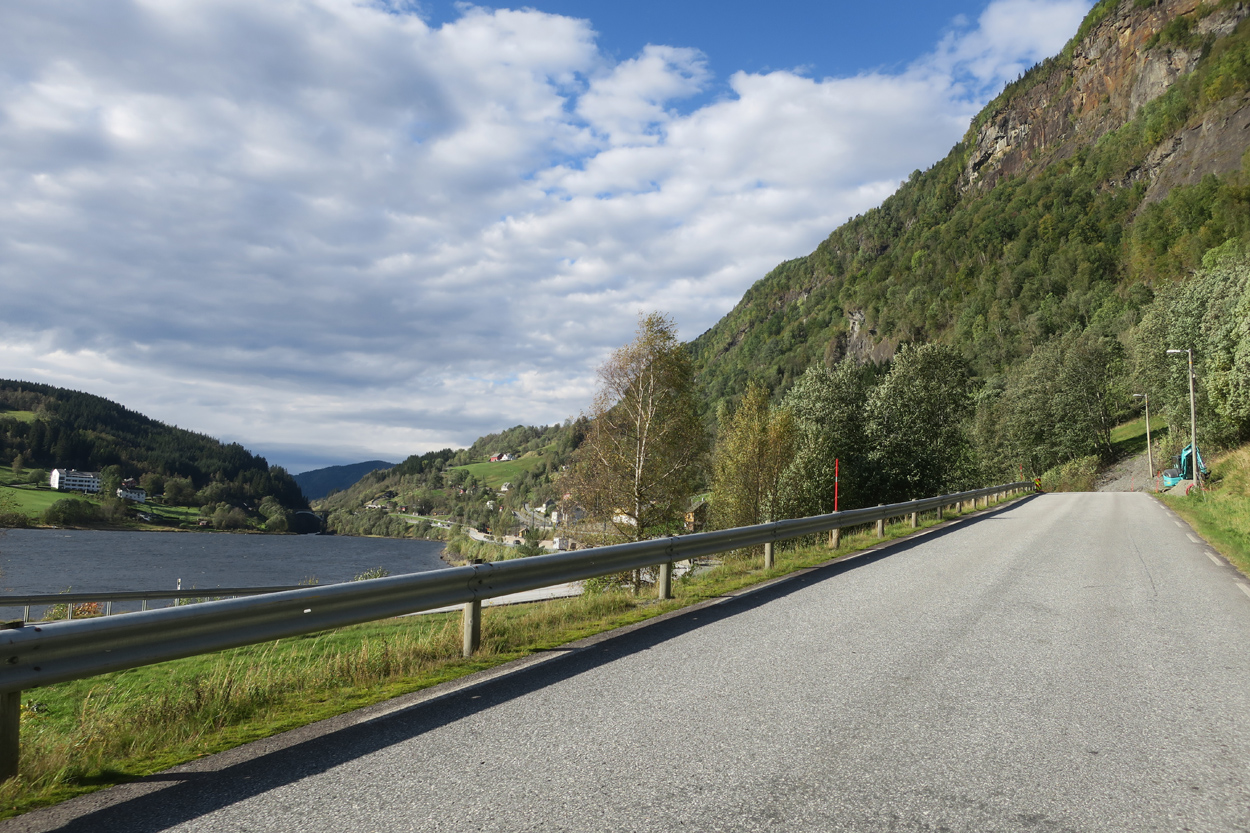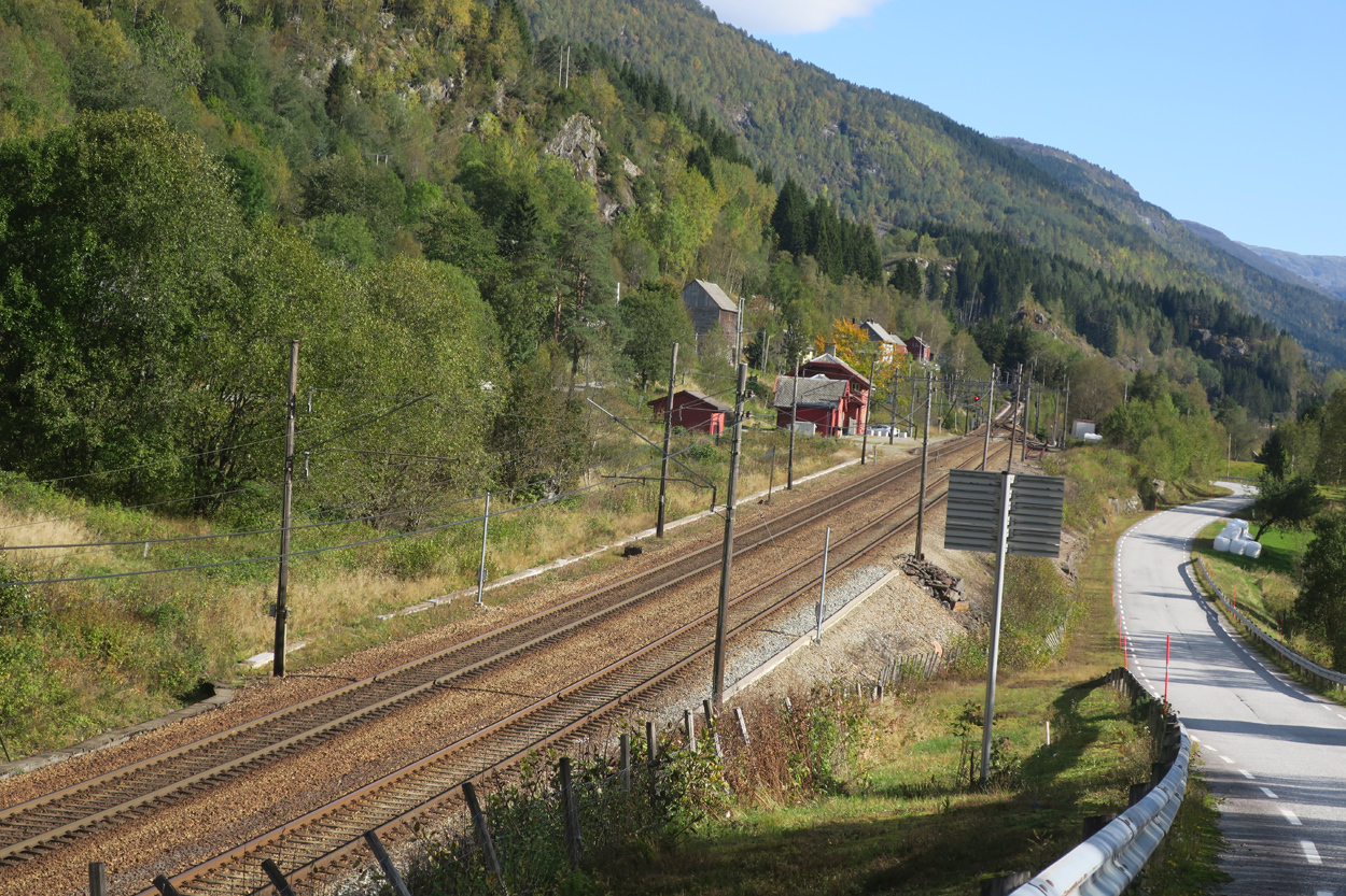 Heute Morgen gab es um 7Uhr ein wunderbares Frühstücksbüffet. Kurz noch 8Uhr Checkte ich dann im Hotel aus und durfte dabei auch noch ein Lunchsäckli in Empfang nehmen. Als ich dann startete war es etwa 5°C warm und der Himmel noch bedeckt. Es wehte aber ein zügiger Rückenwind. Nun ging es von 1222m noch bis knapp 1350m ü M hinauf. Auf dieser weltbekannten Rallervegen Radroute fuhr ich dann hinunter bis Myrdal, was etwa 37km waren. Die Radroute würde von hier noch an den Flåmfjord hinunter führen, doch von dort würde ich nicht in Richtung Bergen kommen. Also entschied ich mich hier die Bahnstation aufzusuchen. Nach etwa 40min warten, fuhr dann um 11.52 der erste Zug von heute, der nach dem Tunnel in Upsete hielt. Der Zug fuhr auch pünktlich und um 12Uhr ging es dann anfänglich von der Bahnstation Upsete auf einem Karrenweg bis Ørneberget und dann auf der als Radweg ausgeschilderten Straße nach Voss. Die Alternative wäre gewesen 3Stunden über den Pass zu Laufen In Voss kaufte ich dann noch Saft. Danach führte meine Route etwas oberhalb von einem See bis Bulken. Hier begann dann der Aufstieg zum Hamlagrøvatnet See auf gut 600m ü M. Dort kam ich dann gegen 16Uhr an. Nach einer sanften und langgezogenen Abfahrt durch ein Tal, erreichte ich dann gegen 17Uhr die Ortschaft Dale. Ab hier ganb es dann noch einen offiziellen Radweg bis Stanghelle am Fjord. Ab dort gab es dann leider nur noch die Transitstrasse E16 wo Fahrradfahren verboten war. Einheimische Passanten, die ich um Rat fragte, empfahlen mir hier für die nächsten 15km den Zug zu nehmen. Doch der war gerade abgefahren und der nächste wäre erst um 20Uhr gefolgt. Ich entschied mich daher doch die Transitstrasse zu nehmen. Zum Glück gab es dann nach 6km Alternativen. Am Schluss zwischen Vaksdal und Trangereid befuhr ich dann noch das alte Bahntrasse mit etlichen Tunnels und zum Teil noch dem original Bahnschotter So um 19.15Uhr, wenige Minuten vor Sonnenuntergang erreichte ich dann Trengereid. Hier sah ich auf Booking.com, dass es wenigstens ein Appartement hier geben soll. Ich konnte dann die Unterkunft, welche noch keinen Google Maps Eintrag hat ausfindig machen. Die Besitzer war zwar etwas überrumpelt von mir, da sie die Betten nach den Gästen der letzten Nacht noch nicht hergerichtet hatten und die Wohnung noch nicht geputzt hatten. Aber ich durfte trotzdem hier bleiben. Die nächste Unterkunft wäre nämlich erst in 25bis 30km Entfernung zu finden gewesen und zu Regnen begann es auch noch. Da ich außer Brot nichts essbares mehr hatte, brachten Sie mir noch Nudeln, Leberkonserve, Tomatensauce, Frischkäse, Milch und Brot. Ich war ihnen dafür sehr dankbar. Bezahlt hatte ich dann 100€. Ob es noch norwegisches Bargeld gibt wusste ich nicht. Denn es wird hier sonst nur mit Karte bezahlt