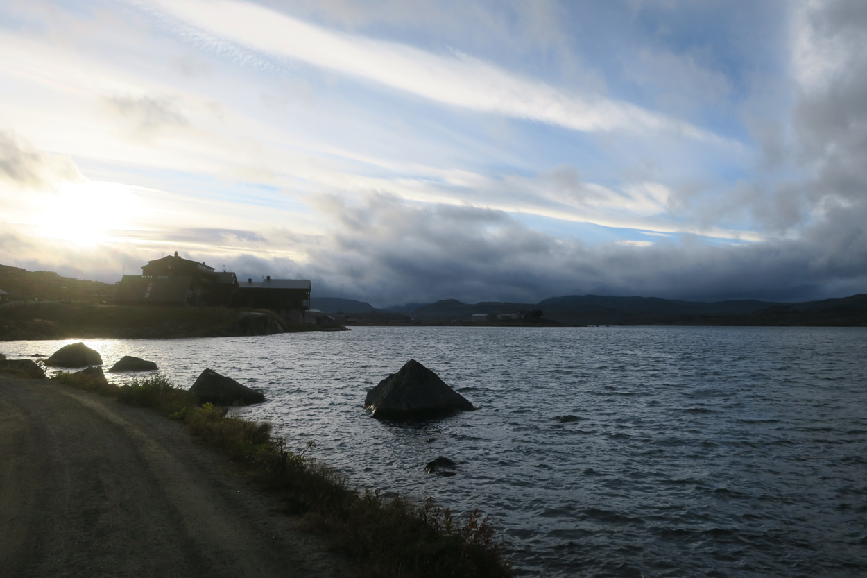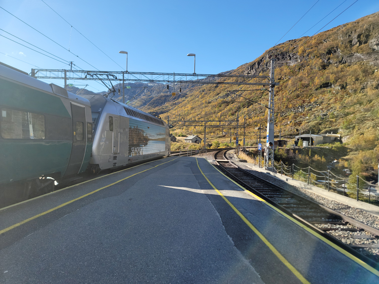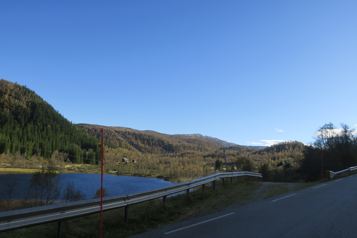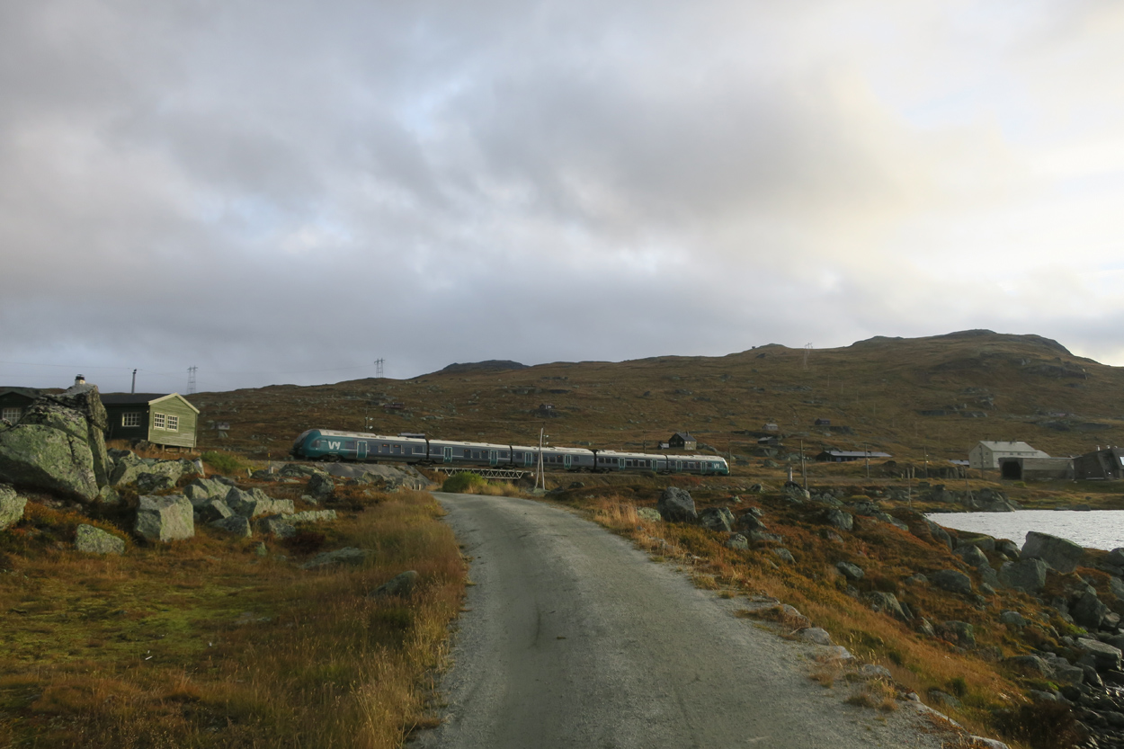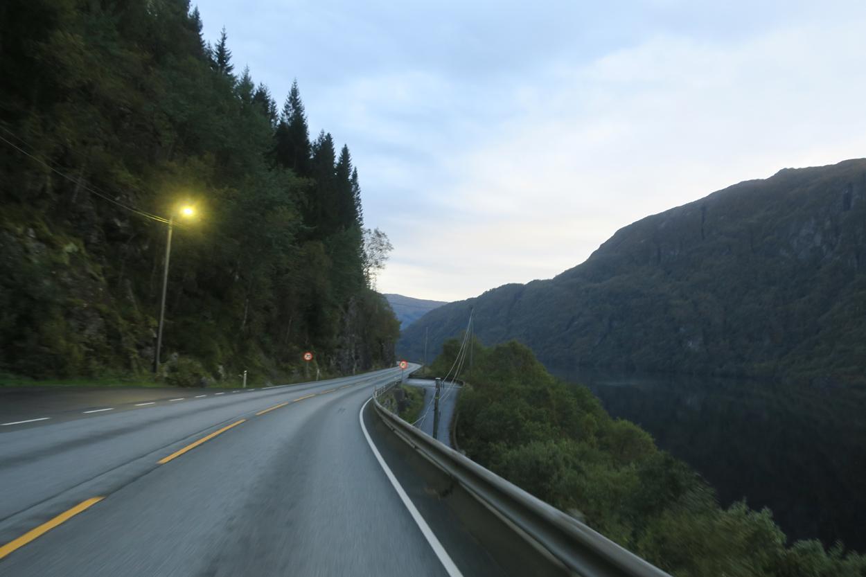 Heute Morgen gab es um 7Uhr ein wunderbares Frühstücksbüffet. Kurz noch 8Uhr Checkte ich dann im Hotel aus und durfte dabei auch noch ein Lunchsäckli in Empfang nehmen. Als ich dann startete war es etwa 5°C warm und der Himmel noch bedeckt. Es wehte aber ein zügiger Rückenwind. Nun ging es von 1222m noch bis knapp 1350m ü M hinauf. Auf dieser weltbekannten Rallervegen Radroute fuhr ich dann hinunter bis Myrdal, was etwa 37km waren. Die Radroute würde von hier noch an den Flåmfjord hinunter führen, doch von dort würde ich nicht in Richtung Bergen kommen. Also entschied ich mich hier die Bahnstation aufzusuchen. Nach etwa 40min warten, fuhr dann um 11.52 der erste Zug von heute, der nach dem Tunnel in Upsete hielt. Der Zug fuhr auch pünktlich und um 12Uhr ging es dann anfänglich von der Bahnstation Upsete auf einem Karrenweg bis Ørneberget und dann auf der als Radweg ausgeschilderten Straße nach Voss. Die Alternative wäre gewesen 3Stunden über den Pass zu Laufen In Voss kaufte ich dann noch Saft. Danach führte meine Route etwas oberhalb von einem See bis Bulken. Hier begann dann der Aufstieg zum Hamlagrøvatnet See auf gut 600m ü M. Dort kam ich dann gegen 16Uhr an. Nach einer sanften und langgezogenen Abfahrt durch ein Tal, erreichte ich dann gegen 17Uhr die Ortschaft Dale. Ab hier ganb es dann noch einen offiziellen Radweg bis Stanghelle am Fjord. Ab dort gab es dann leider nur noch die Transitstrasse E16 wo Fahrradfahren verboten war. Einheimische Passanten, die ich um Rat fragte, empfahlen mir hier für die nächsten 15km den Zug zu nehmen. Doch der war gerade abgefahren und der nächste wäre erst um 20Uhr gefolgt. Ich entschied mich daher doch die Transitstrasse zu nehmen. Zum Glück gab es dann nach 6km Alternativen. Am Schluss zwischen Vaksdal und Trangereid befuhr ich dann noch das alte Bahntrasse mit etlichen Tunnels und zum Teil noch dem original Bahnschotter So um 19.15Uhr, wenige Minuten vor Sonnenuntergang erreichte ich dann Trengereid. Hier sah ich auf Booking.com, dass es wenigstens ein Appartement hier geben soll. Ich konnte dann die Unterkunft, welche noch keinen Google Maps Eintrag hat ausfindig machen. Die Besitzer war zwar etwas überrumpelt von mir, da sie die Betten nach den Gästen der letzten Nacht noch nicht hergerichtet hatten und die Wohnung noch nicht geputzt hatten. Aber ich durfte trotzdem hier bleiben. Die nächste Unterkunft wäre nämlich erst in 25bis 30km Entfernung zu finden gewesen und zu Regnen begann es auch noch. Da ich außer Brot nichts essbares mehr hatte, brachten Sie mir noch Nudeln, Leberkonserve, Tomatensauce, Frischkäse, Milch und Brot. Ich war ihnen dafür sehr dankbar. Bezahlt hatte ich dann 100€. Ob es noch norwegisches Bargeld gibt wusste ich nicht. Denn es wird hier sonst nur mit Karte bezahlt