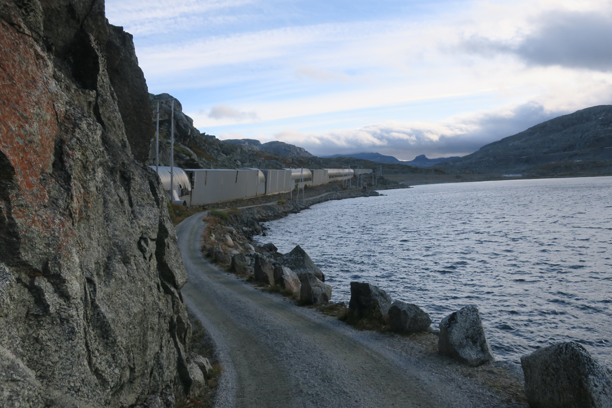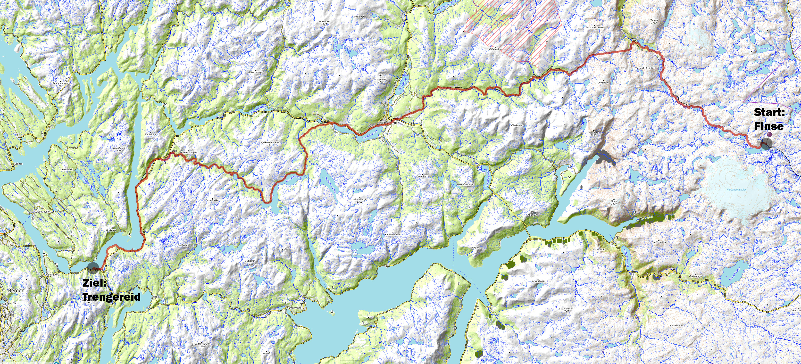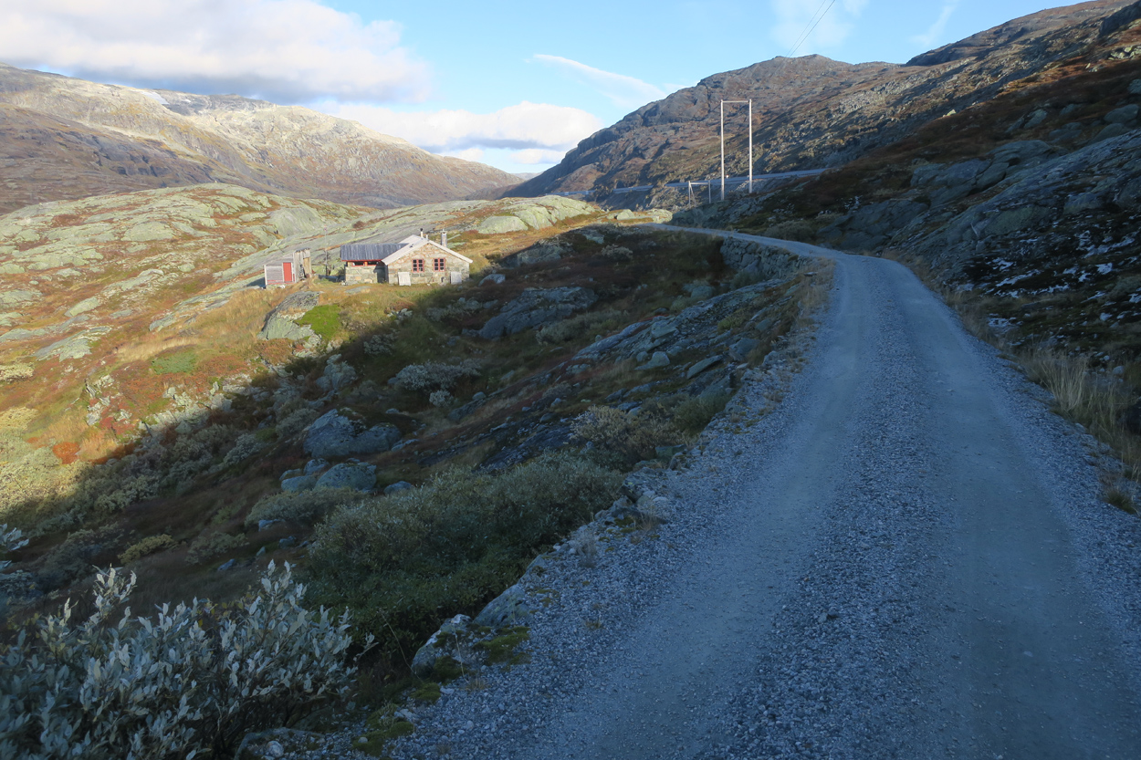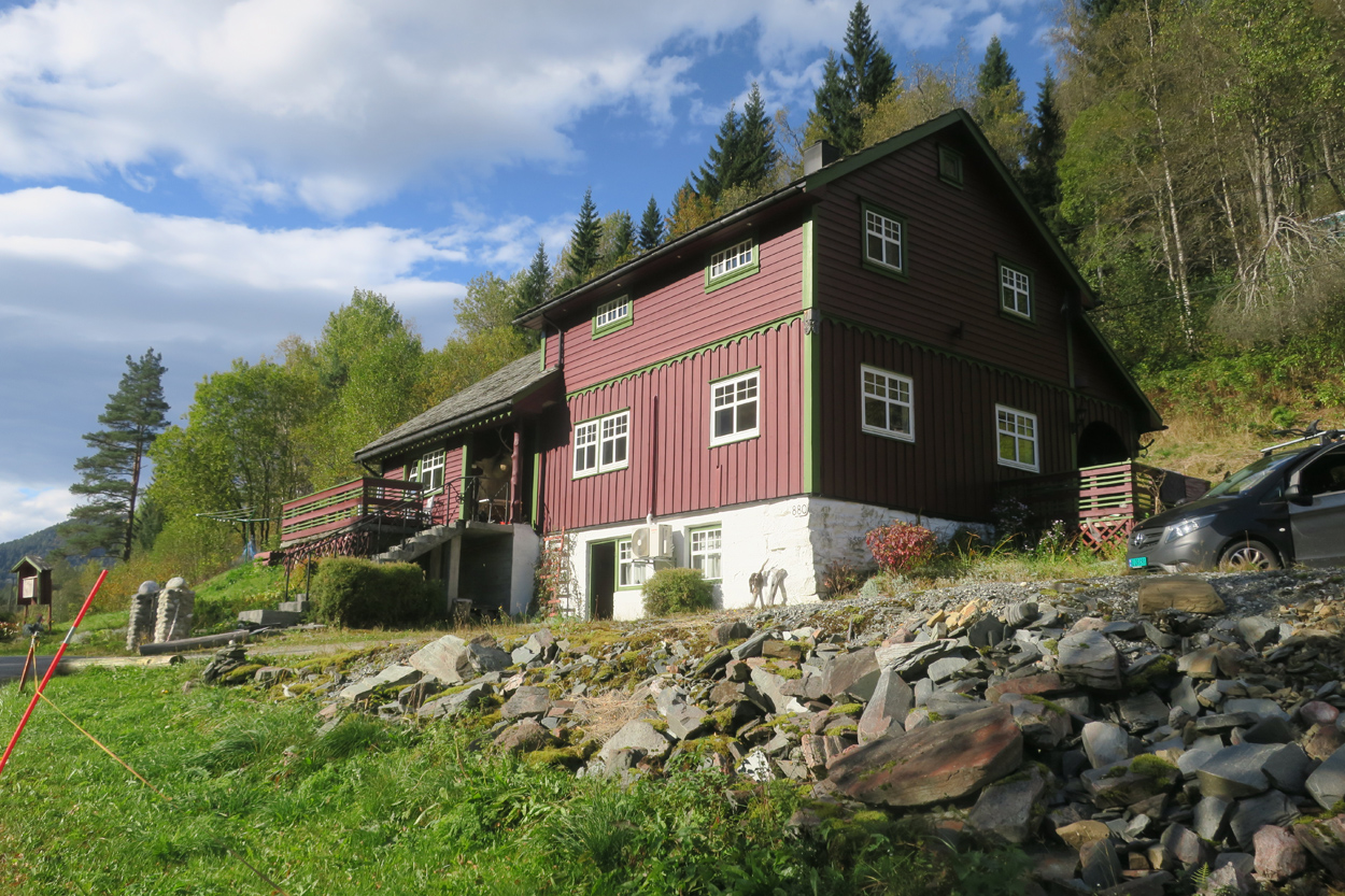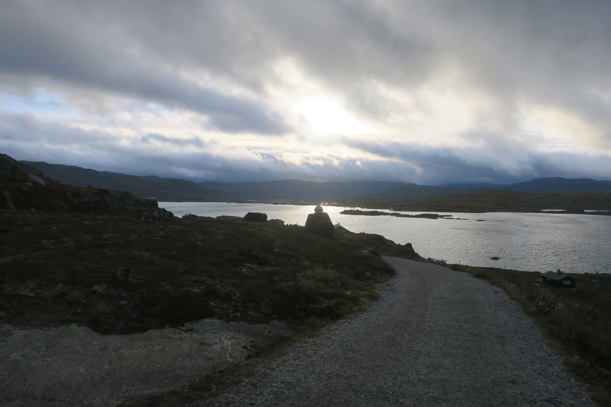 Heute Morgen gab es um 7Uhr ein wunderbares Frühstücksbüffet. Kurz noch 8Uhr Checkte ich dann im Hotel aus und durfte dabei auch noch ein Lunchsäckli in Empfang nehmen. Als ich dann startete war es etwa 5°C warm und der Himmel noch bedeckt. Es wehte aber ein zügiger Rückenwind. Nun ging es von 1222m noch bis knapp 1350m ü M hinauf. Auf dieser weltbekannten Rallervegen Radroute fuhr ich dann hinunter bis Myrdal, was etwa 37km waren. Die Radroute würde von hier noch an den Flåmfjord hinunter führen, doch von dort würde ich nicht in Richtung Bergen kommen. Also entschied ich mich hier die Bahnstation aufzusuchen. Nach etwa 40min warten, fuhr dann um 11.52 der erste Zug von heute, der nach dem Tunnel in Upsete hielt. Der Zug fuhr auch pünktlich und um 12Uhr ging es dann anfänglich von der Bahnstation Upsete auf einem Karrenweg bis Ørneberget und dann auf der als Radweg ausgeschilderten Straße nach Voss. Die Alternative wäre gewesen 3Stunden über den Pass zu Laufen In Voss kaufte ich dann noch Saft. Danach führte meine Route etwas oberhalb von einem See bis Bulken. Hier begann dann der Aufstieg zum Hamlagrøvatnet See auf gut 600m ü M. Dort kam ich dann gegen 16Uhr an. Nach einer sanften und langgezogenen Abfahrt durch ein Tal, erreichte ich dann gegen 17Uhr die Ortschaft Dale. Ab hier ganb es dann noch einen offiziellen Radweg bis Stanghelle am Fjord. Ab dort gab es dann leider nur noch die Transitstrasse E16 wo Fahrradfahren verboten war. Einheimische Passanten, die ich um Rat fragte, empfahlen mir hier für die nächsten 15km den Zug zu nehmen. Doch der war gerade abgefahren und der nächste wäre erst um 20Uhr gefolgt. Ich entschied mich daher doch die Transitstrasse zu nehmen. Zum Glück gab es dann nach 6km Alternativen. Am Schluss zwischen Vaksdal und Trangereid befuhr ich dann noch das alte Bahntrasse mit etlichen Tunnels und zum Teil noch dem original Bahnschotter So um 19.15Uhr, wenige Minuten vor Sonnenuntergang erreichte ich dann Trengereid. Hier sah ich auf Booking.com, dass es wenigstens ein Appartement hier geben soll. Ich konnte dann die Unterkunft, welche noch keinen Google Maps Eintrag hat ausfindig machen. Die Besitzer war zwar etwas überrumpelt von mir, da sie die Betten nach den Gästen der letzten Nacht noch nicht hergerichtet hatten und die Wohnung noch nicht geputzt hatten. Aber ich durfte trotzdem hier bleiben. Die nächste Unterkunft wäre nämlich erst in 25bis 30km Entfernung zu finden gewesen und zu Regnen begann es auch noch. Da ich außer Brot nichts essbares mehr hatte, brachten Sie mir noch Nudeln, Leberkonserve, Tomatensauce, Frischkäse, Milch und Brot. Ich war ihnen dafür sehr dankbar. Bezahlt hatte ich dann 100€. Ob es noch norwegisches Bargeld gibt wusste ich nicht. Denn es wird hier sonst nur mit Karte bezahlt
