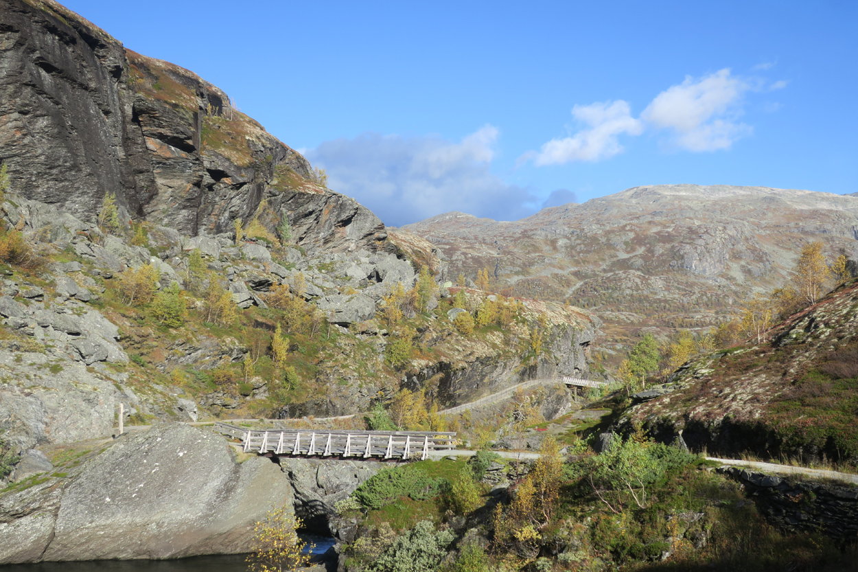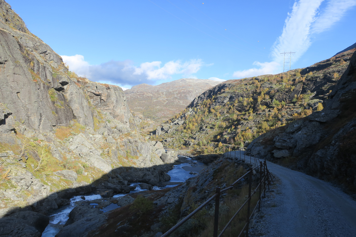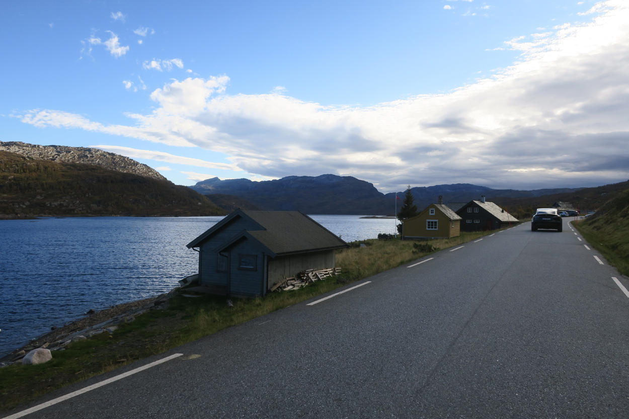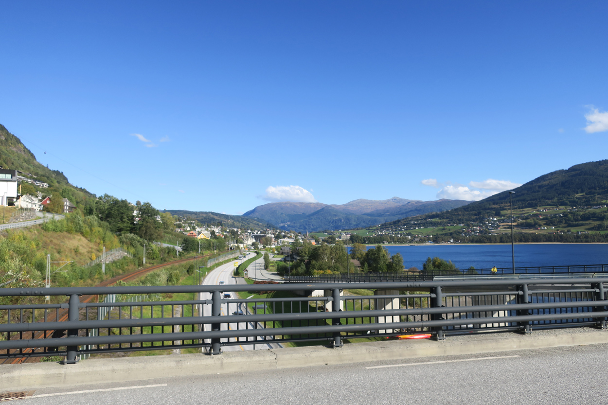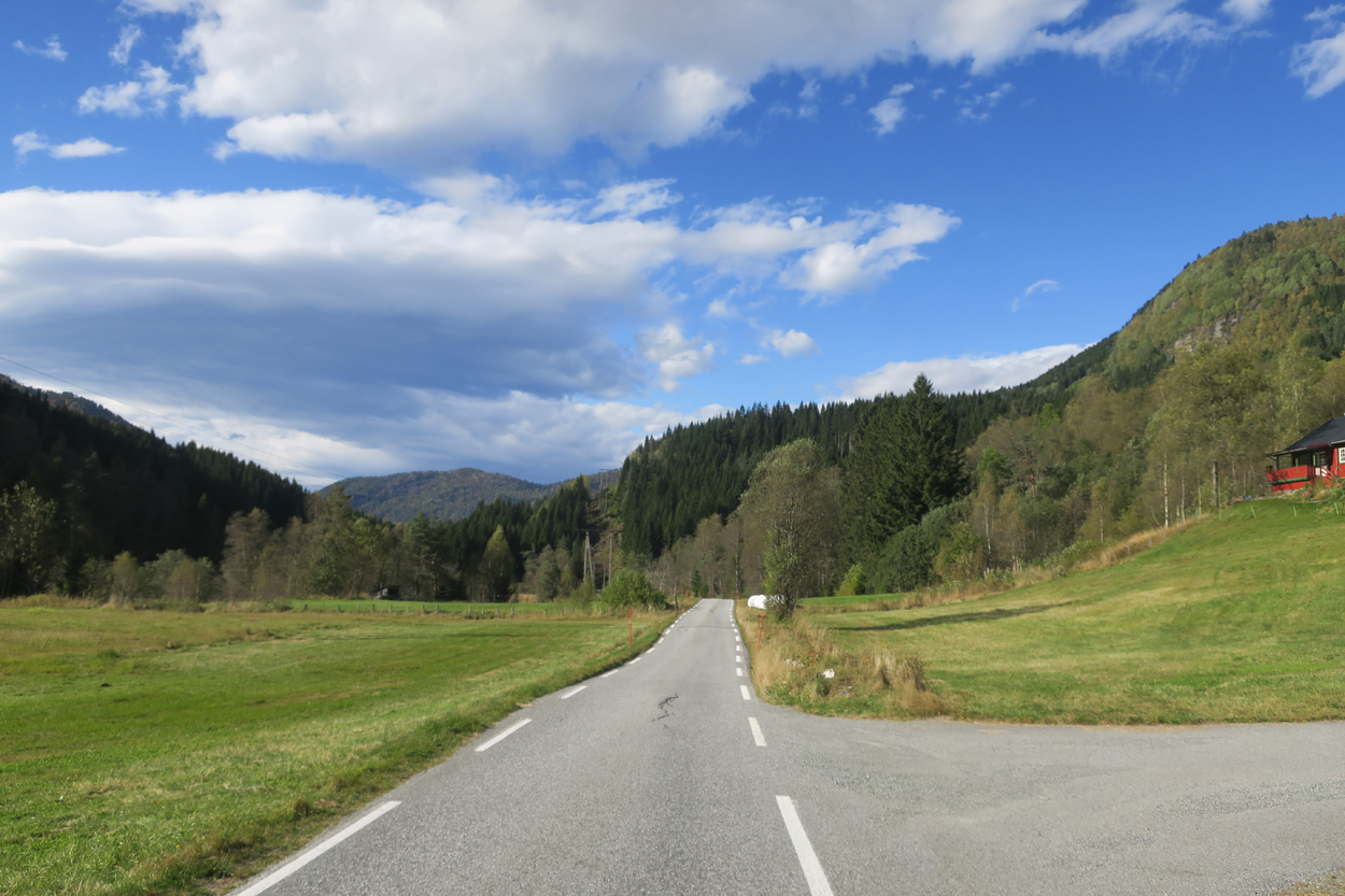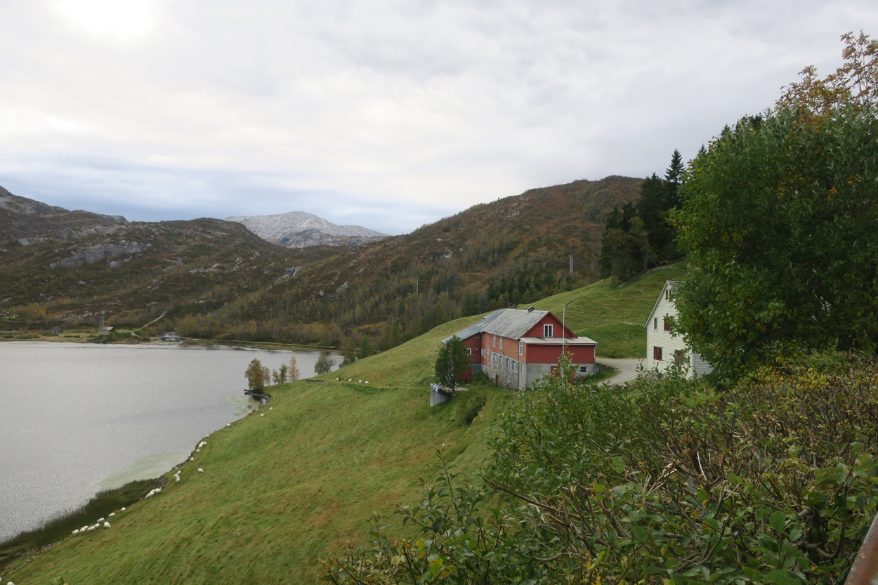 Heute Morgen gab es um 7Uhr ein wunderbares Frühstücksbüffet. Kurz noch 8Uhr Checkte ich dann im Hotel aus und durfte dabei auch noch ein Lunchsäckli in Empfang nehmen. Als ich dann startete war es etwa 5°C warm und der Himmel noch bedeckt. Es wehte aber ein zügiger Rückenwind. Nun ging es von 1222m noch bis knapp 1350m ü M hinauf. Auf dieser weltbekannten Rallervegen Radroute fuhr ich dann hinunter bis Myrdal, was etwa 37km waren. Die Radroute würde von hier noch an den Flåmfjord hinunter führen, doch von dort würde ich nicht in Richtung Bergen kommen. Also entschied ich mich hier die Bahnstation aufzusuchen. Nach etwa 40min warten, fuhr dann um 11.52 der erste Zug von heute, der nach dem Tunnel in Upsete hielt. Der Zug fuhr auch pünktlich und um 12Uhr ging es dann anfänglich von der Bahnstation Upsete auf einem Karrenweg bis Ørneberget und dann auf der als Radweg ausgeschilderten Straße nach Voss. Die Alternative wäre gewesen 3Stunden über den Pass zu Laufen In Voss kaufte ich dann noch Saft. Danach führte meine Route etwas oberhalb von einem See bis Bulken. Hier begann dann der Aufstieg zum Hamlagrøvatnet See auf gut 600m ü M. Dort kam ich dann gegen 16Uhr an. Nach einer sanften und langgezogenen Abfahrt durch ein Tal, erreichte ich dann gegen 17Uhr die Ortschaft Dale. Ab hier ganb es dann noch einen offiziellen Radweg bis Stanghelle am Fjord. Ab dort gab es dann leider nur noch die Transitstrasse E16 wo Fahrradfahren verboten war. Einheimische Passanten, die ich um Rat fragte, empfahlen mir hier für die nächsten 15km den Zug zu nehmen. Doch der war gerade abgefahren und der nächste wäre erst um 20Uhr gefolgt. Ich entschied mich daher doch die Transitstrasse zu nehmen. Zum Glück gab es dann nach 6km Alternativen. Am Schluss zwischen Vaksdal und Trangereid befuhr ich dann noch das alte Bahntrasse mit etlichen Tunnels und zum Teil noch dem original Bahnschotter So um 19.15Uhr, wenige Minuten vor Sonnenuntergang erreichte ich dann Trengereid. Hier sah ich auf Booking.com, dass es wenigstens ein Appartement hier geben soll. Ich konnte dann die Unterkunft, welche noch keinen Google Maps Eintrag hat ausfindig machen. Die Besitzer war zwar etwas überrumpelt von mir, da sie die Betten nach den Gästen der letzten Nacht noch nicht hergerichtet hatten und die Wohnung noch nicht geputzt hatten. Aber ich durfte trotzdem hier bleiben. Die nächste Unterkunft wäre nämlich erst in 25bis 30km Entfernung zu finden gewesen und zu Regnen begann es auch noch. Da ich außer Brot nichts essbares mehr hatte, brachten Sie mir noch Nudeln, Leberkonserve, Tomatensauce, Frischkäse, Milch und Brot. Ich war ihnen dafür sehr dankbar. Bezahlt hatte ich dann 100€. Ob es noch norwegisches Bargeld gibt wusste ich nicht. Denn es wird hier sonst nur mit Karte bezahlt