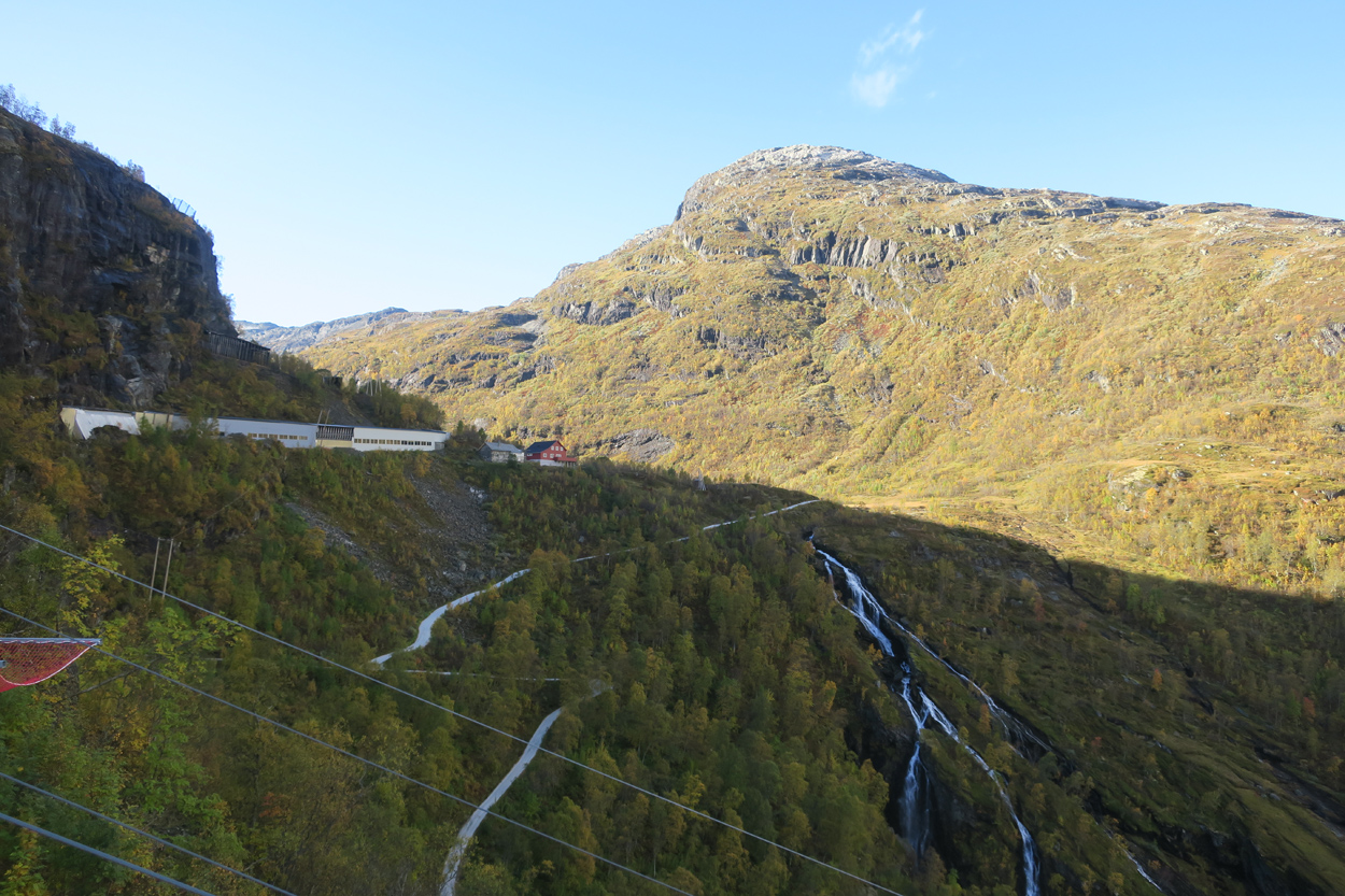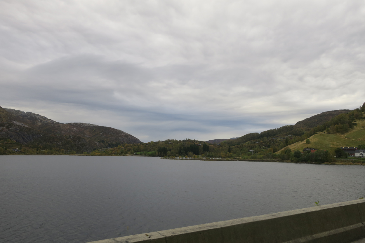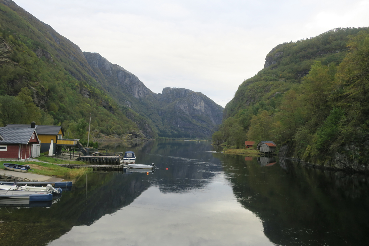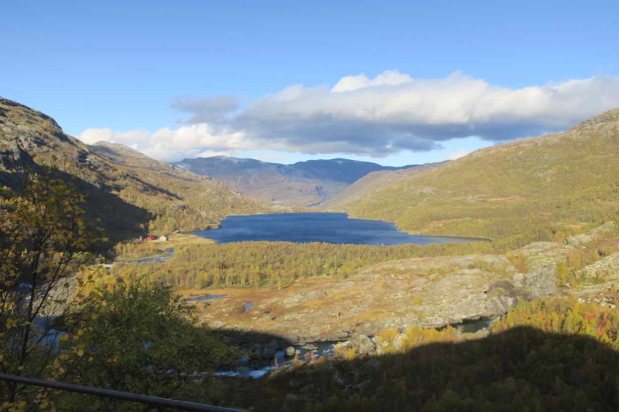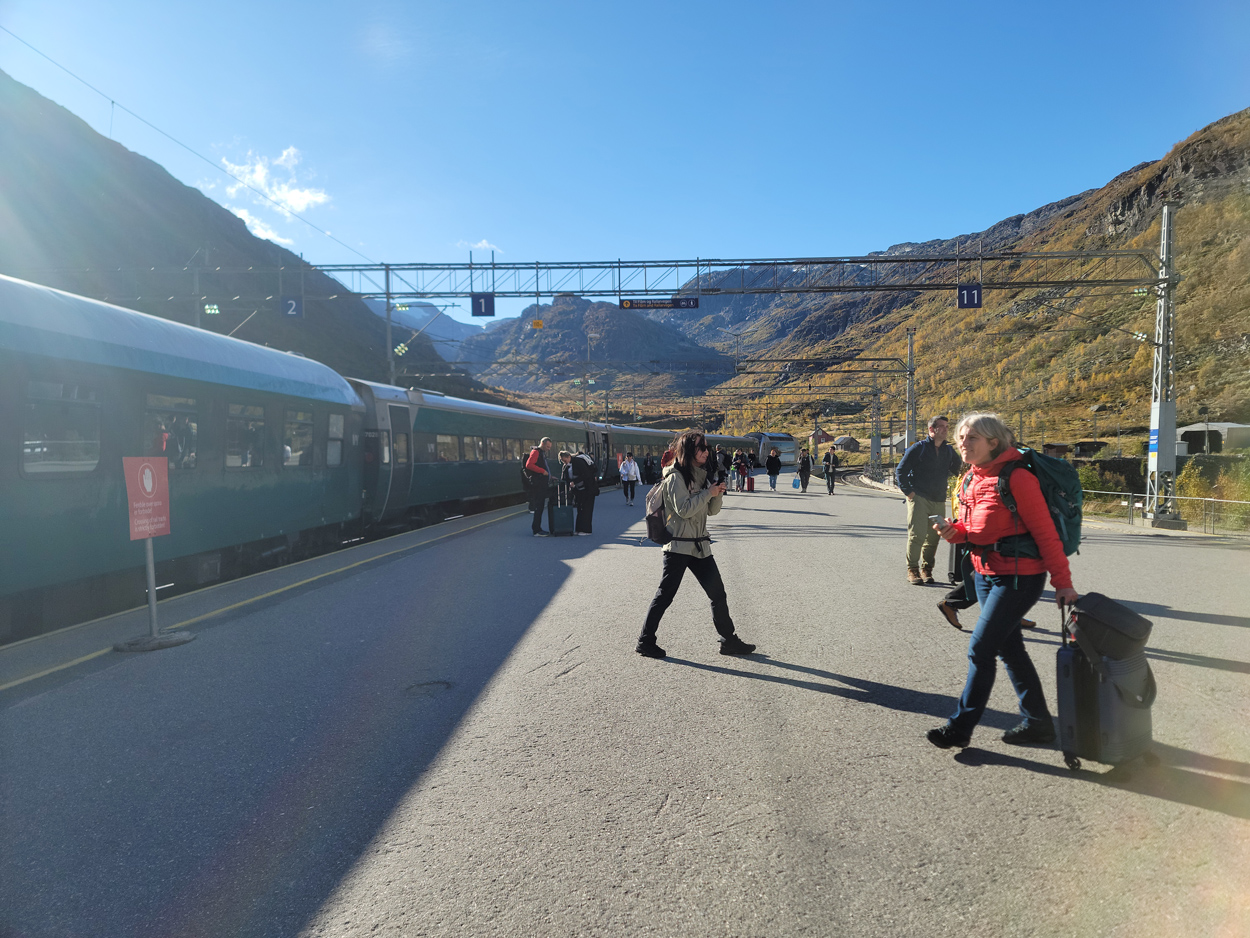 Heute Morgen gab es um 7Uhr ein wunderbares Frühstücksbüffet. Kurz noch 8Uhr Checkte ich dann im Hotel aus und durfte dabei auch noch ein Lunchsäckli in Empfang nehmen. Als ich dann startete war es etwa 5°C warm und der Himmel noch bedeckt. Es wehte aber ein zügiger Rückenwind. Nun ging es von 1222m noch bis knapp 1350m ü M hinauf. Auf dieser weltbekannten Rallervegen Radroute fuhr ich dann hinunter bis Myrdal, was etwa 37km waren. Die Radroute würde von hier noch an den Flåmfjord hinunter führen, doch von dort würde ich nicht in Richtung Bergen kommen. Also entschied ich mich hier die Bahnstation aufzusuchen. Nach etwa 40min warten, fuhr dann um 11.52 der erste Zug von heute, der nach dem Tunnel in Upsete hielt. Der Zug fuhr auch pünktlich und um 12Uhr ging es dann anfänglich von der Bahnstation Upsete auf einem Karrenweg bis Ørneberget und dann auf der als Radweg ausgeschilderten Straße nach Voss. Die Alternative wäre gewesen 3Stunden über den Pass zu Laufen In Voss kaufte ich dann noch Saft. Danach führte meine Route etwas oberhalb von einem See bis Bulken. Hier begann dann der Aufstieg zum Hamlagrøvatnet See auf gut 600m ü M. Dort kam ich dann gegen 16Uhr an. Nach einer sanften und langgezogenen Abfahrt durch ein Tal, erreichte ich dann gegen 17Uhr die Ortschaft Dale. Ab hier ganb es dann noch einen offiziellen Radweg bis Stanghelle am Fjord. Ab dort gab es dann leider nur noch die Transitstrasse E16 wo Fahrradfahren verboten war. Einheimische Passanten, die ich um Rat fragte, empfahlen mir hier für die nächsten 15km den Zug zu nehmen. Doch der war gerade abgefahren und der nächste wäre erst um 20Uhr gefolgt. Ich entschied mich daher doch die Transitstrasse zu nehmen. Zum Glück gab es dann nach 6km Alternativen. Am Schluss zwischen Vaksdal und Trangereid befuhr ich dann noch das alte Bahntrasse mit etlichen Tunnels und zum Teil noch dem original Bahnschotter So um 19.15Uhr, wenige Minuten vor Sonnenuntergang erreichte ich dann Trengereid. Hier sah ich auf Booking.com, dass es wenigstens ein Appartement hier geben soll. Ich konnte dann die Unterkunft, welche noch keinen Google Maps Eintrag hat ausfindig machen. Die Besitzer war zwar etwas überrumpelt von mir, da sie die Betten nach den Gästen der letzten Nacht noch nicht hergerichtet hatten und die Wohnung noch nicht geputzt hatten. Aber ich durfte trotzdem hier bleiben. Die nächste Unterkunft wäre nämlich erst in 25bis 30km Entfernung zu finden gewesen und zu Regnen begann es auch noch. Da ich außer Brot nichts essbares mehr hatte, brachten Sie mir noch Nudeln, Leberkonserve, Tomatensauce, Frischkäse, Milch und Brot. Ich war ihnen dafür sehr dankbar. Bezahlt hatte ich dann 100€. Ob es noch norwegisches Bargeld gibt wusste ich nicht. Denn es wird hier sonst nur mit Karte bezahlt