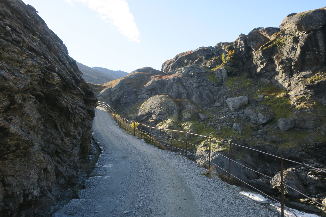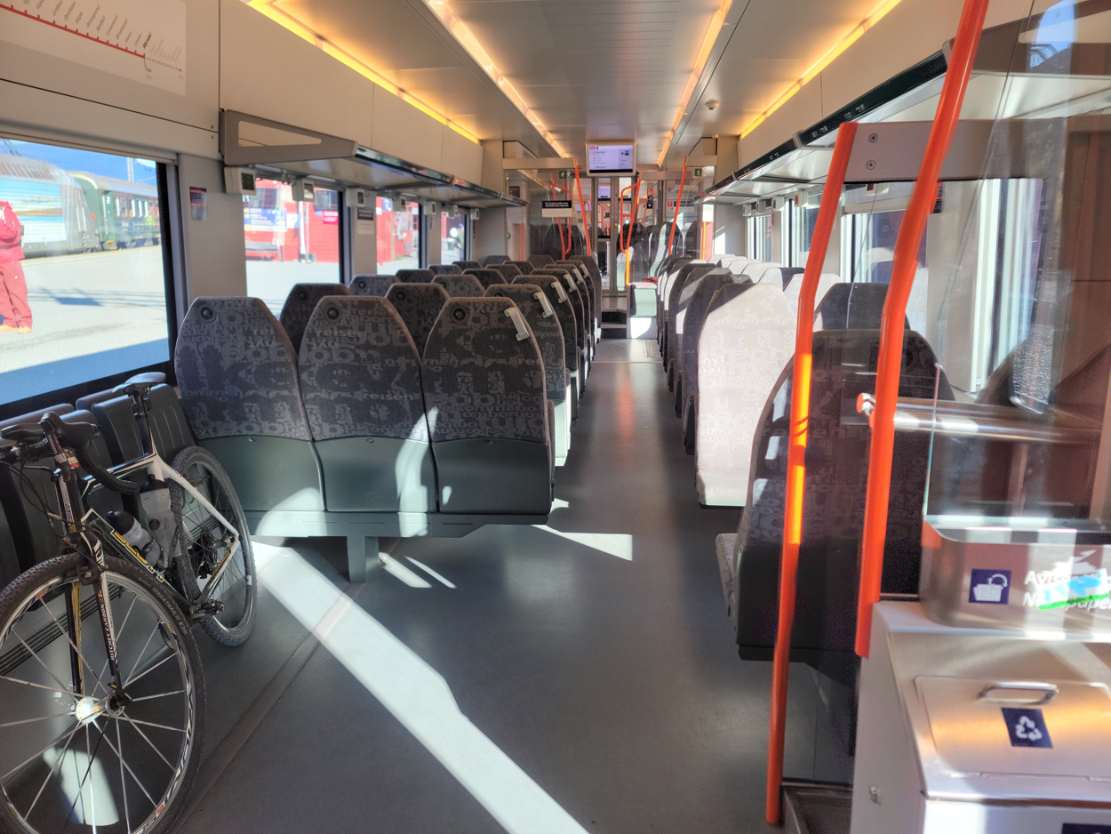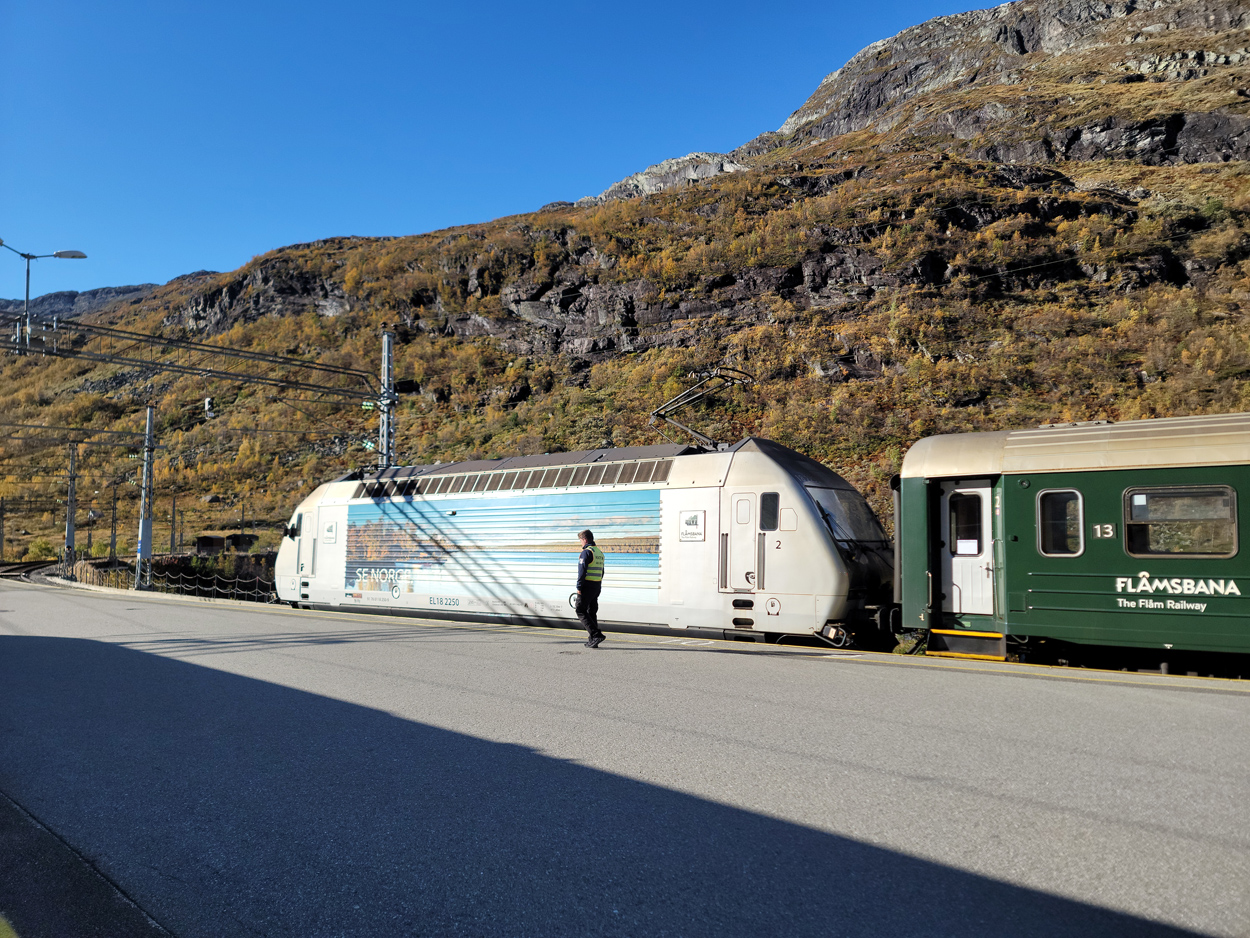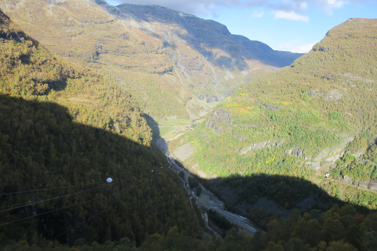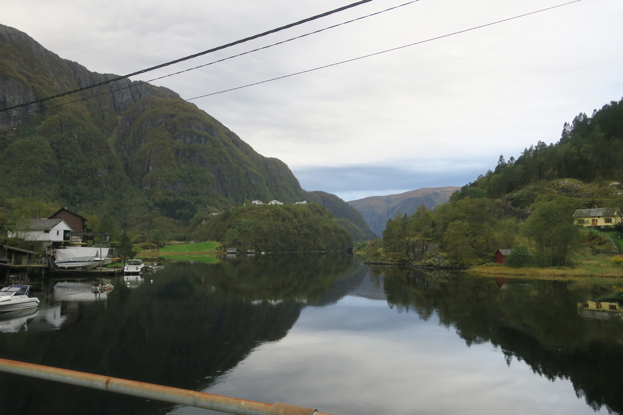 Heute Morgen gab es um 7Uhr ein wunderbares Frühstücksbüffet. Kurz noch 8Uhr Checkte ich dann im Hotel aus und durfte dabei auch noch ein Lunchsäckli in Empfang nehmen. Als ich dann startete war es etwa 5°C warm und der Himmel noch bedeckt. Es wehte aber ein zügiger Rückenwind. Nun ging es von 1222m noch bis knapp 1350m ü M hinauf. Auf dieser weltbekannten Rallervegen Radroute fuhr ich dann hinunter bis Myrdal, was etwa 37km waren. Die Radroute würde von hier noch an den Flåmfjord hinunter führen, doch von dort würde ich nicht in Richtung Bergen kommen. Also entschied ich mich hier die Bahnstation aufzusuchen. Nach etwa 40min warten, fuhr dann um 11.52 der erste Zug von heute, der nach dem Tunnel in Upsete hielt. Der Zug fuhr auch pünktlich und um 12Uhr ging es dann anfänglich von der Bahnstation Upsete auf einem Karrenweg bis Ørneberget und dann auf der als Radweg ausgeschilderten Straße nach Voss. Die Alternative wäre gewesen 3Stunden über den Pass zu Laufen In Voss kaufte ich dann noch Saft. Danach führte meine Route etwas oberhalb von einem See bis Bulken. Hier begann dann der Aufstieg zum Hamlagrøvatnet See auf gut 600m ü M. Dort kam ich dann gegen 16Uhr an. Nach einer sanften und langgezogenen Abfahrt durch ein Tal, erreichte ich dann gegen 17Uhr die Ortschaft Dale. Ab hier ganb es dann noch einen offiziellen Radweg bis Stanghelle am Fjord. Ab dort gab es dann leider nur noch die Transitstrasse E16 wo Fahrradfahren verboten war. Einheimische Passanten, die ich um Rat fragte, empfahlen mir hier für die nächsten 15km den Zug zu nehmen. Doch der war gerade abgefahren und der nächste wäre erst um 20Uhr gefolgt. Ich entschied mich daher doch die Transitstrasse zu nehmen. Zum Glück gab es dann nach 6km Alternativen. Am Schluss zwischen Vaksdal und Trangereid befuhr ich dann noch das alte Bahntrasse mit etlichen Tunnels und zum Teil noch dem original Bahnschotter So um 19.15Uhr, wenige Minuten vor Sonnenuntergang erreichte ich dann Trengereid. Hier sah ich auf Booking.com, dass es wenigstens ein Appartement hier geben soll. Ich konnte dann die Unterkunft, welche noch keinen Google Maps Eintrag hat ausfindig machen. Die Besitzer war zwar etwas überrumpelt von mir, da sie die Betten nach den Gästen der letzten Nacht noch nicht hergerichtet hatten und die Wohnung noch nicht geputzt hatten. Aber ich durfte trotzdem hier bleiben. Die nächste Unterkunft wäre nämlich erst in 25bis 30km Entfernung zu finden gewesen und zu Regnen begann es auch noch. Da ich außer Brot nichts essbares mehr hatte, brachten Sie mir noch Nudeln, Leberkonserve, Tomatensauce, Frischkäse, Milch und Brot. Ich war ihnen dafür sehr dankbar. Bezahlt hatte ich dann 100€. Ob es noch norwegisches Bargeld gibt wusste ich nicht. Denn es wird hier sonst nur mit Karte bezahlt