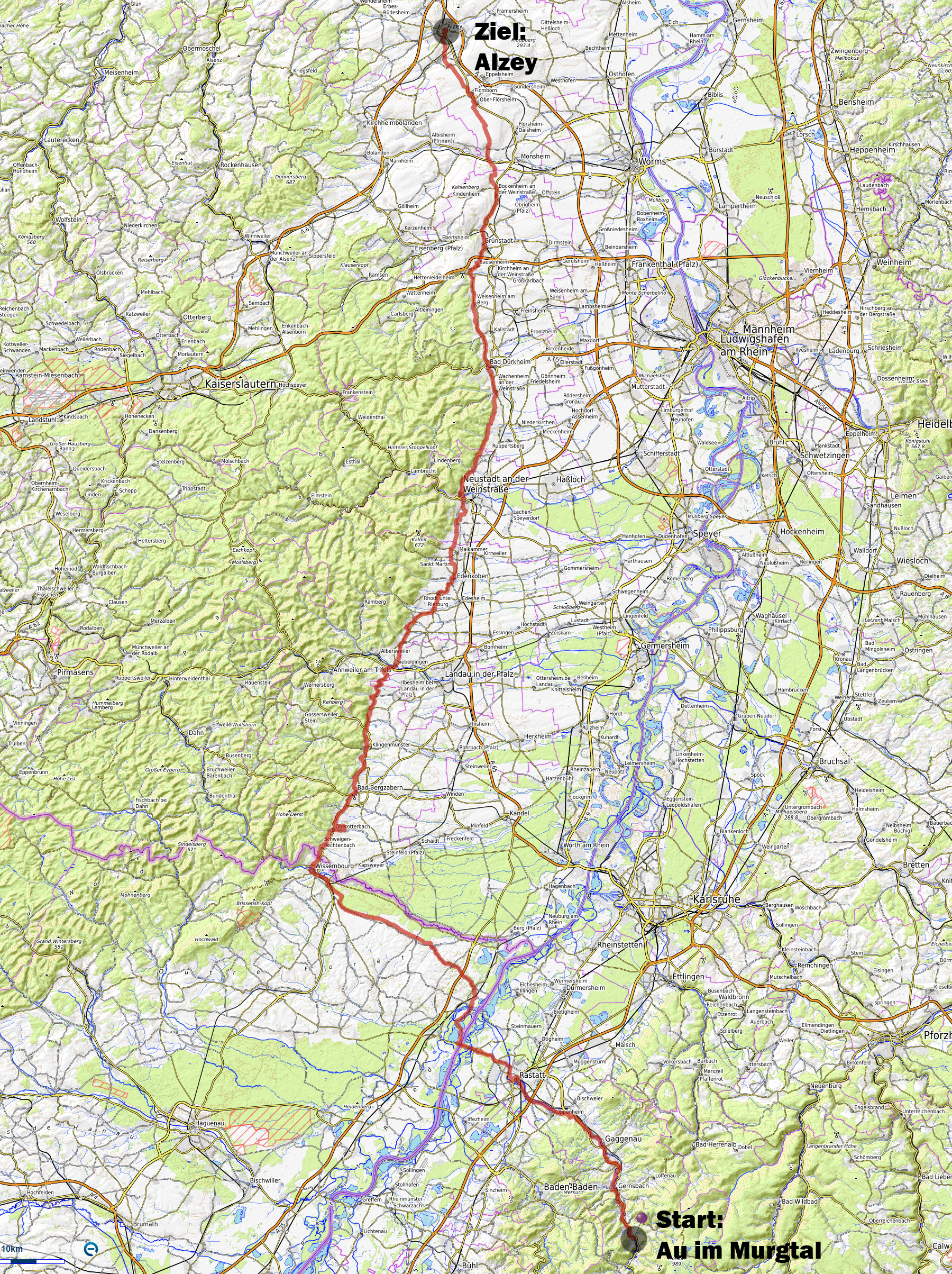 Licht fort in Richtung Gernsbach. Aber schon nach 3km Fahrt bot sich dann gegen