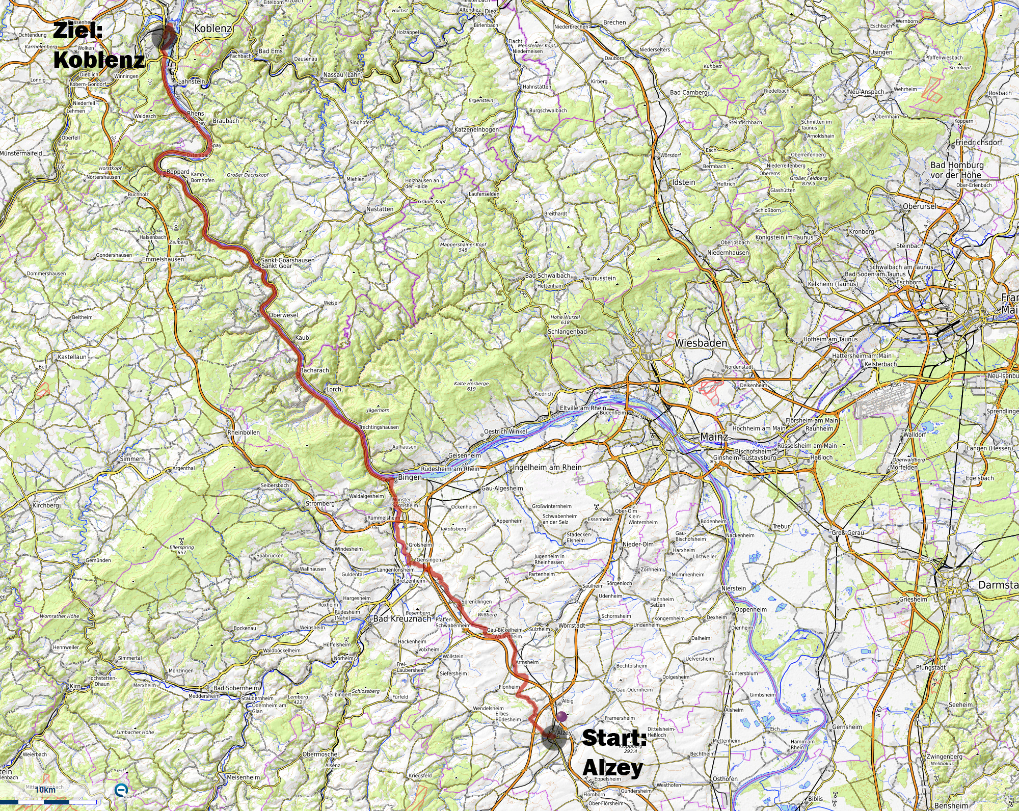 Sprendlingen- Welgesheim- Gensingen- Bingen- Trechtingsgausen- Bacharach-