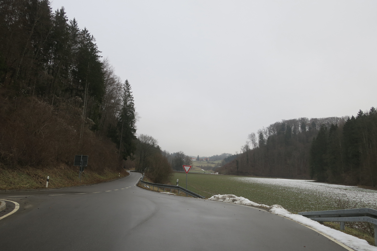 auf der Windegg, auf gut 800m ü M., die Strasse welche als Veloroute diente,