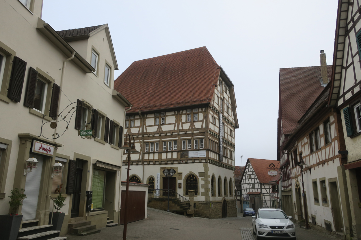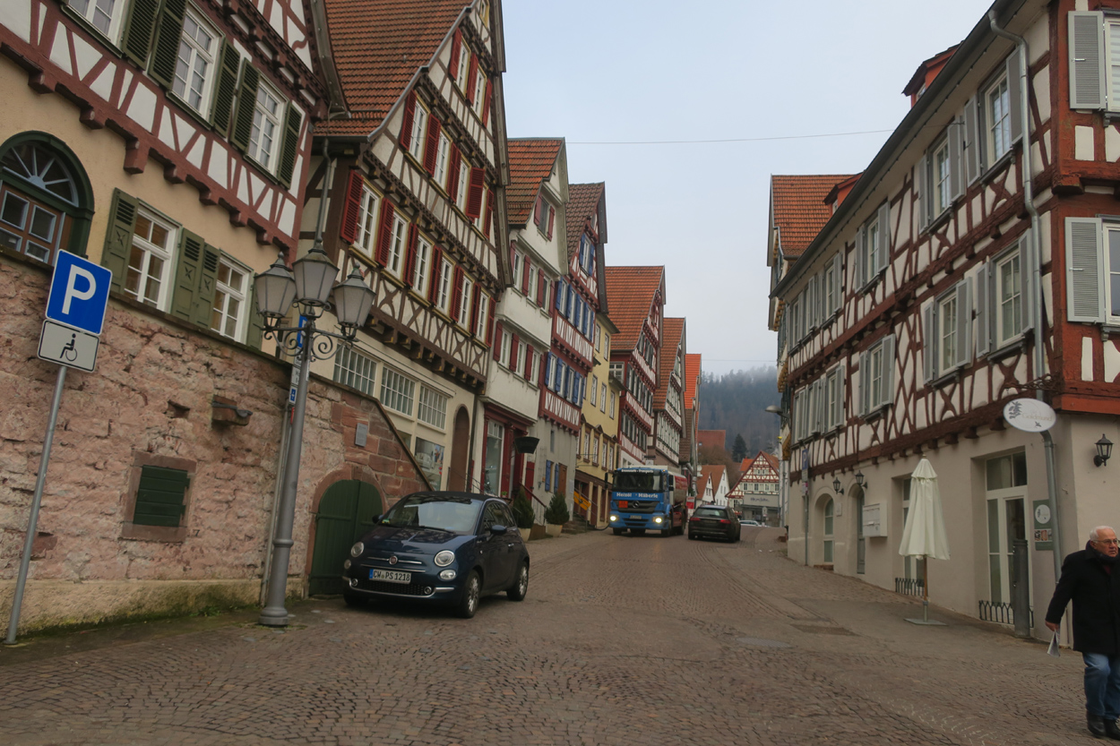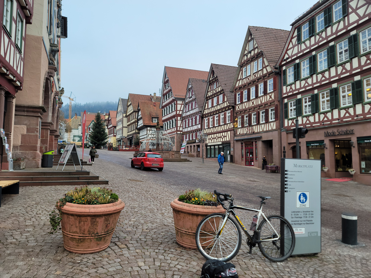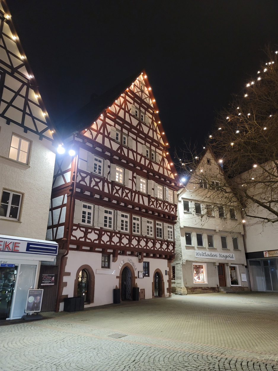 Nagold mit etlichen prächtigen Fachwerkhäusern. Auch das angedachte Hotel war