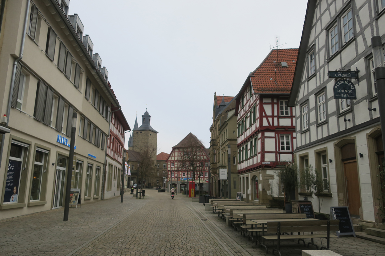 die Hauptstrasse in der Altstadt von Rottweil vor dem Schwarzen