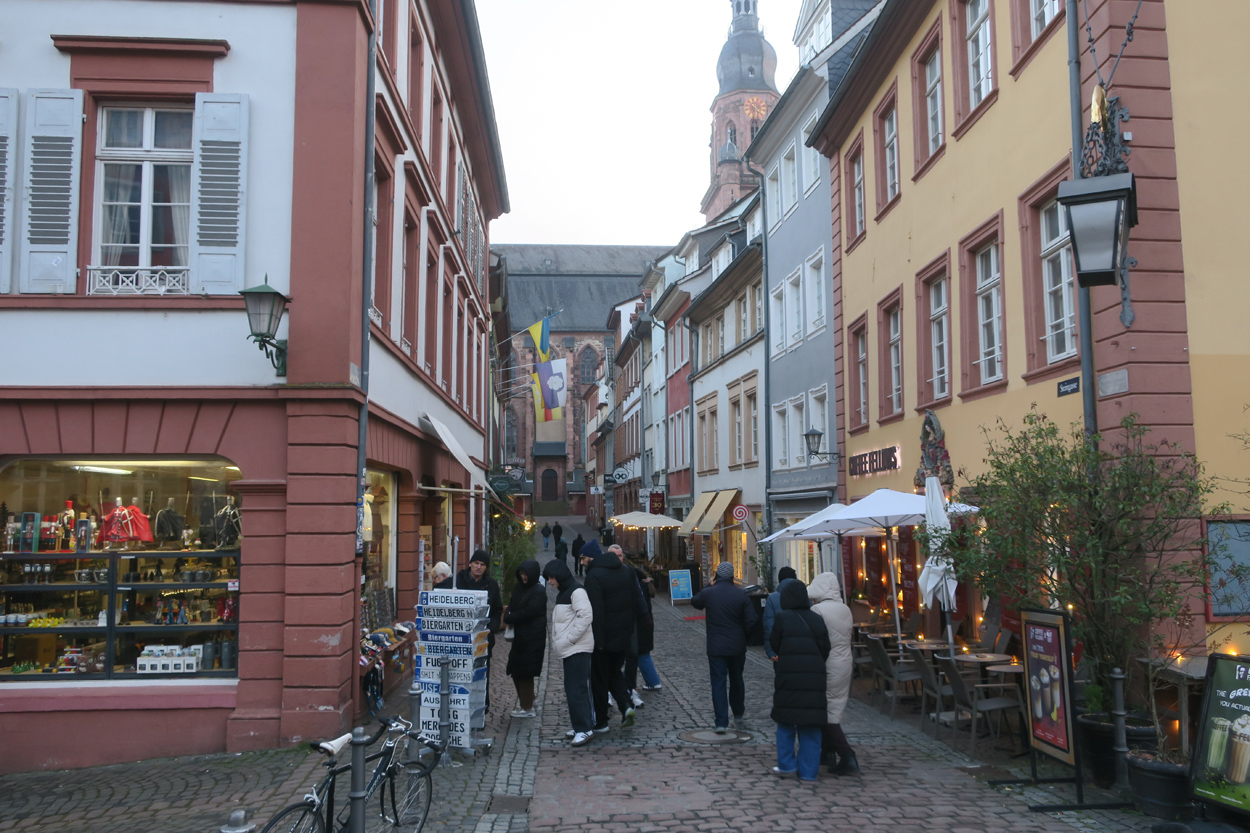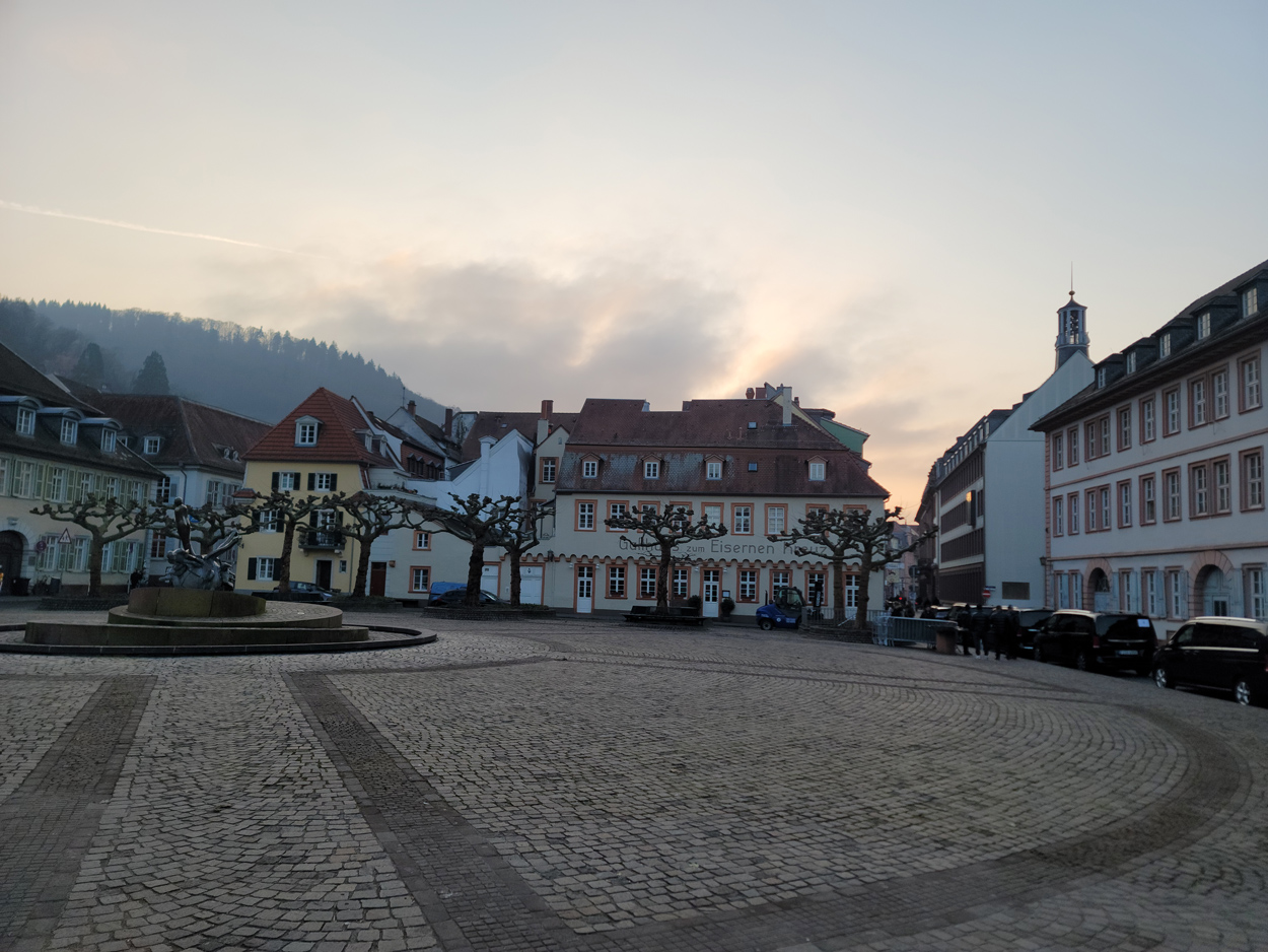 Karlsplatz in Heidelberg, Blick zum Schloss Heidelberg